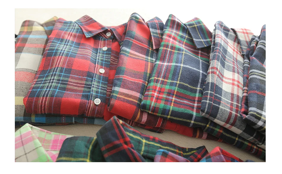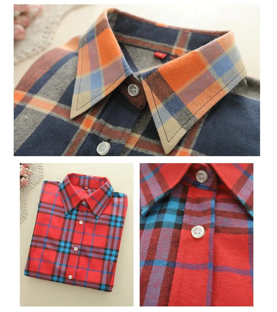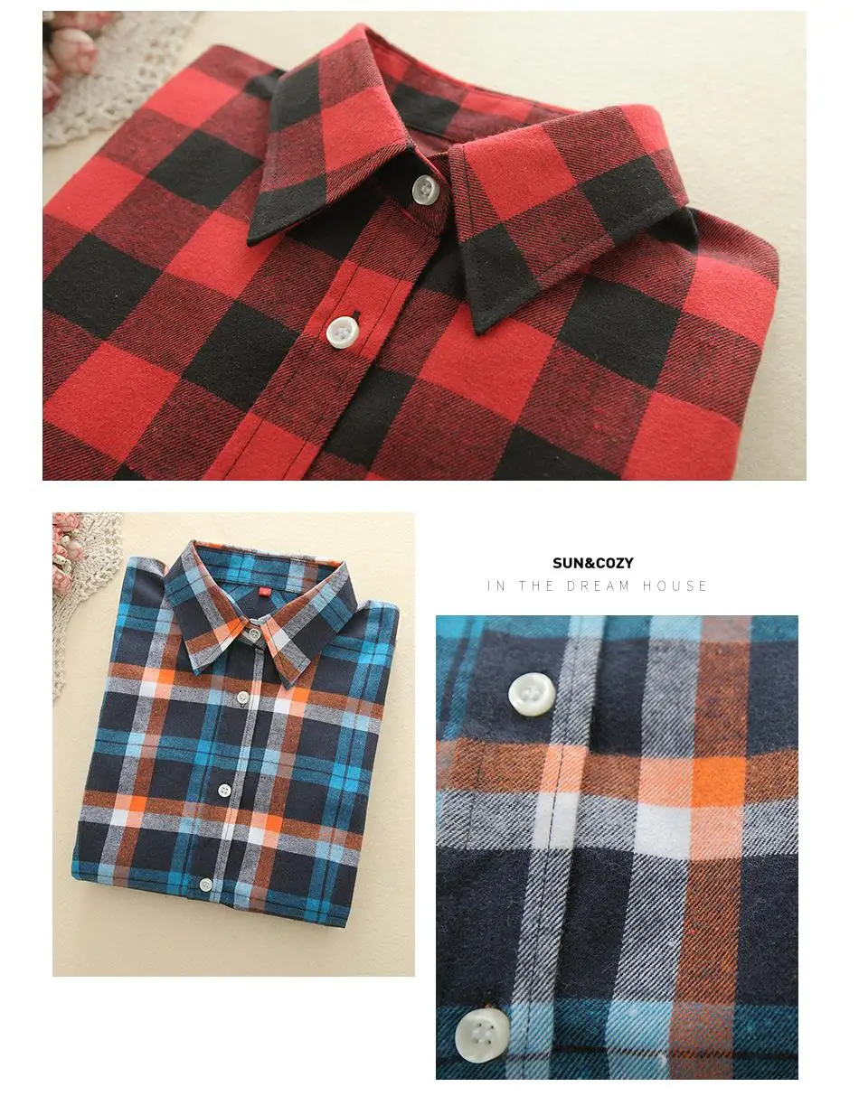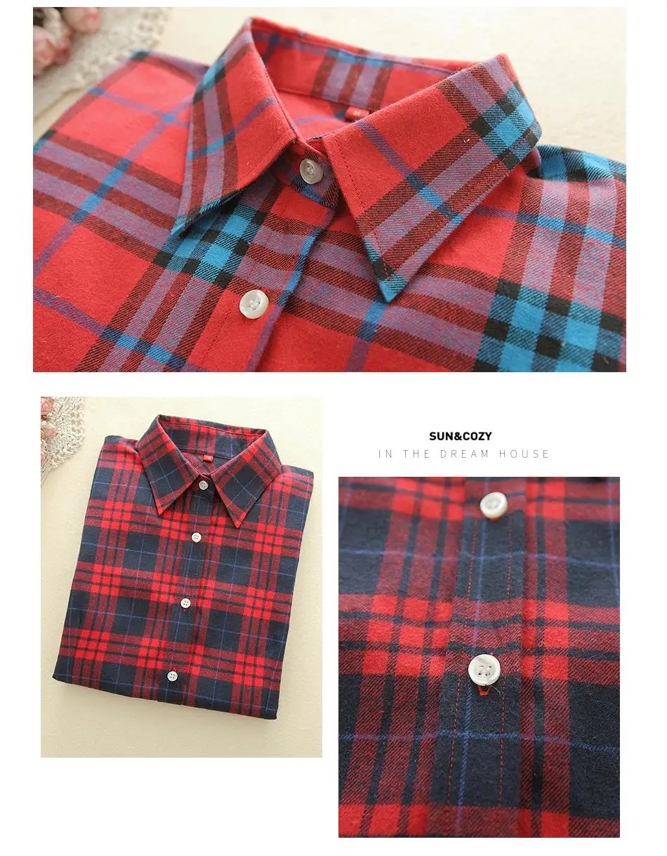 2018 New Brand Women Blouses Long Sleeve Shirts Cotton Red and Black Flannel Plaid Shirt Casual Female Plus Size Blouse Tops