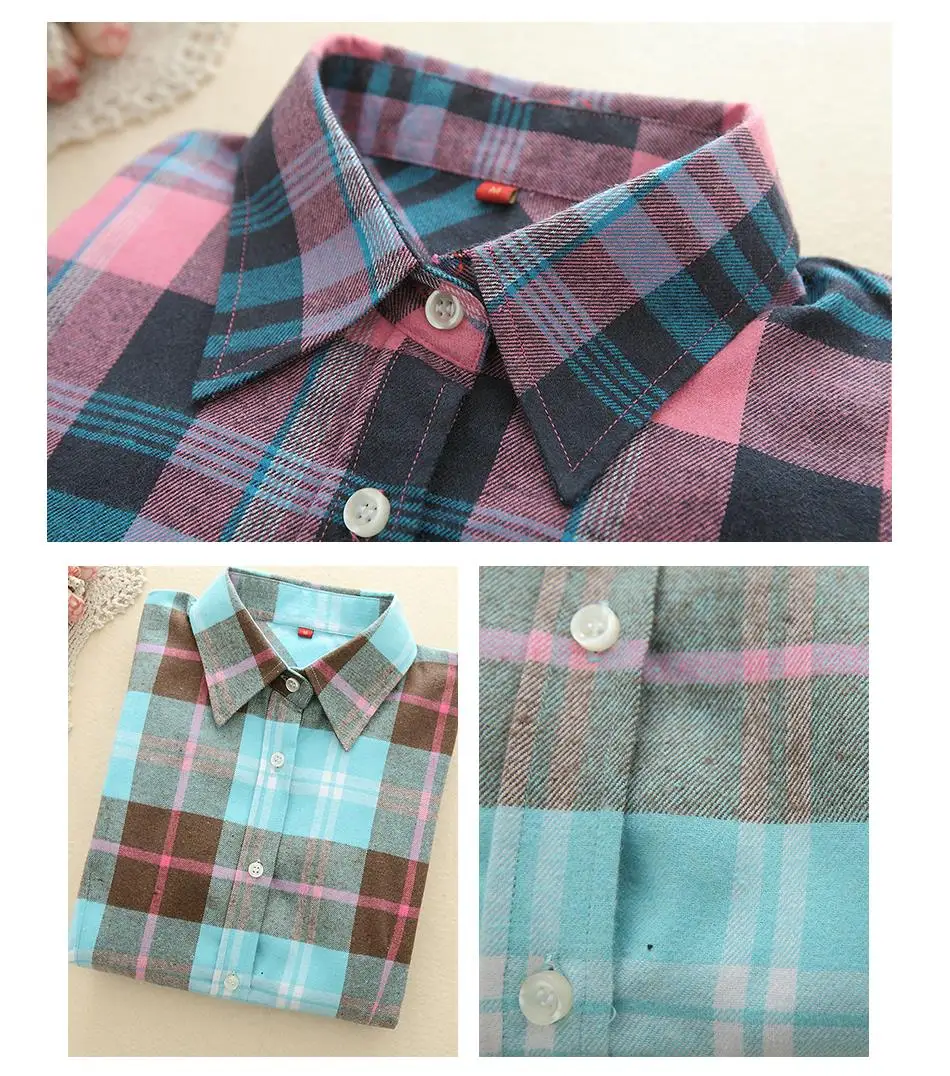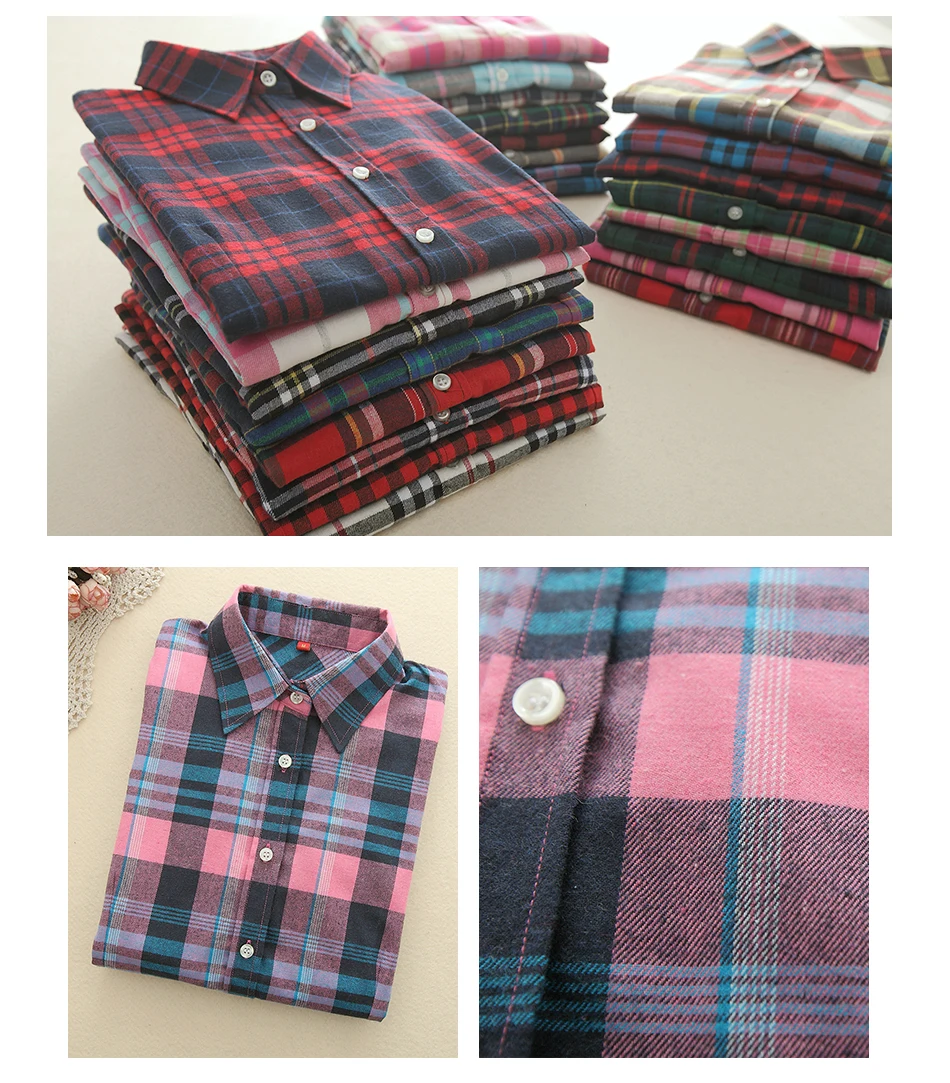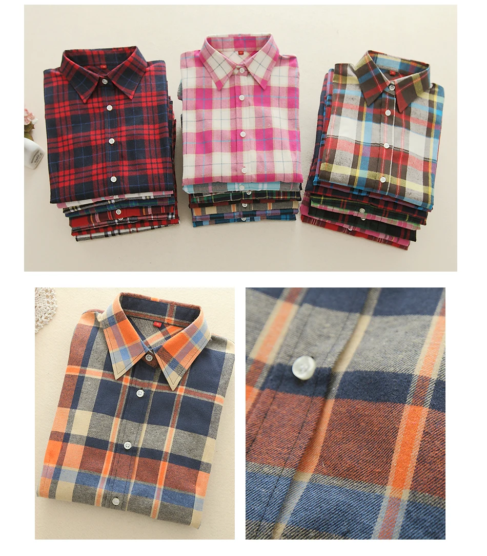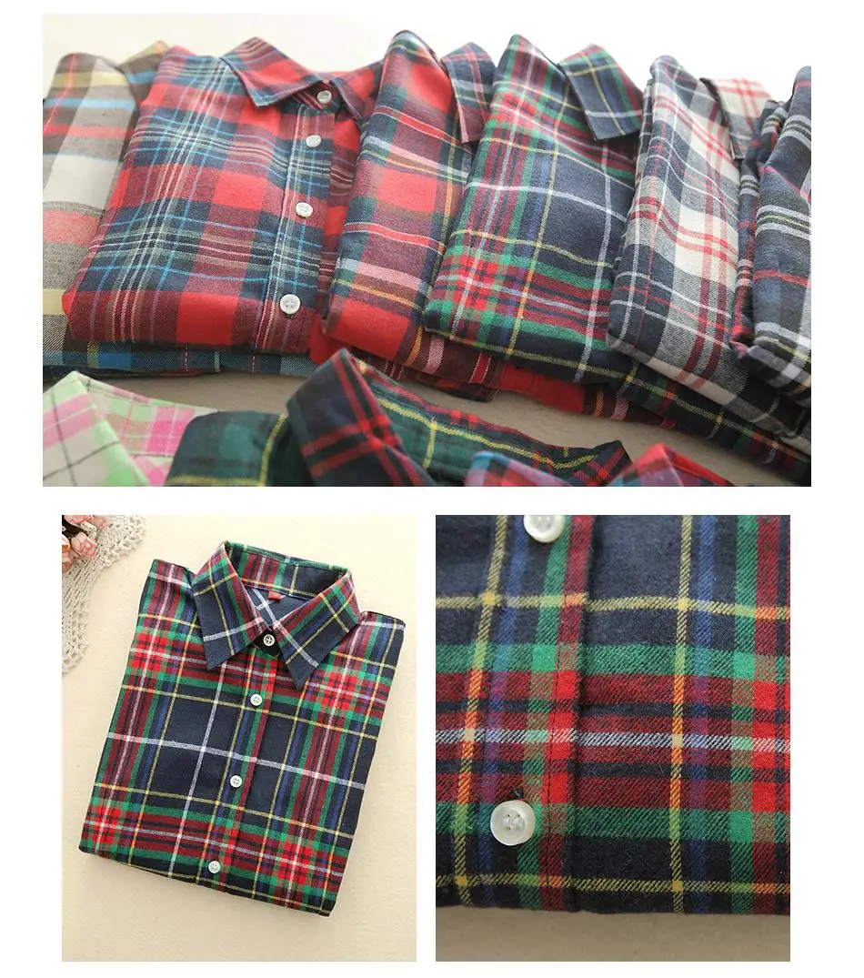 2018 New Brand Women Blouses Long Sleeve Shirts Cotton Red and Black Flannel Plaid Shirt Casual Female Plus Size Blouse Tops