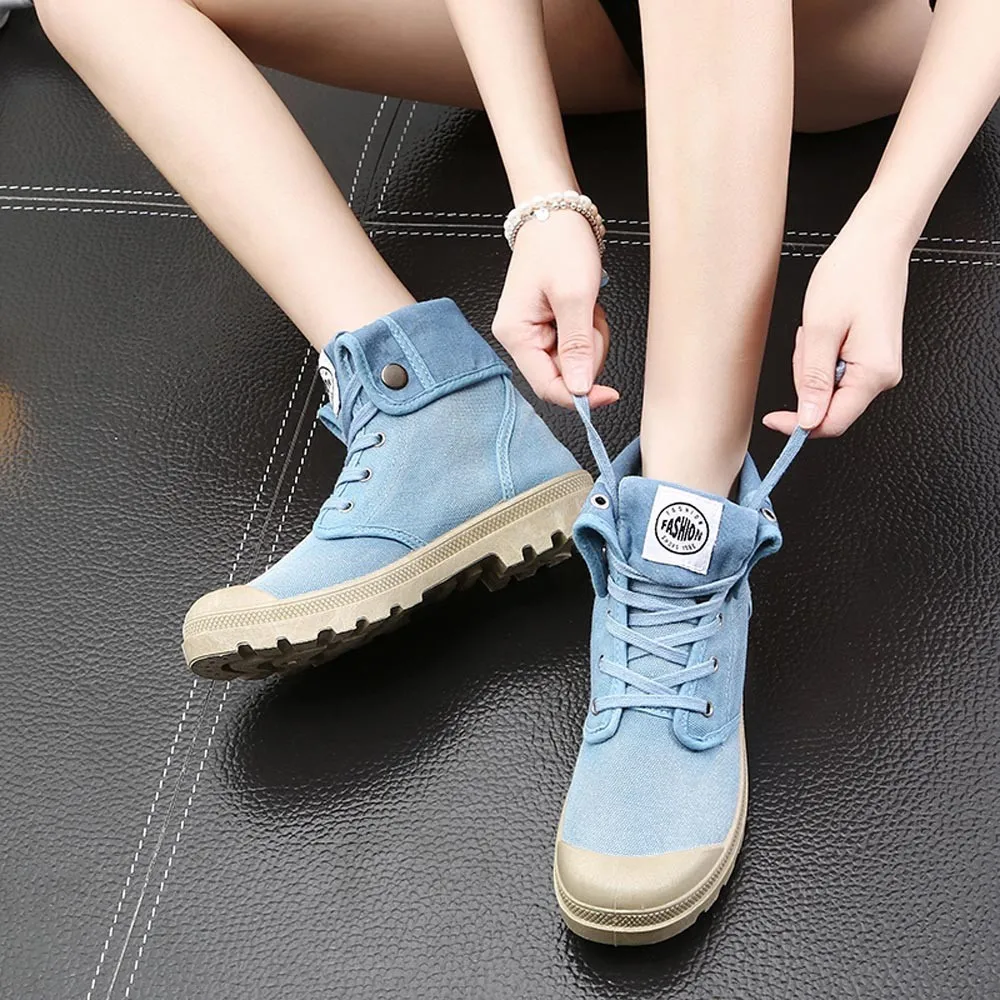 2018 New Canvas Shoes Women Boots Palladium Style Fashion High-top Military Ankle Casual Shoes Female High Quality Boots