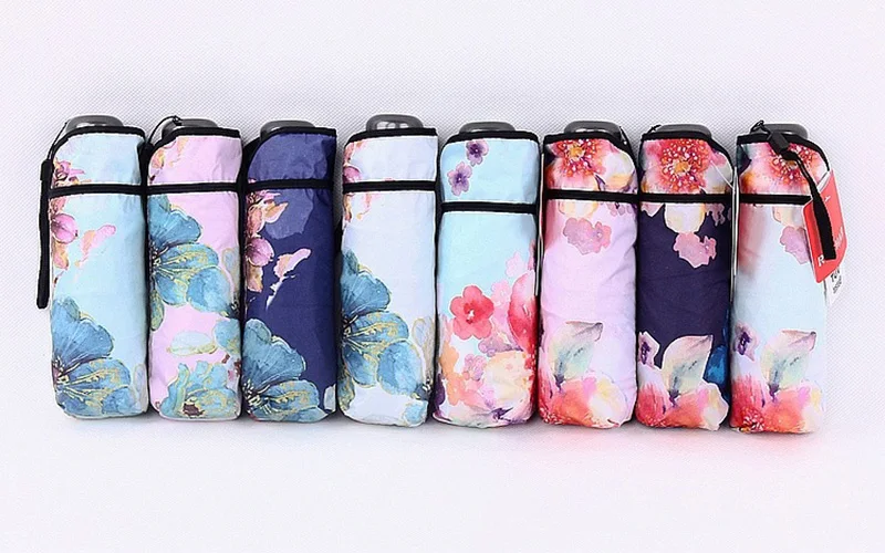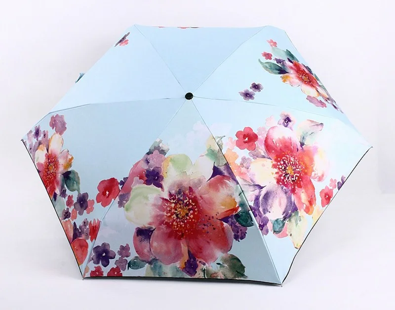 2018 new cardamom years – floral fragrance five fold mini umbrella black coating sun shade umbrella rain women pocket paraguas