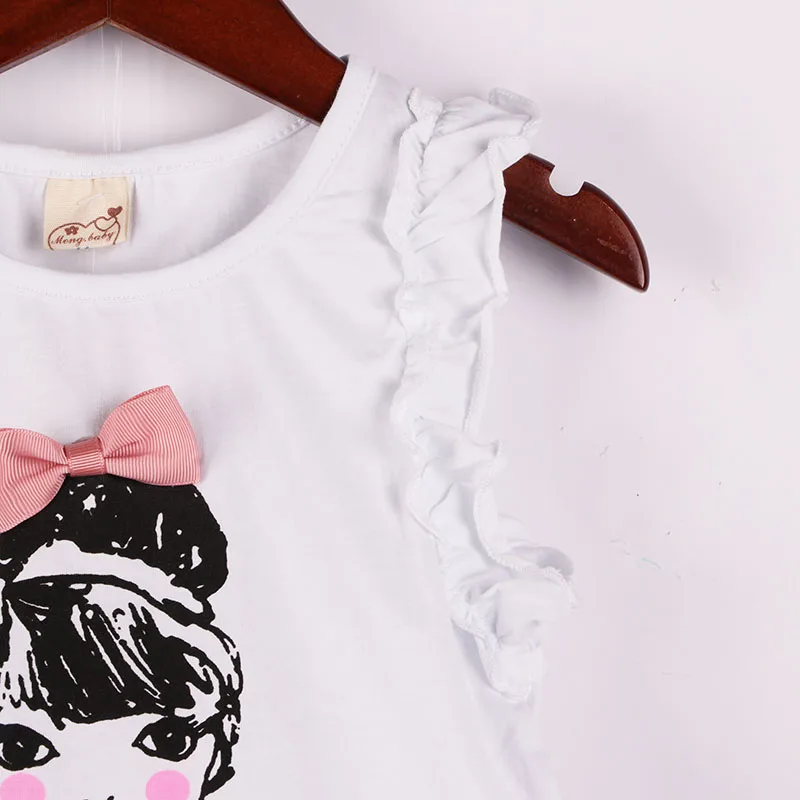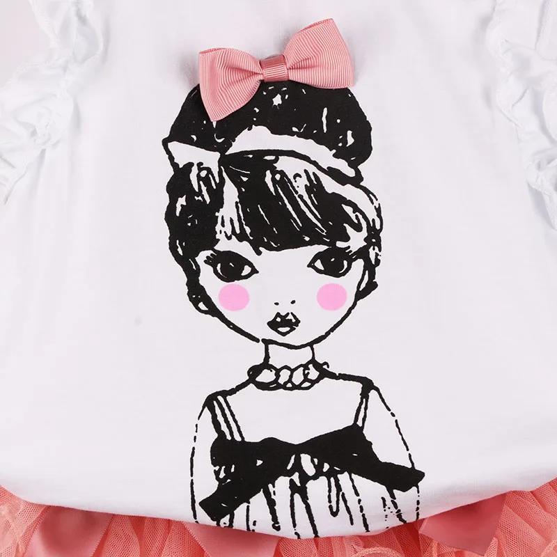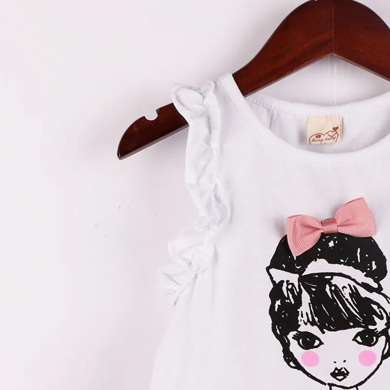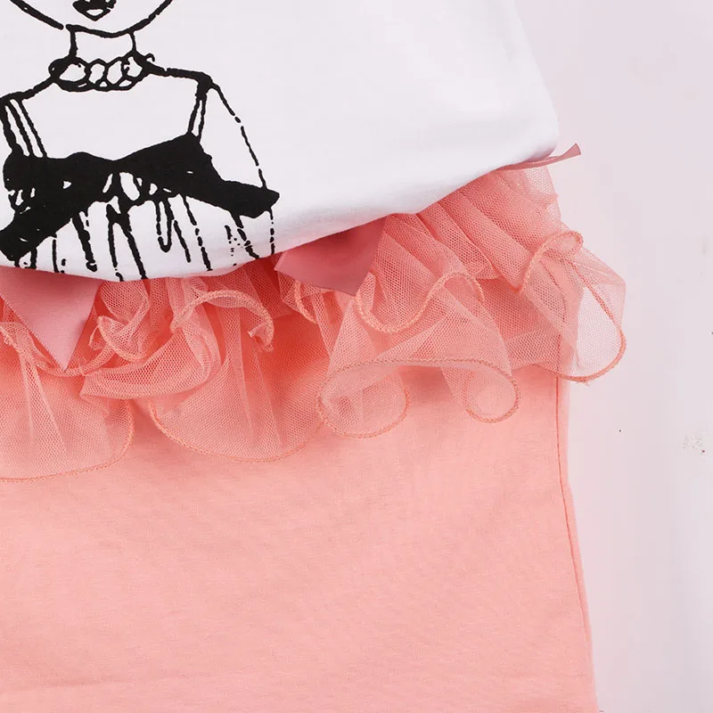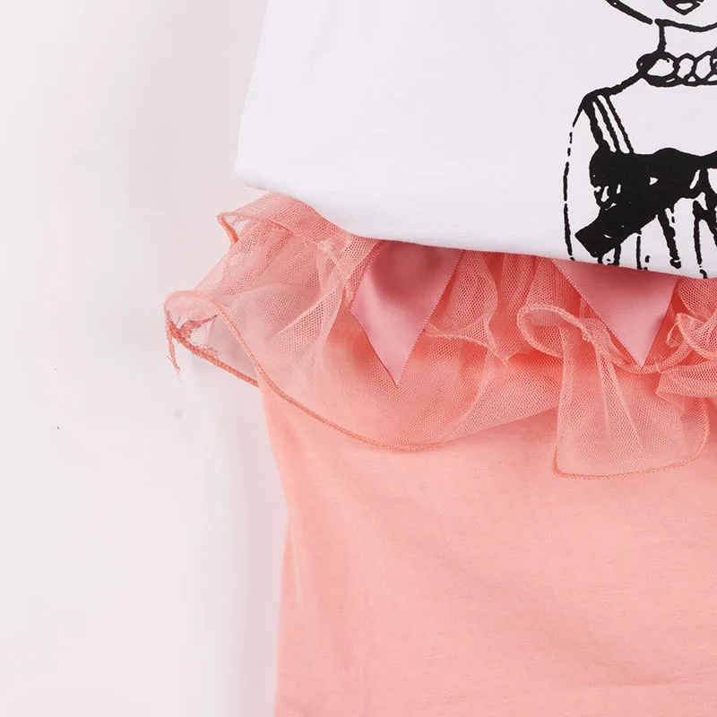 2018 new children’s suit spring and autumn new white girl print pattern strapless camisole + pink fashion skirt kids clothes