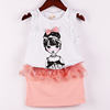 2018 new children’s suit spring and autumn new white girl print pattern strapless camisole + pink fashion skirt kids clothes