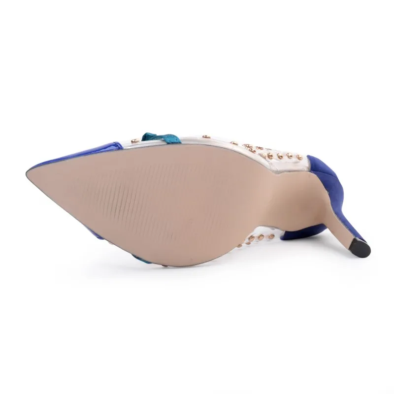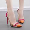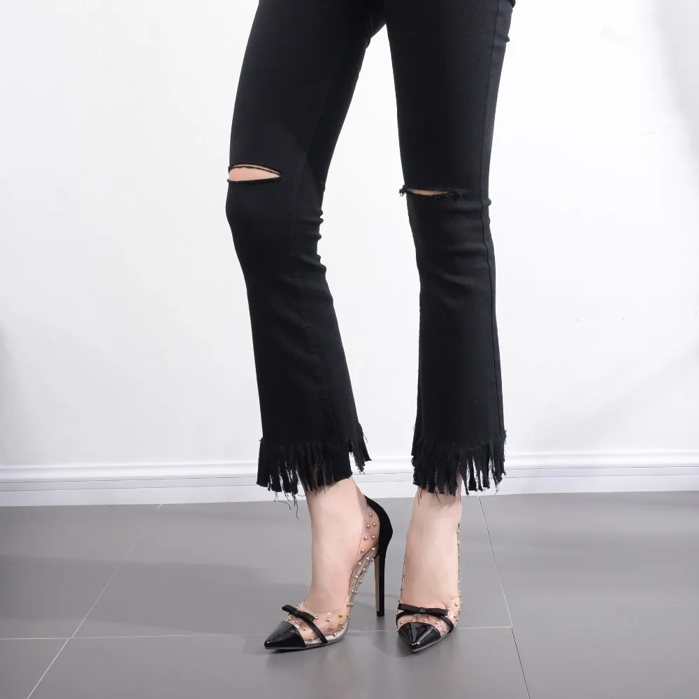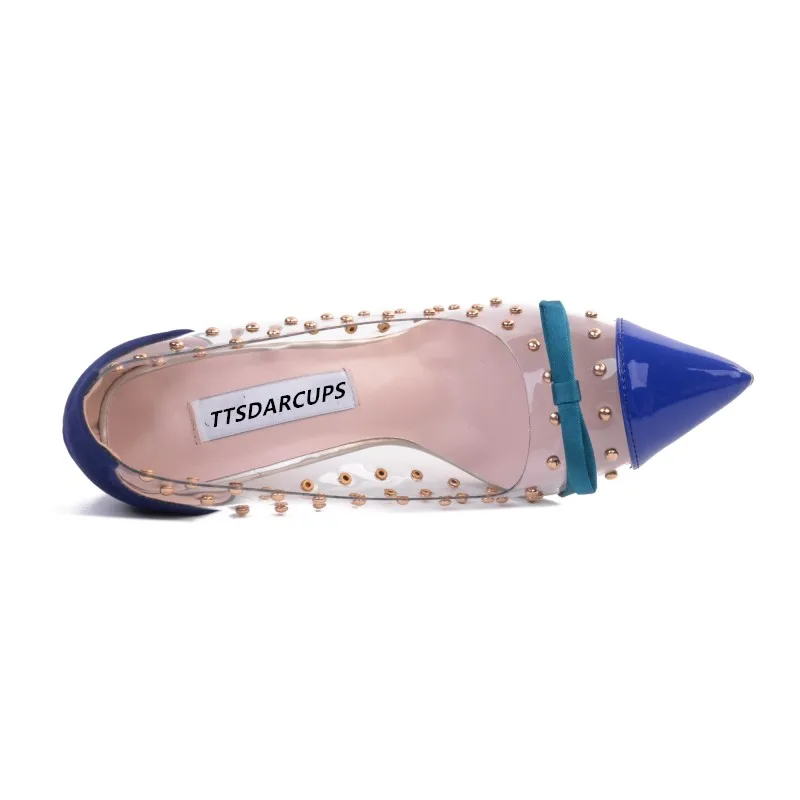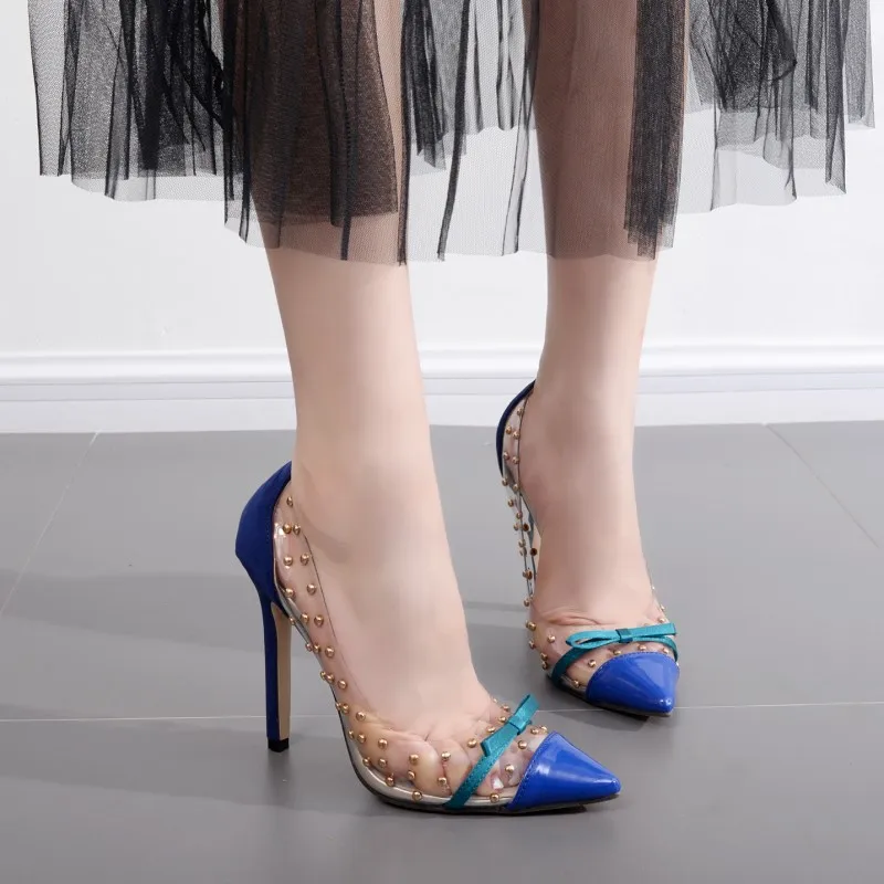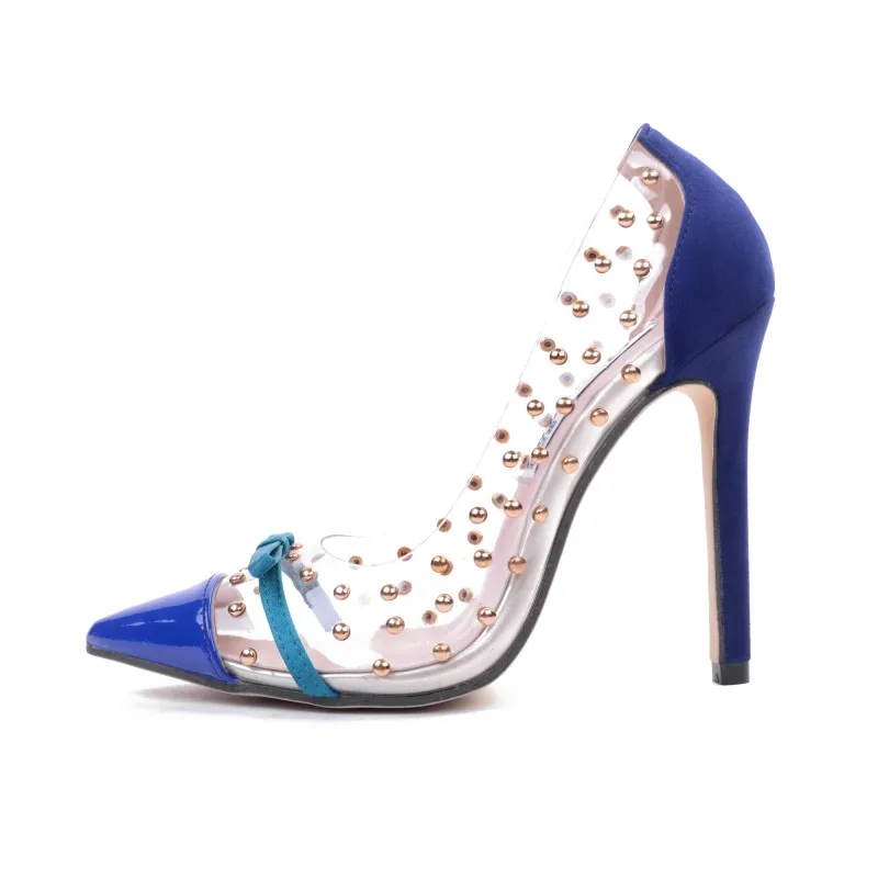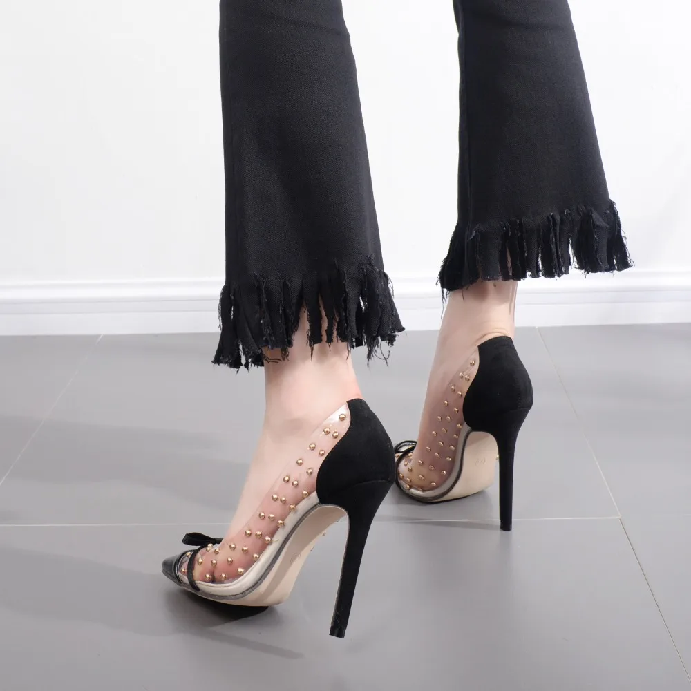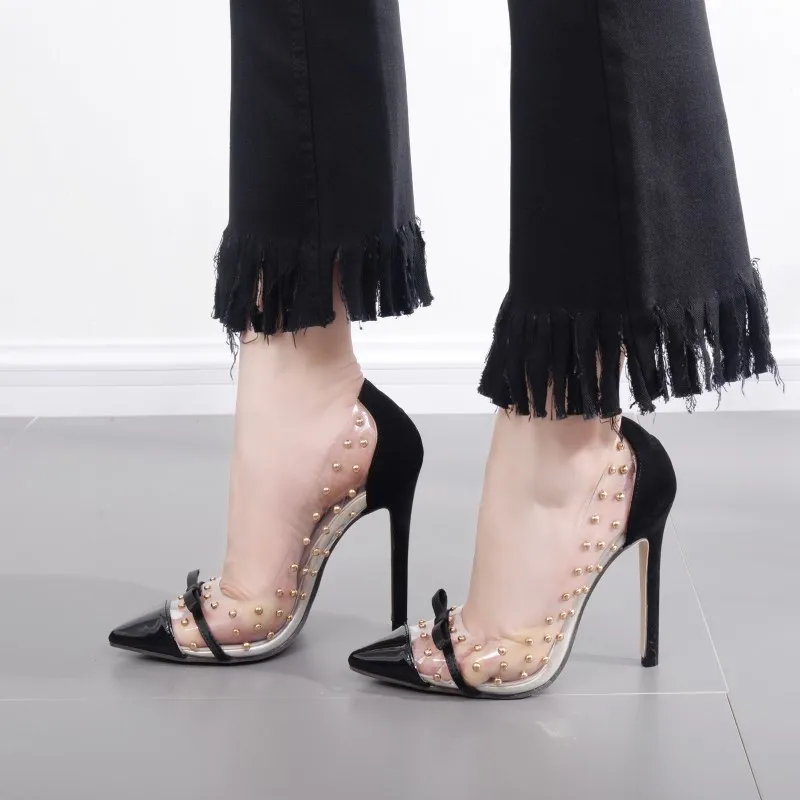 2018 new crystal heel Super heel shoes sexy Nightclub Rivet shoes Fine with a pointed toe Large code transparent pump