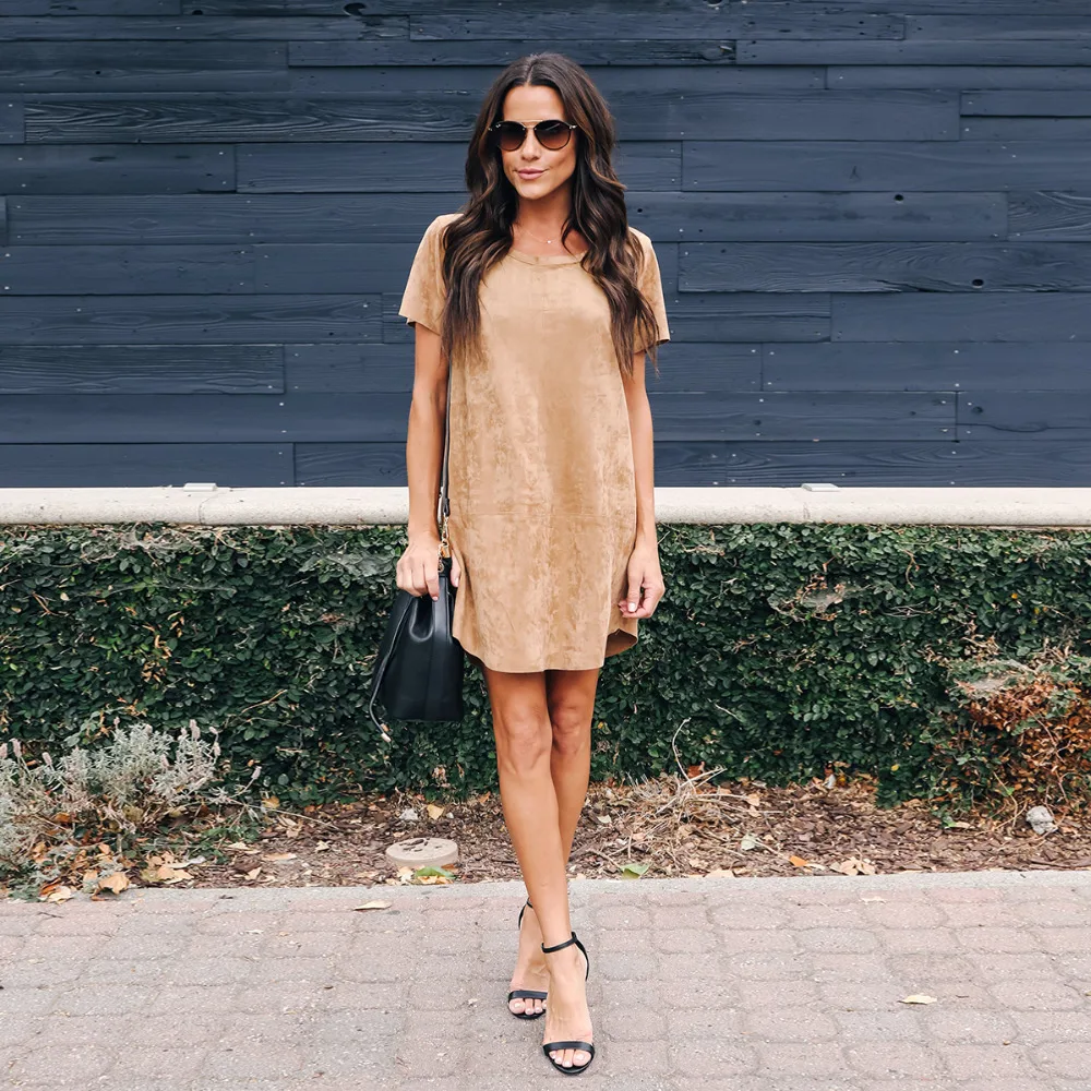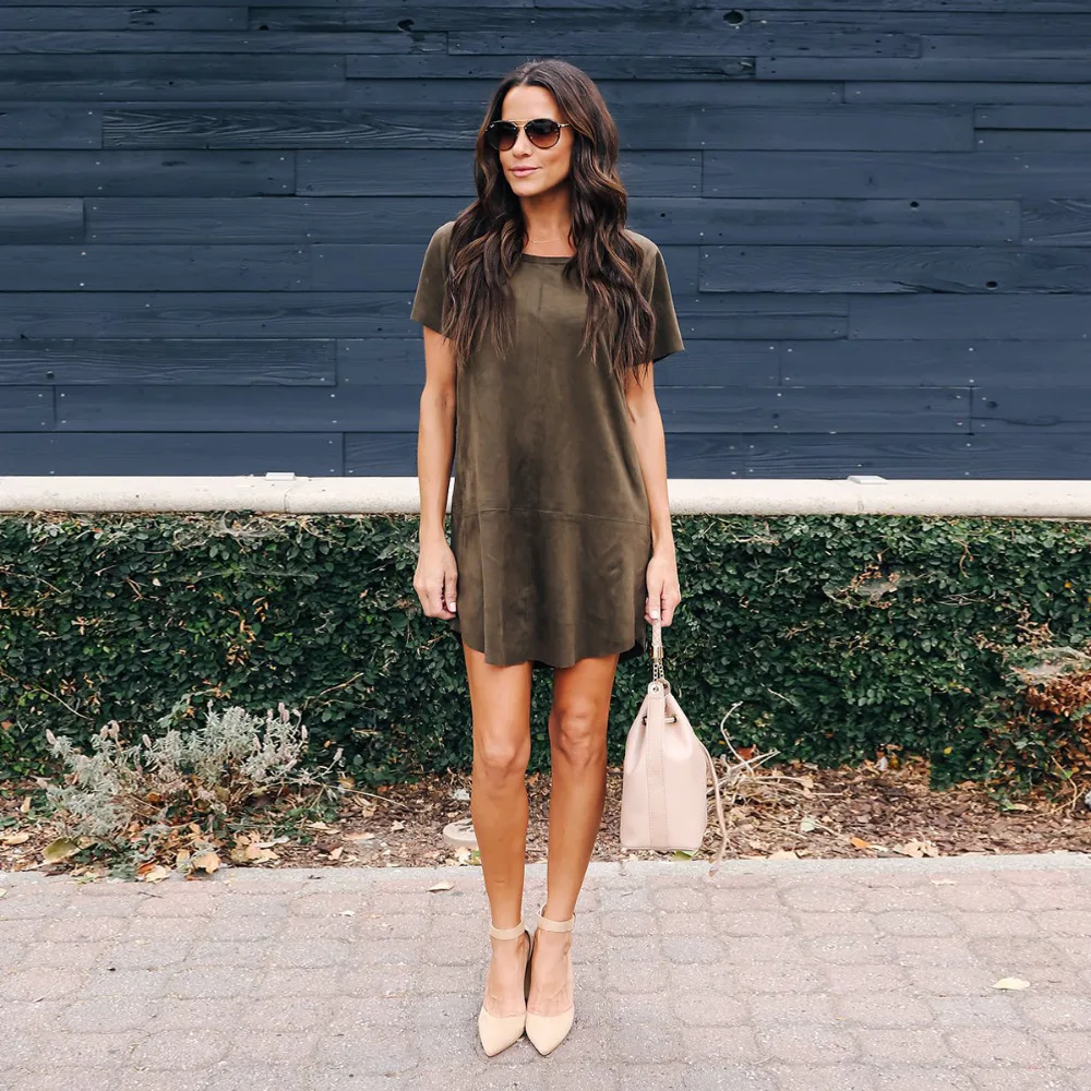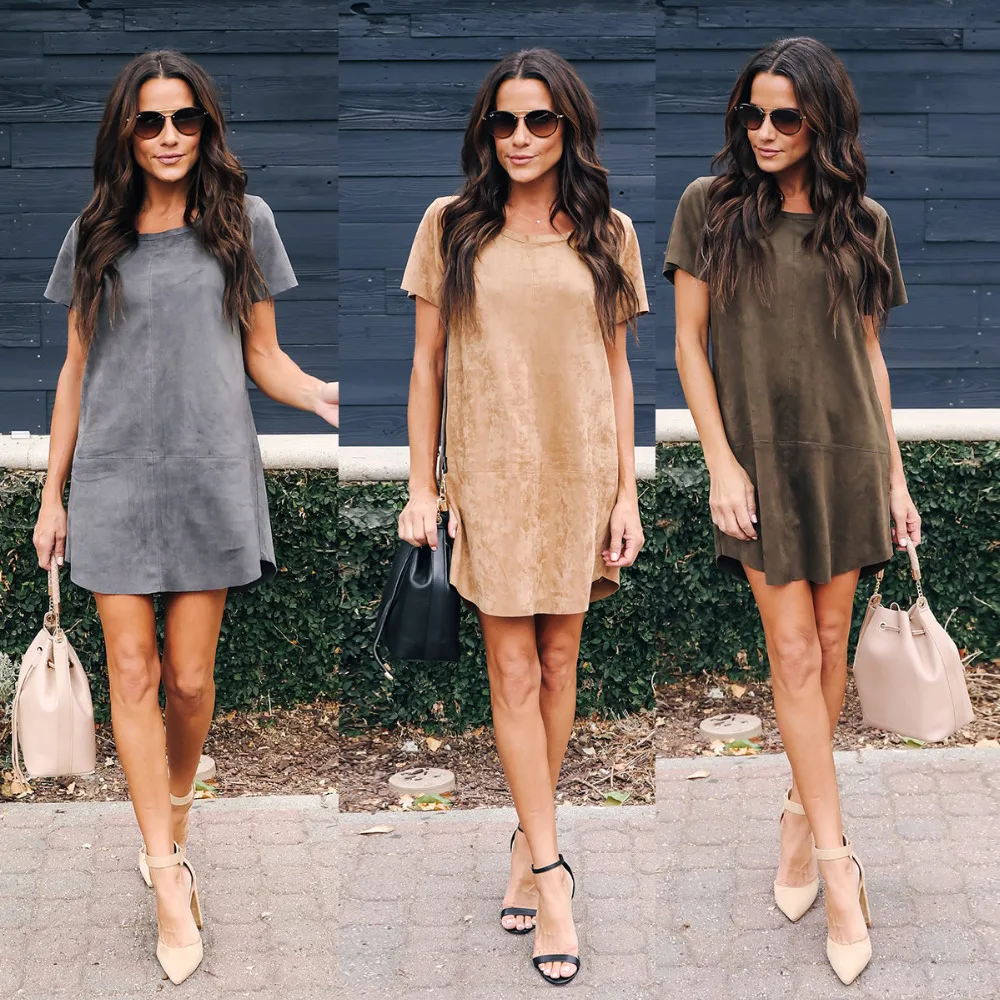 2018 new fashion autumn and winter women’s loose dress casual yellow & gray & green tri-color short-sleeved O-neck dress