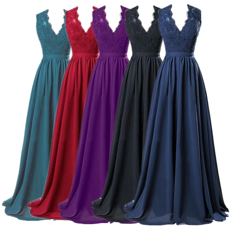 2018 New Fashion Evening Party Dress Women Sexy Deep V Neck Lace Maxi Long Dress Elegant Slim Vestidos Women Dress Plus Size 5XL