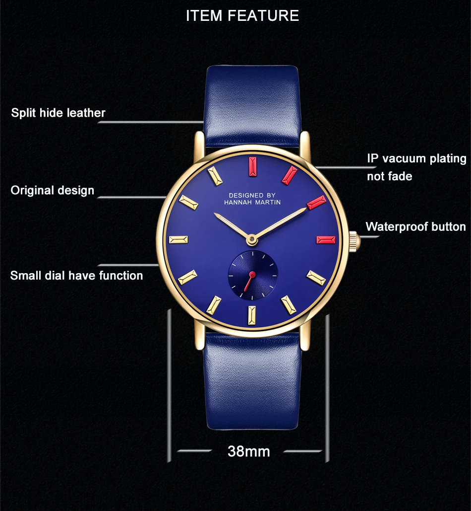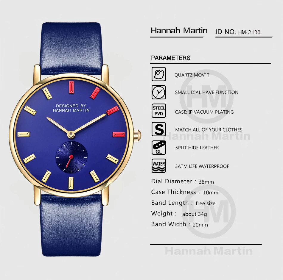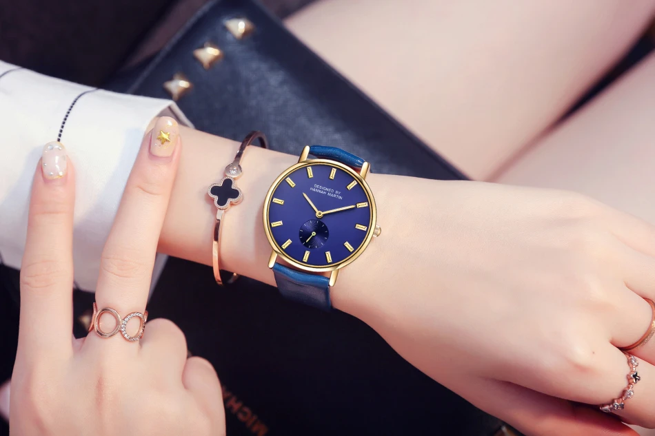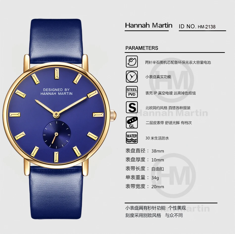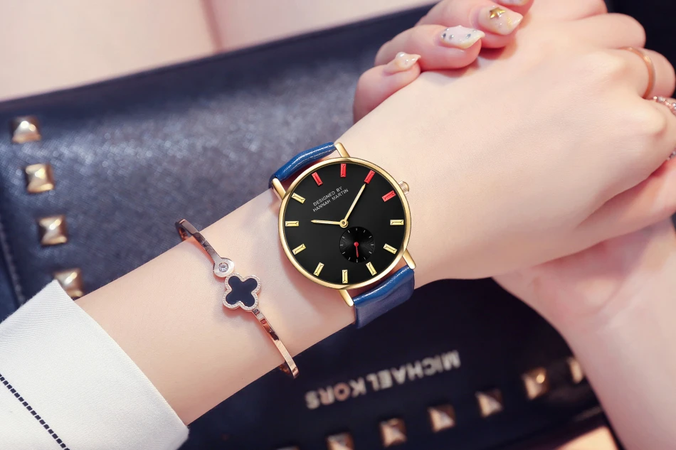 2018 new fashion Hanna Martin brand ladies quartz watch female leather student waterproof watch girl gifts