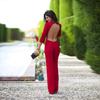 2018 New Fashion Jumpsuits Women Sexy Backless Red Jumpsuits For Women Full Length Wide Leg Loose Bodysuits