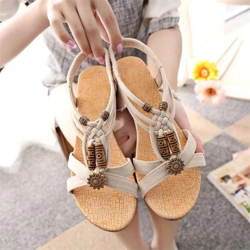 2018 New Fashion Sandals Women’s Bohemia Sandals Casual Peep-toe Flat Buckle Shoes Roman Summer Harajuku Sandals