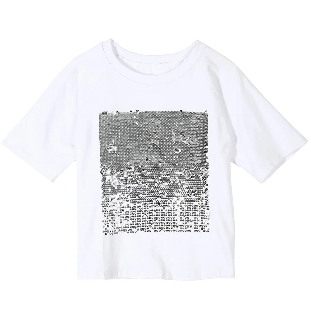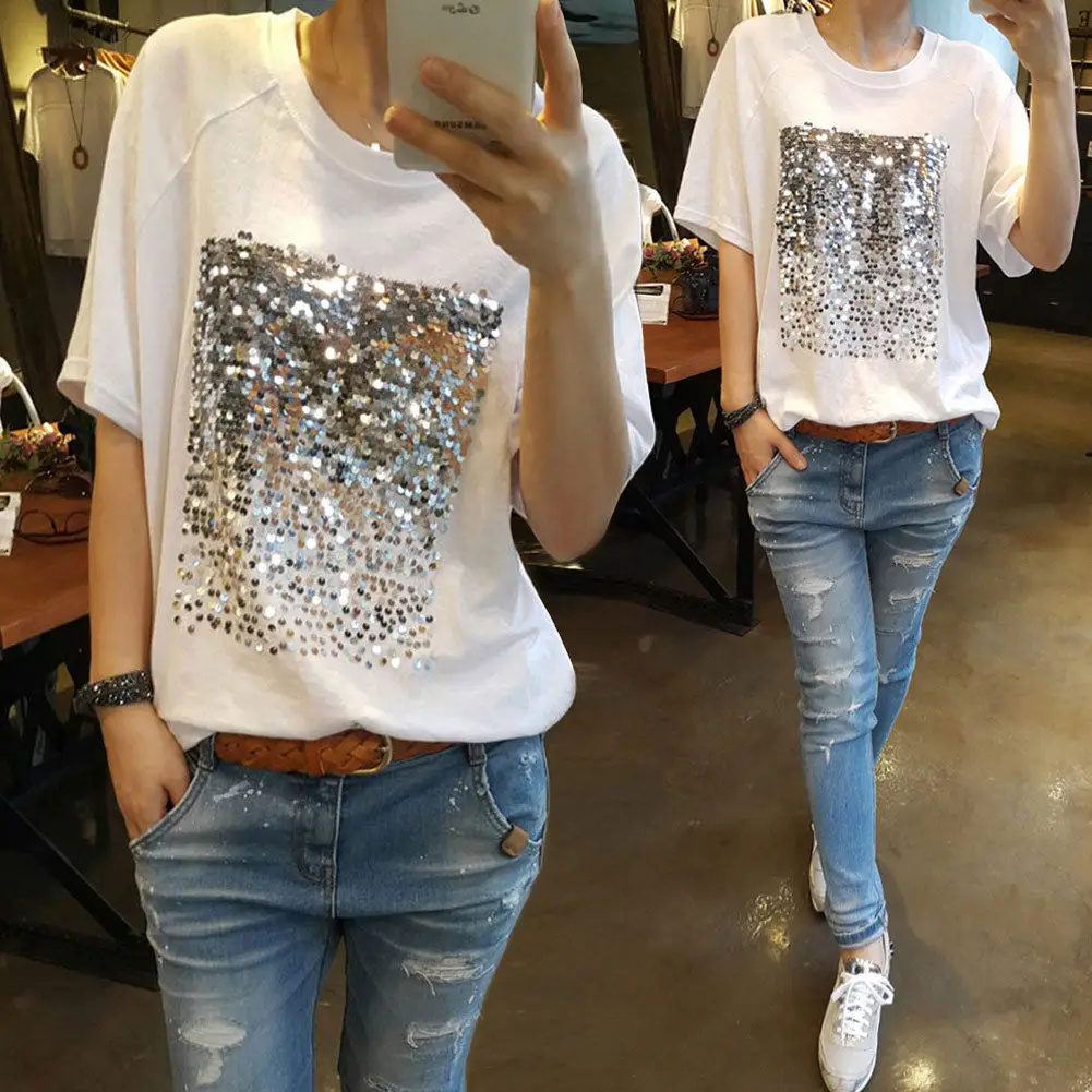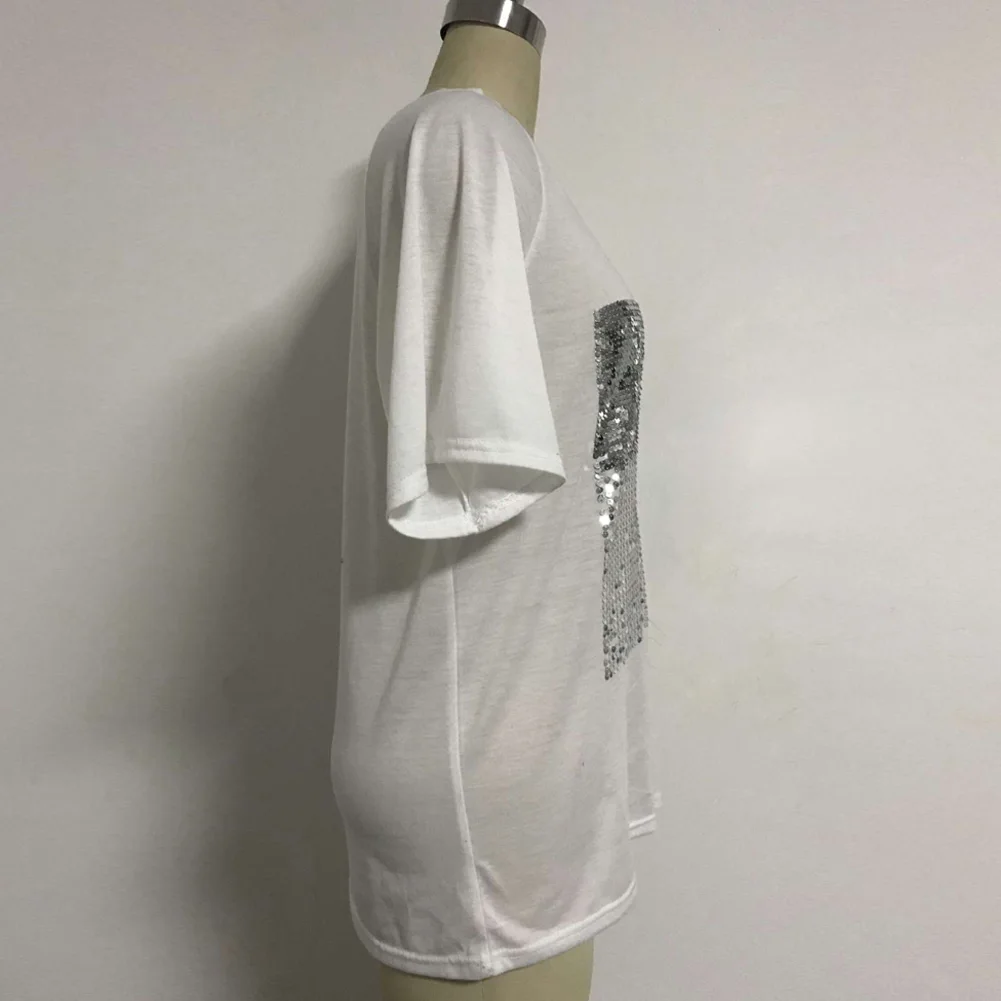 New Women Summer Casual Sequined Blouse Short Sleeve Shirt T-shirt Blouse Tops