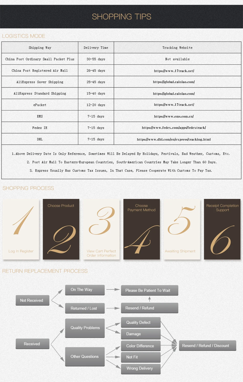 Packages from our warehouse in China will be shipped by ePacket or EMS depending on the weight and size of the product. Packages shipped from our US warehouse are shipped through USPS.