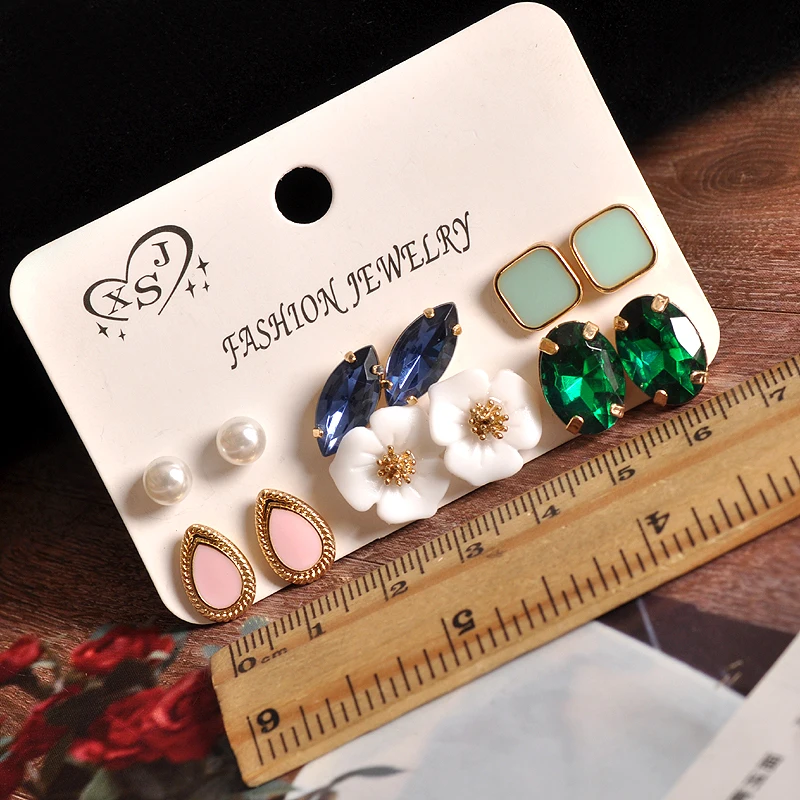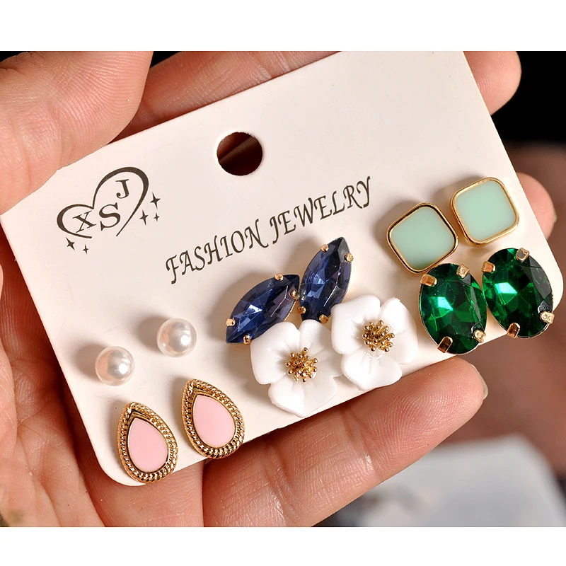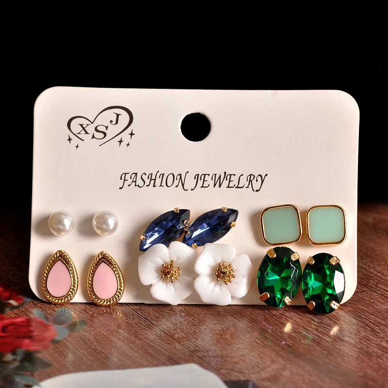 2018 new fashion women’s jewelry girls’ birthday party: pearl earring green and pink green mixed suit 6 pairs /set earrings