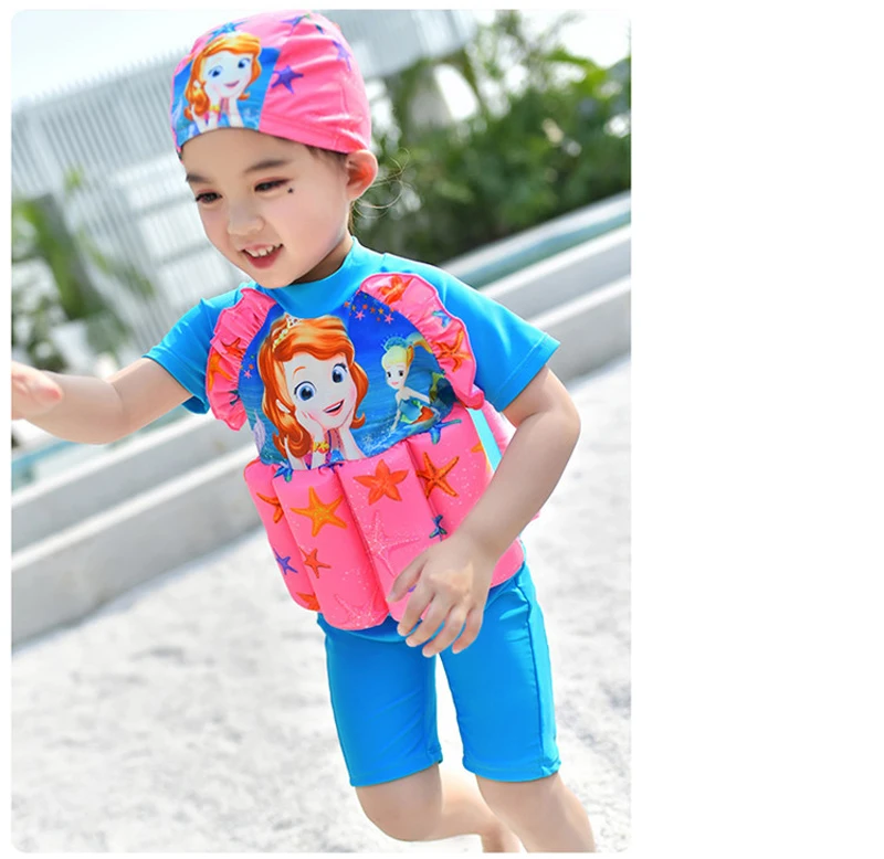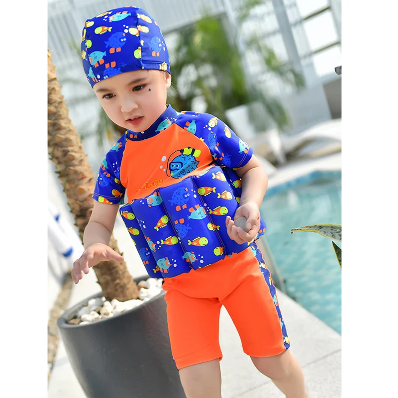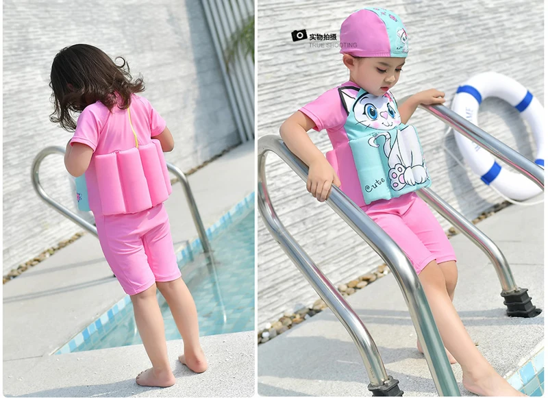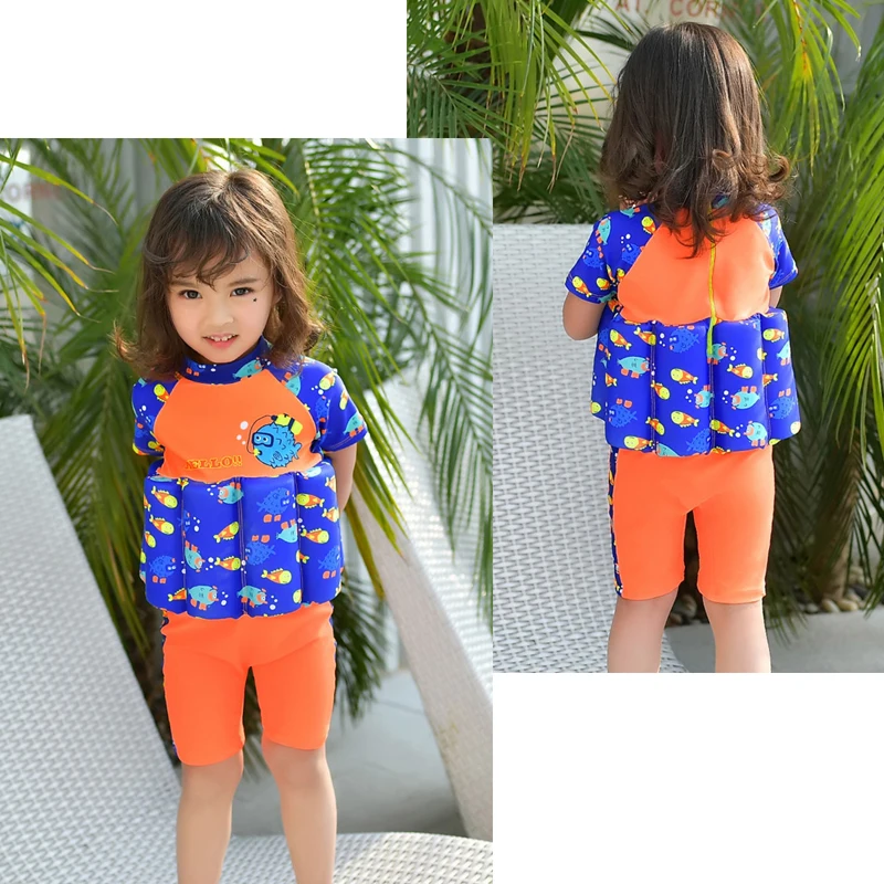 2018 new Floating Swimwear girls boys Swimming Train one piece swimsuit for kids EVA Padded biservice suit