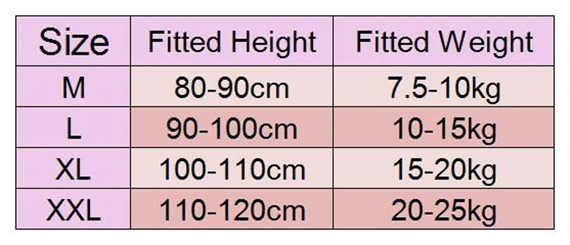 Please chose the size as your kid’s height(cm) and weight(kg).
