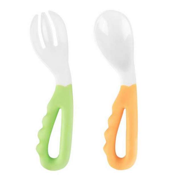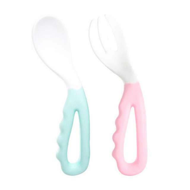 2018 New For Toddlers Easy-to-Hold Baby Feeding Curved Handle Spoon And Fork Tableware