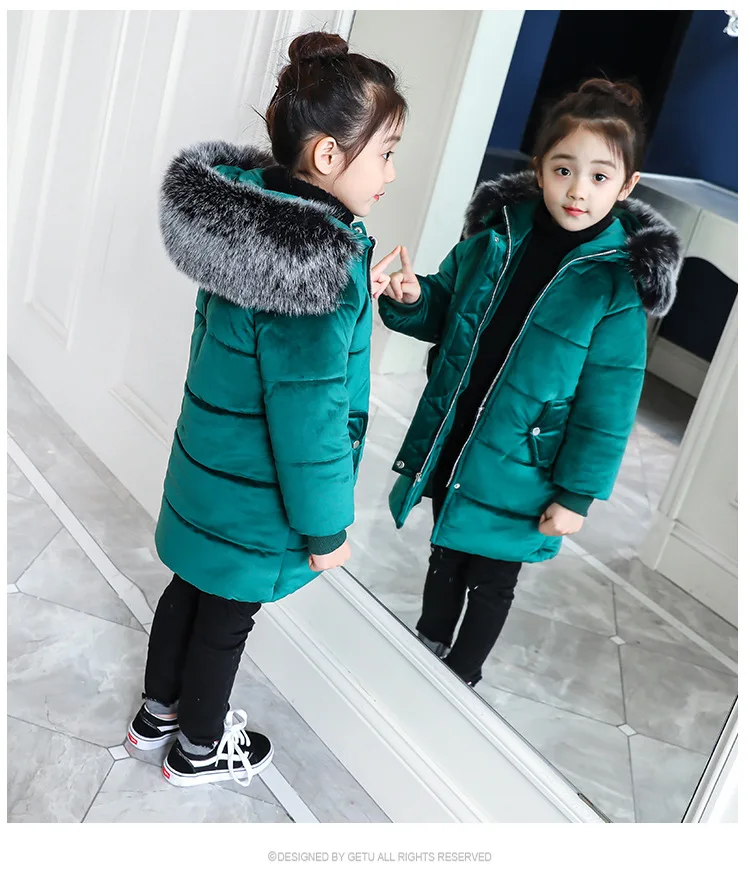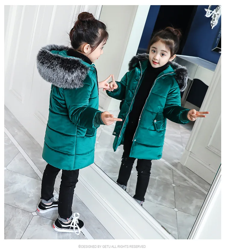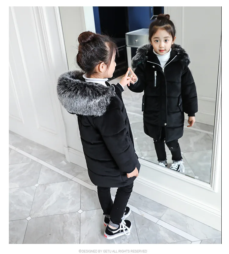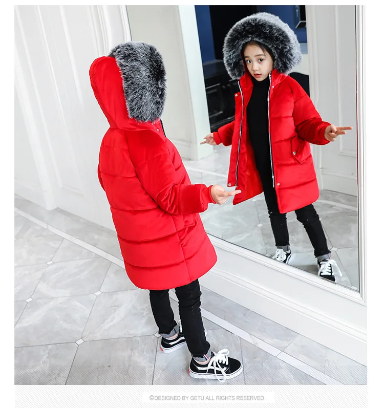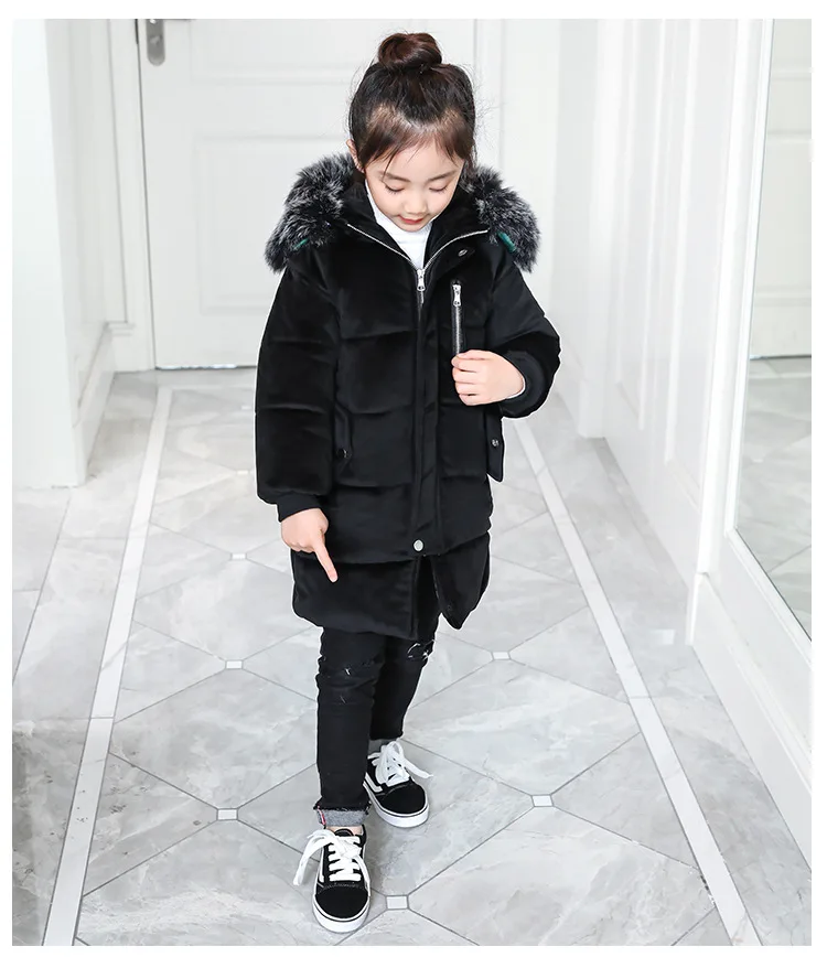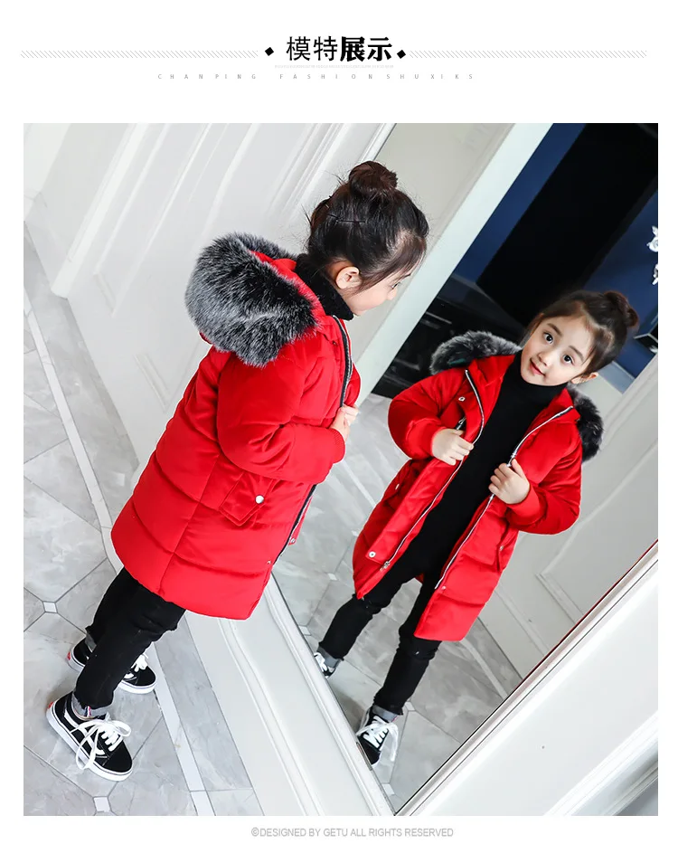 2018 New Girls Long Padded Jacket Kids Winter Coat Kids Warm Thickening Hooded Down Coats for Teenage Outwear -30 Winter Coat
