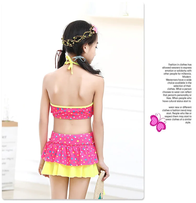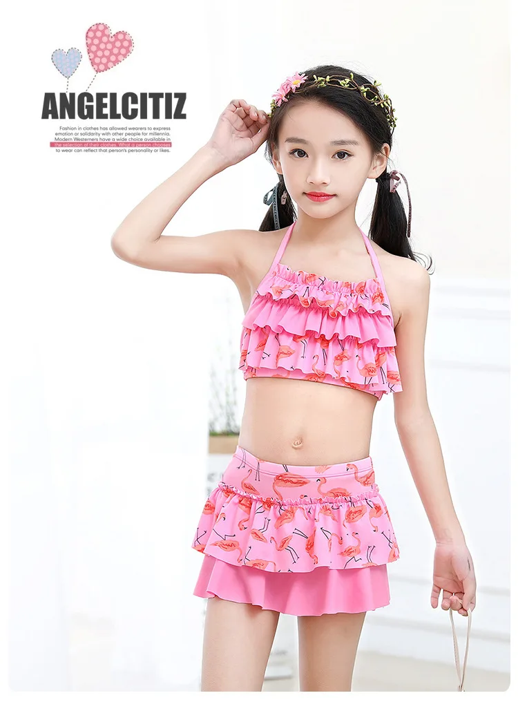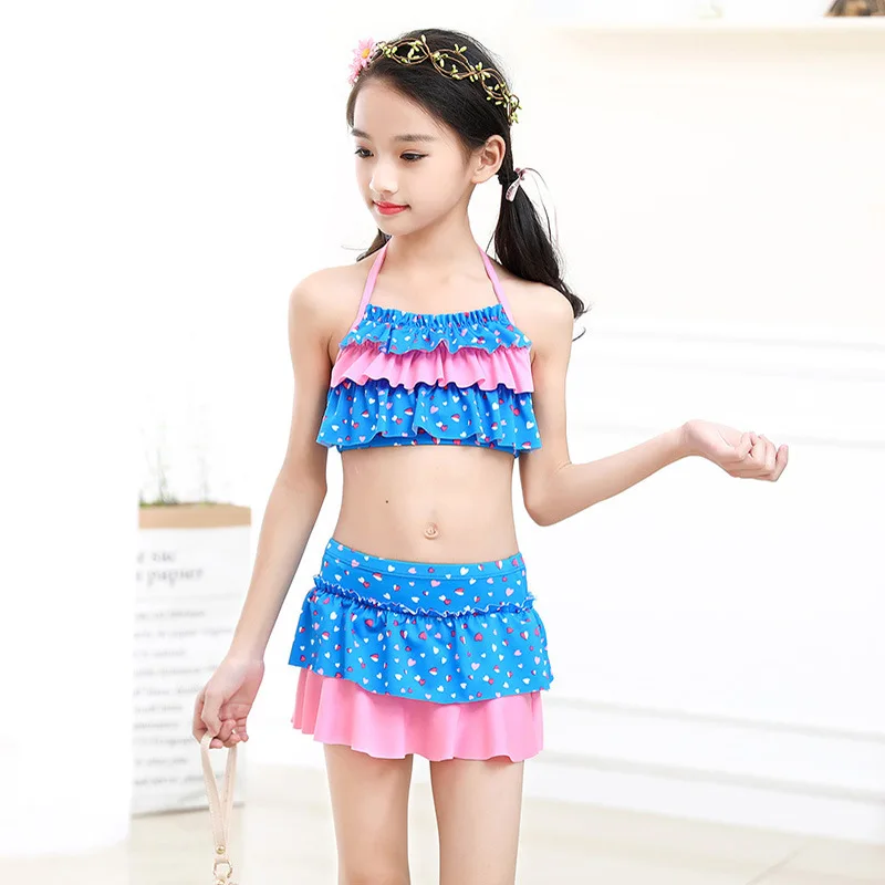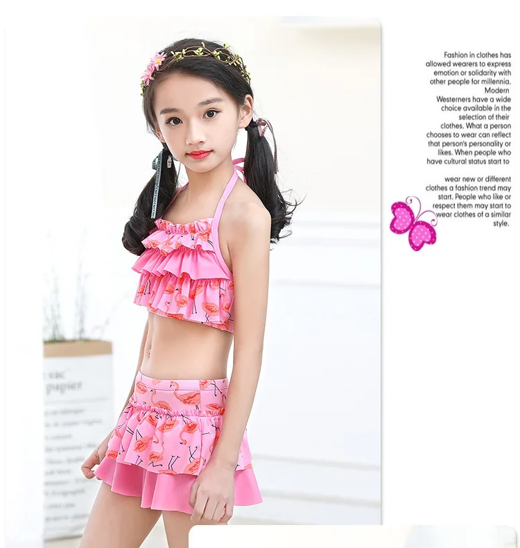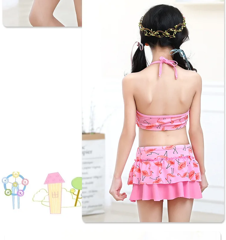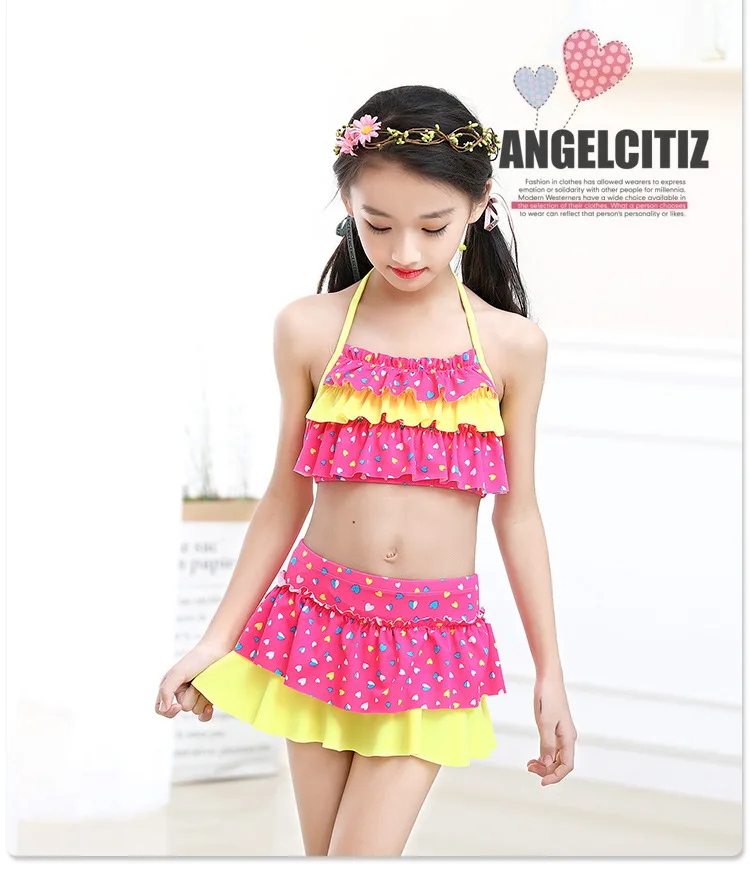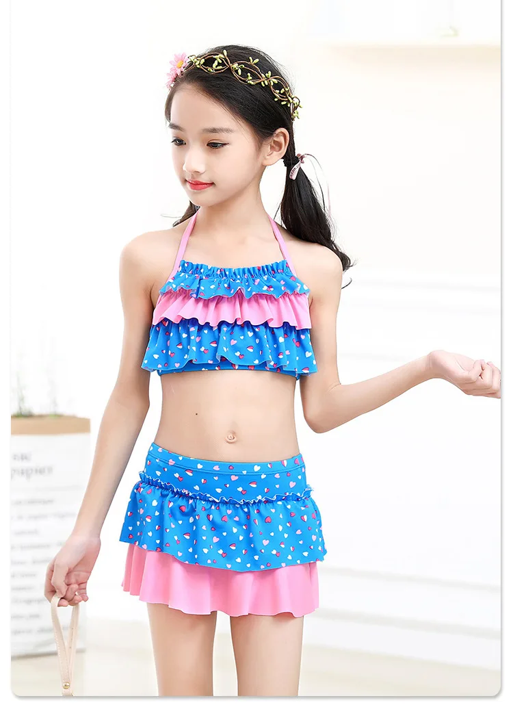 2018 New Girls Two Pieces Suits for Swimming Children Polyester Swimwear Kids Floral Bathing Suit Swim Wear Big Girl Swimsuits