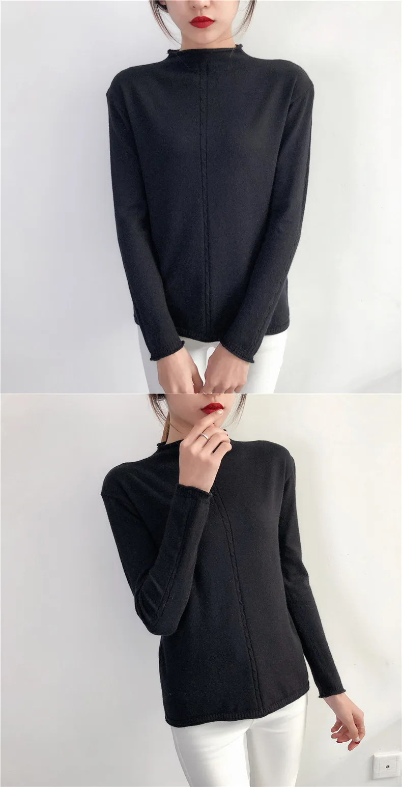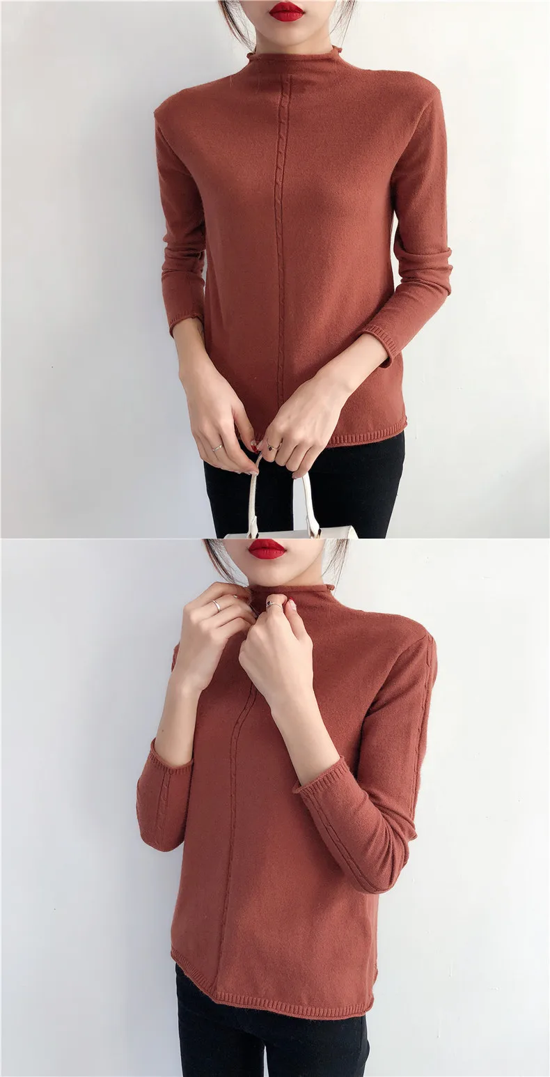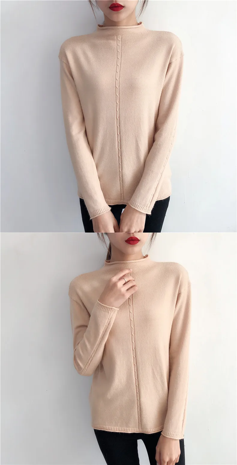 2018 New half downneck female take the loose lipped twist shirt long sleeved sweater retro fitting