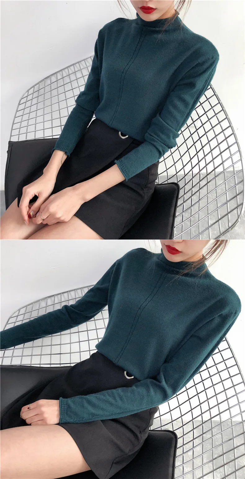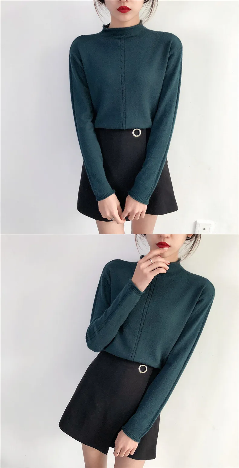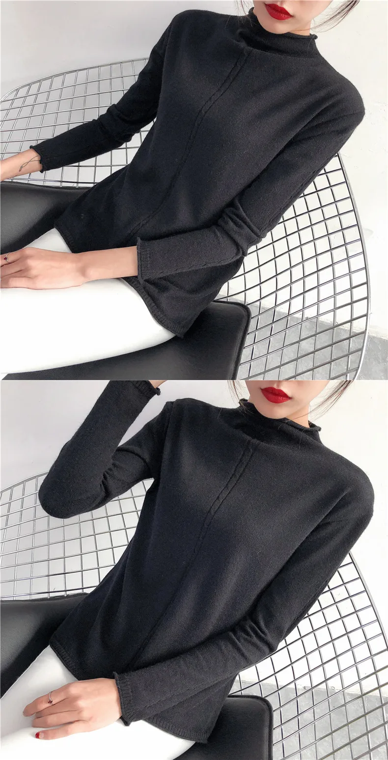 2018 New half downneck female take the loose lipped twist shirt long sleeved sweater retro fitting