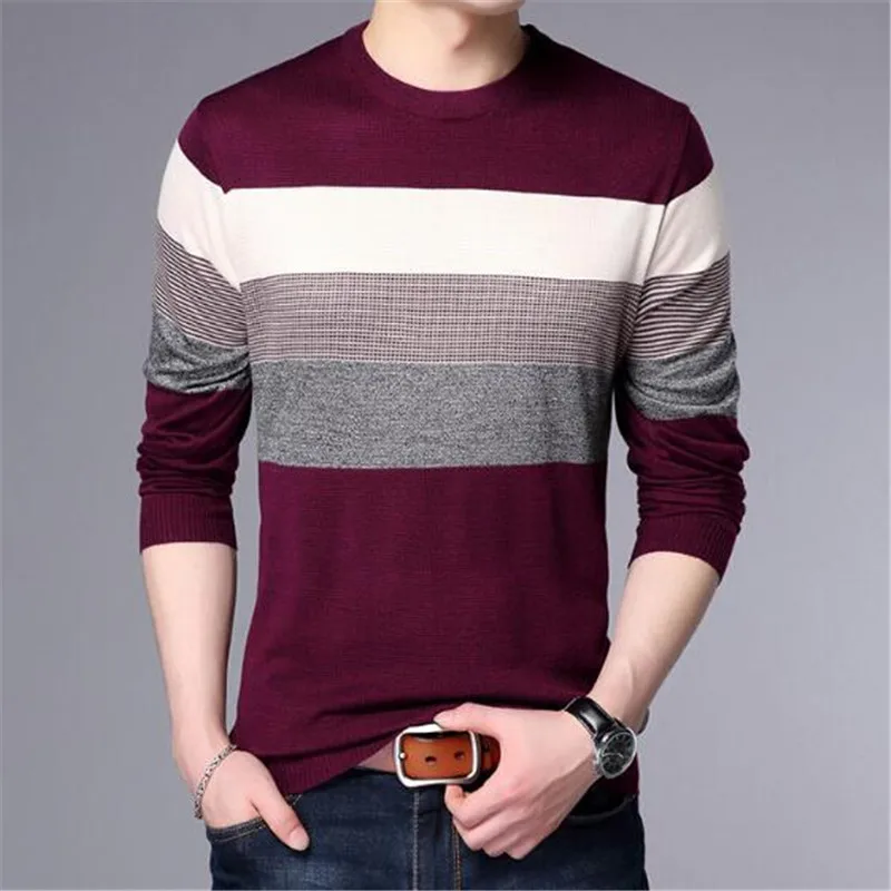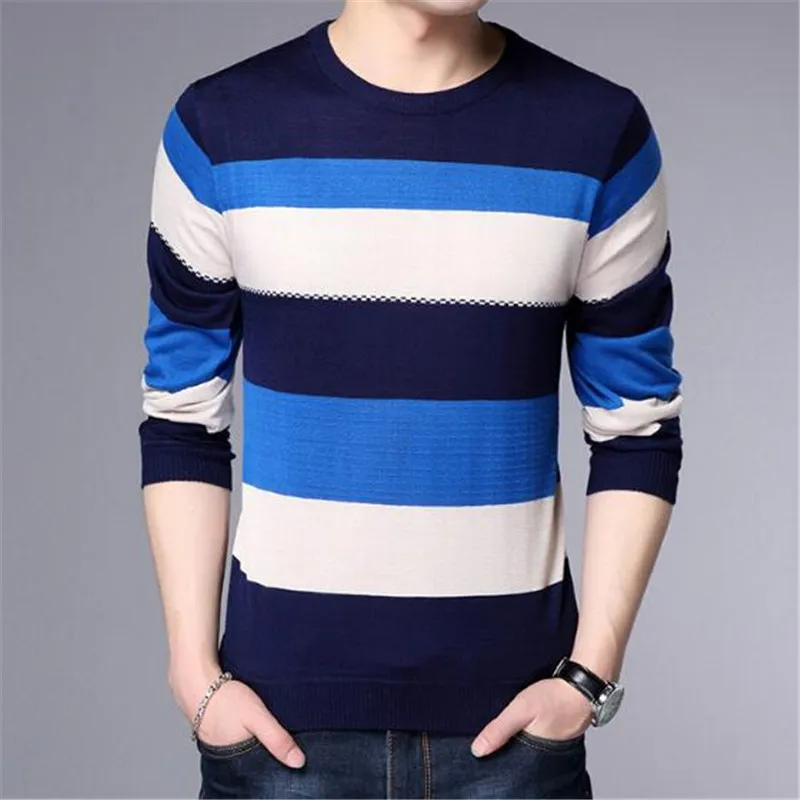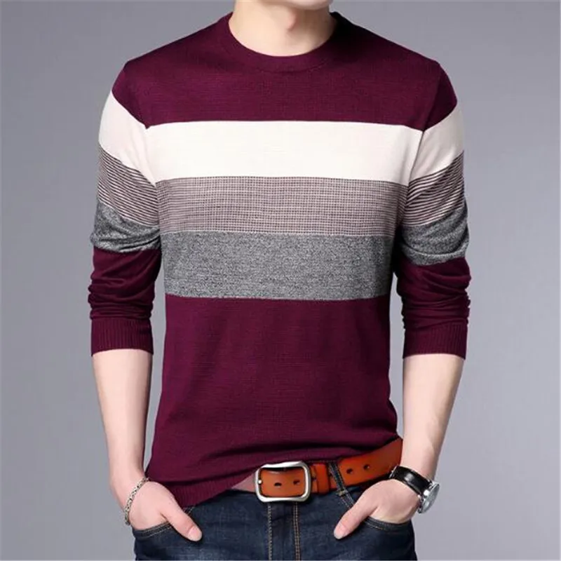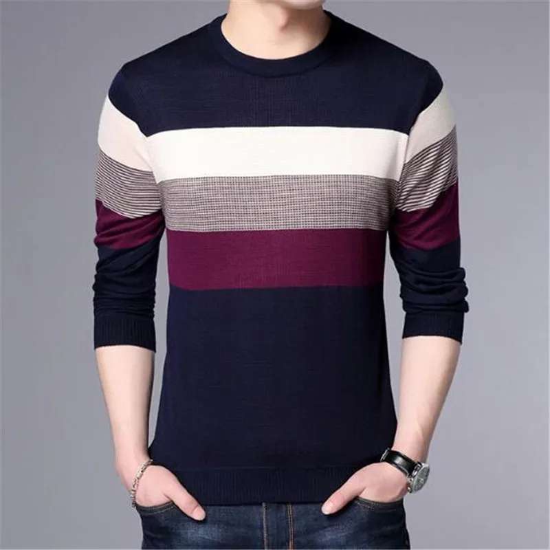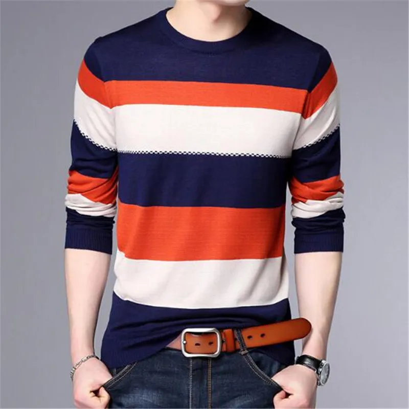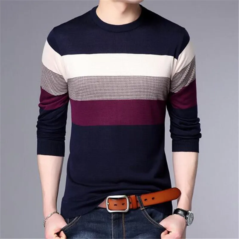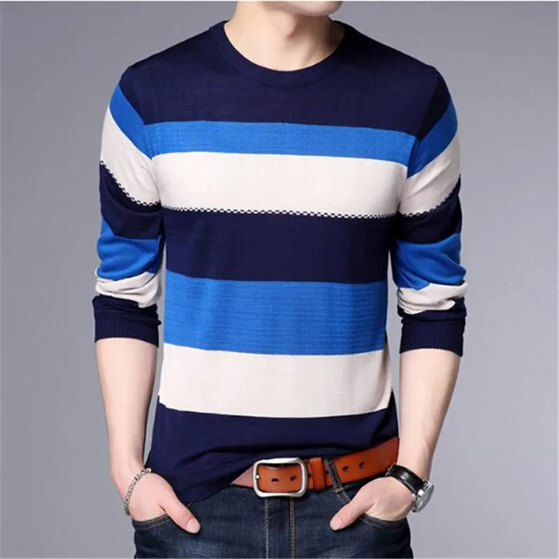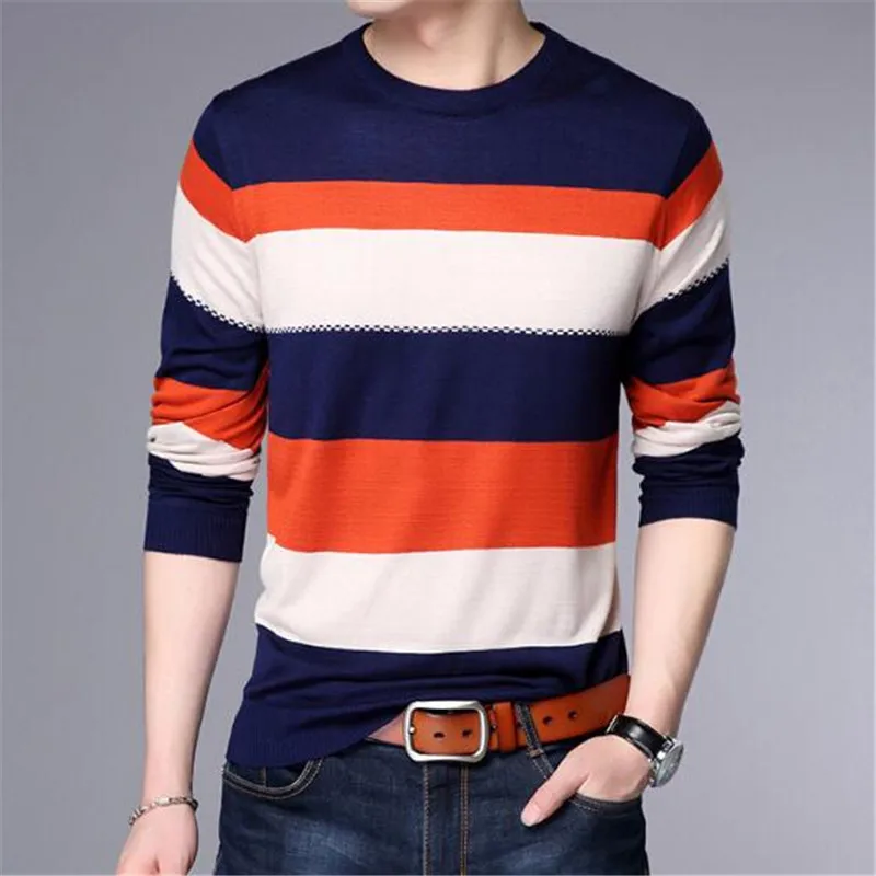 2018 new Men T-Shirt Spring Summer Long Sleeve O-Neck T-Shirt Men Brand Striped shirt Fashion Patchwork Cotton Tee AE88