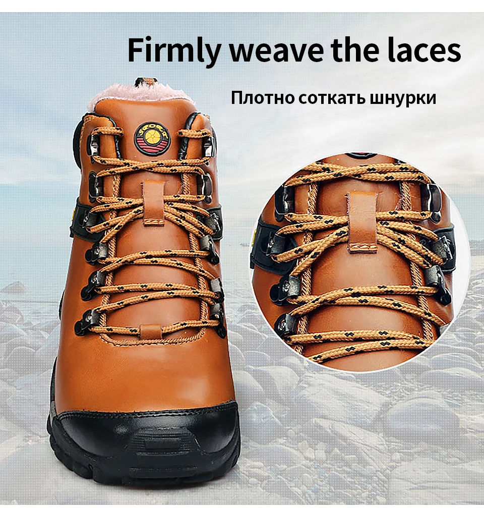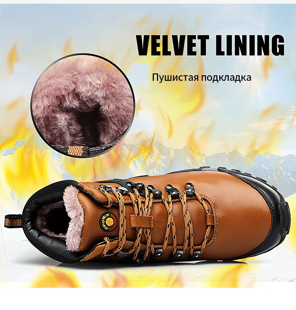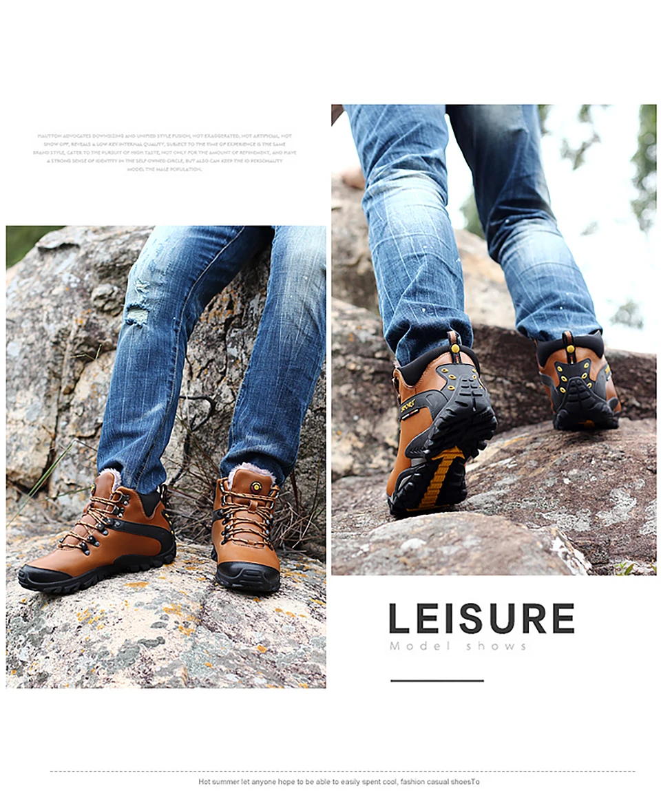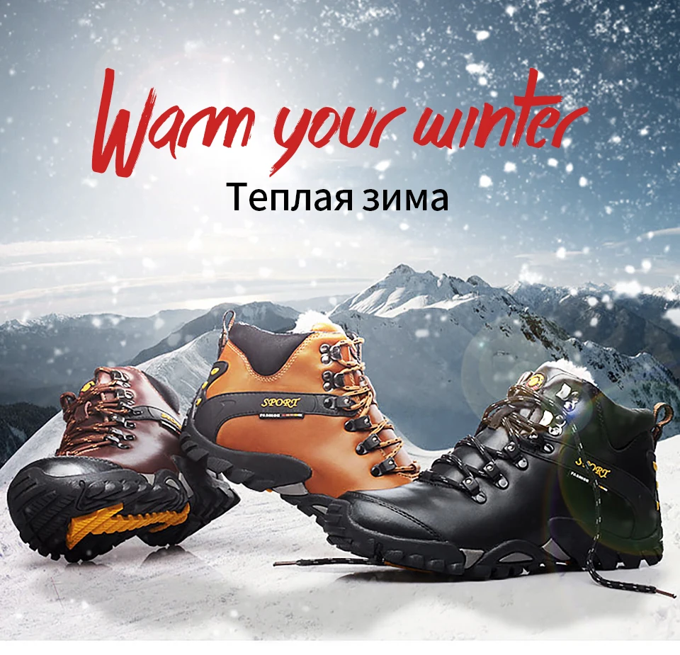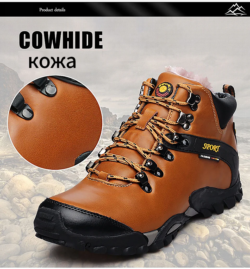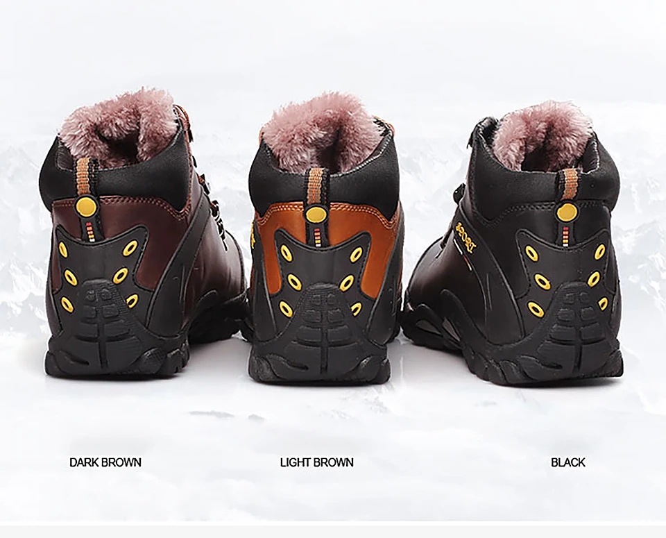 2018 New Men Warm Winter Leather Hiking Boots Waterproof Men Moutain Boots Shoes Climbing Outdoor Male High Top Trekking Shoes