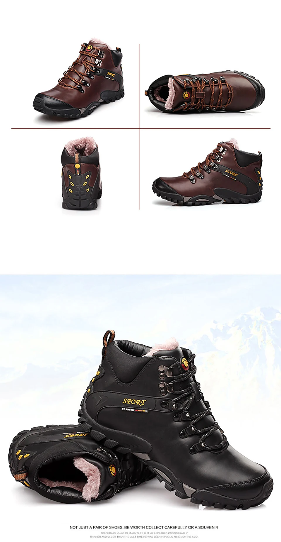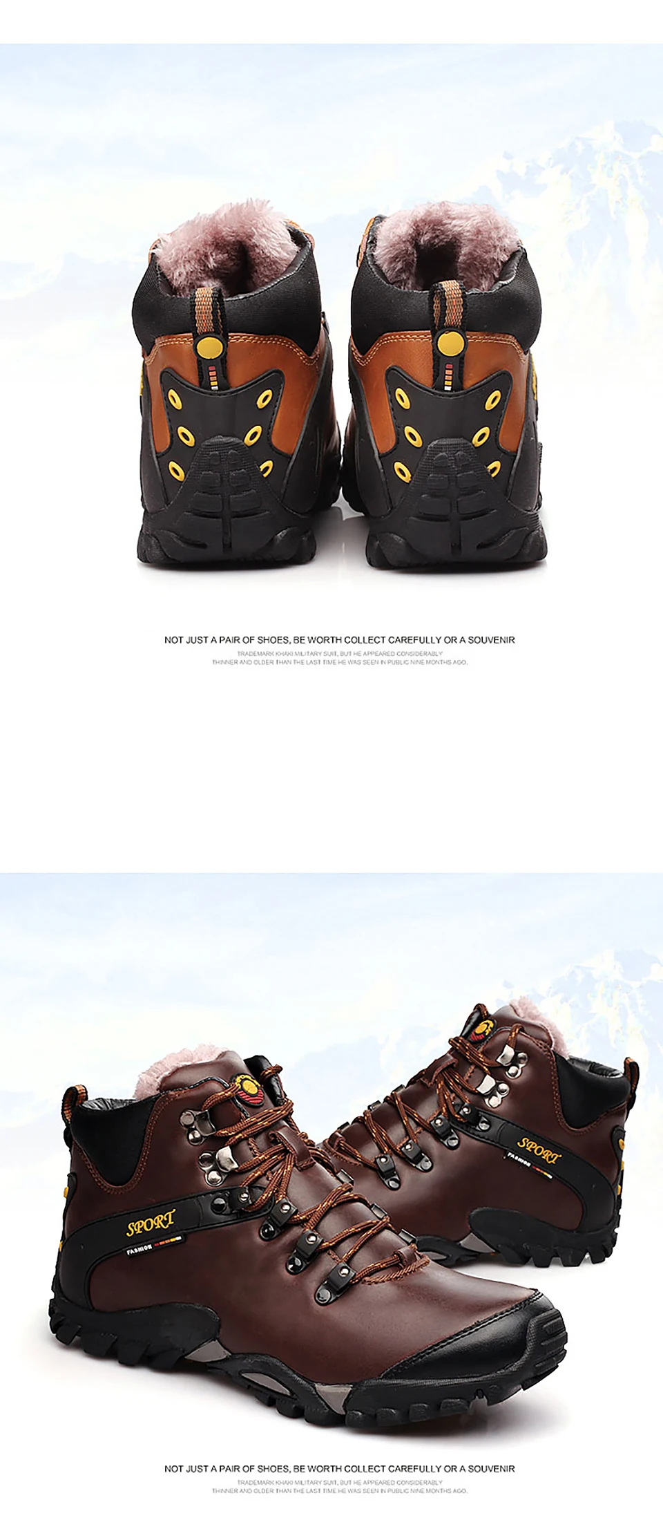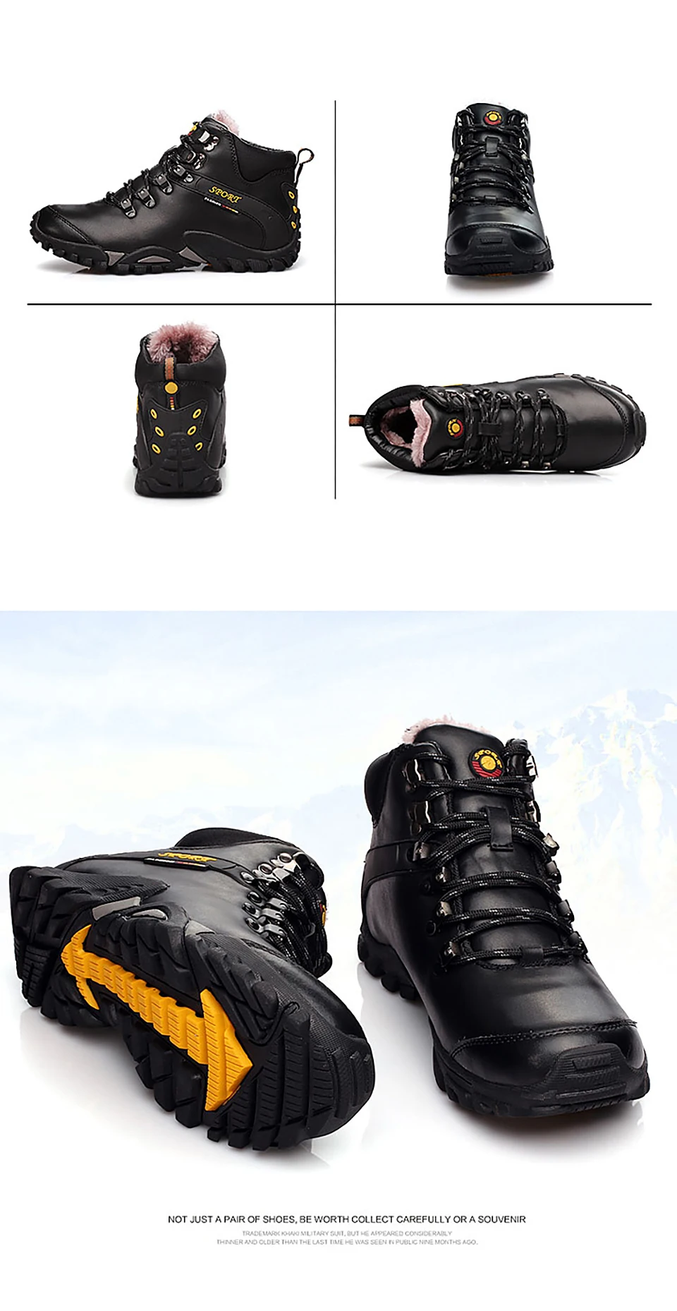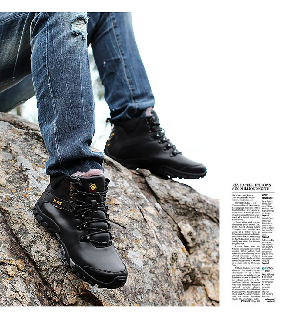 2018 New Men Warm Winter Leather Hiking Boots Waterproof Men Moutain Boots Shoes Climbing Outdoor Male High Top Trekking Shoes