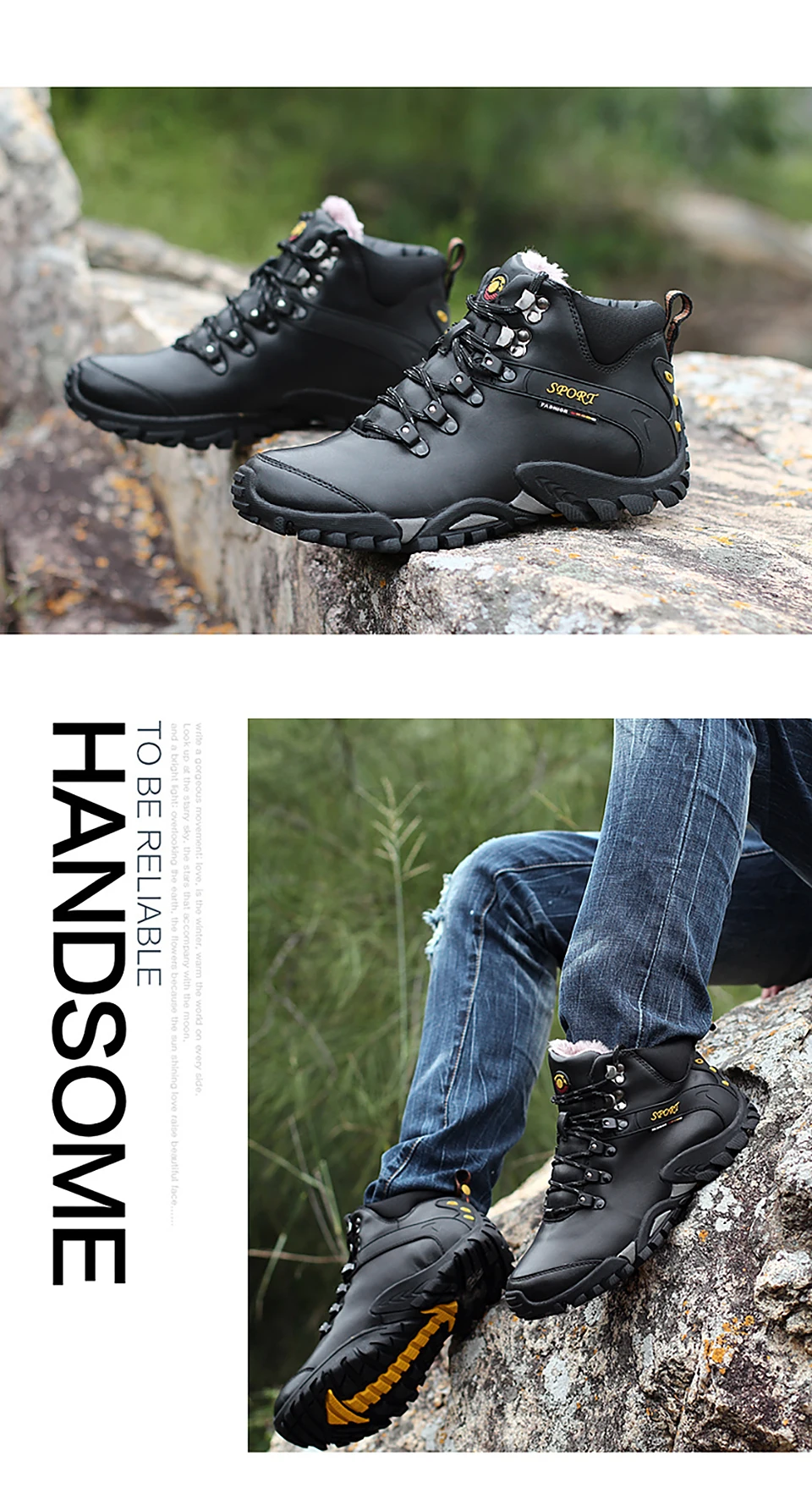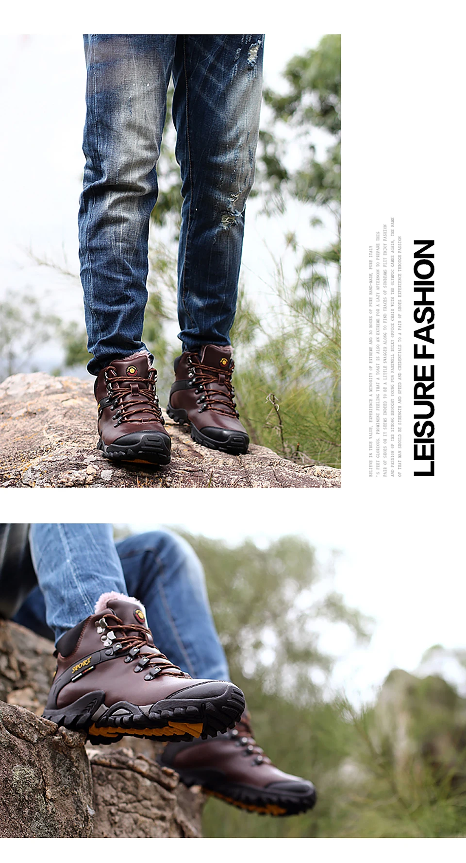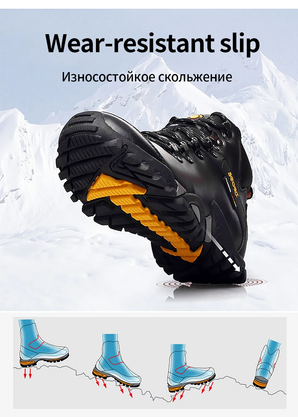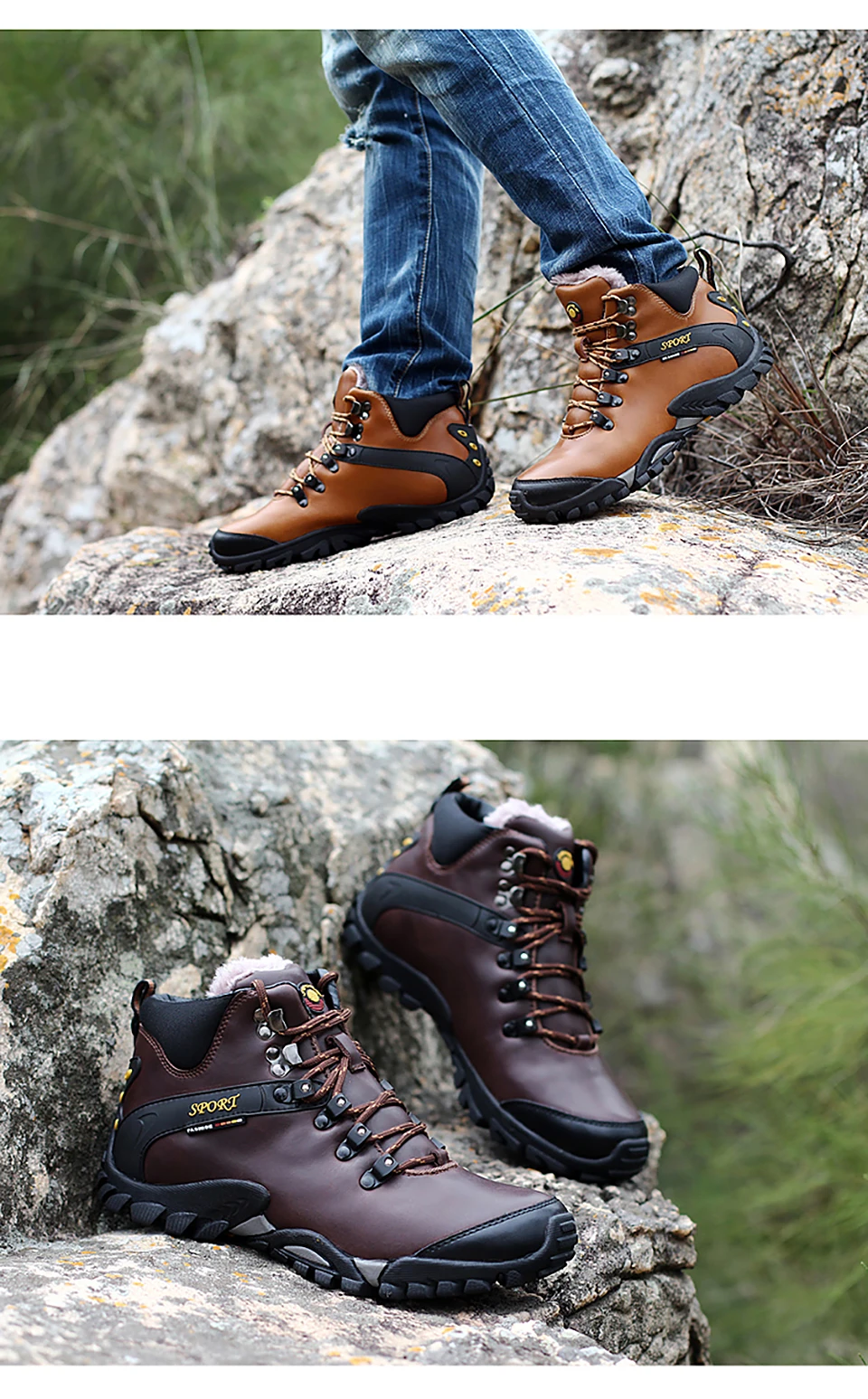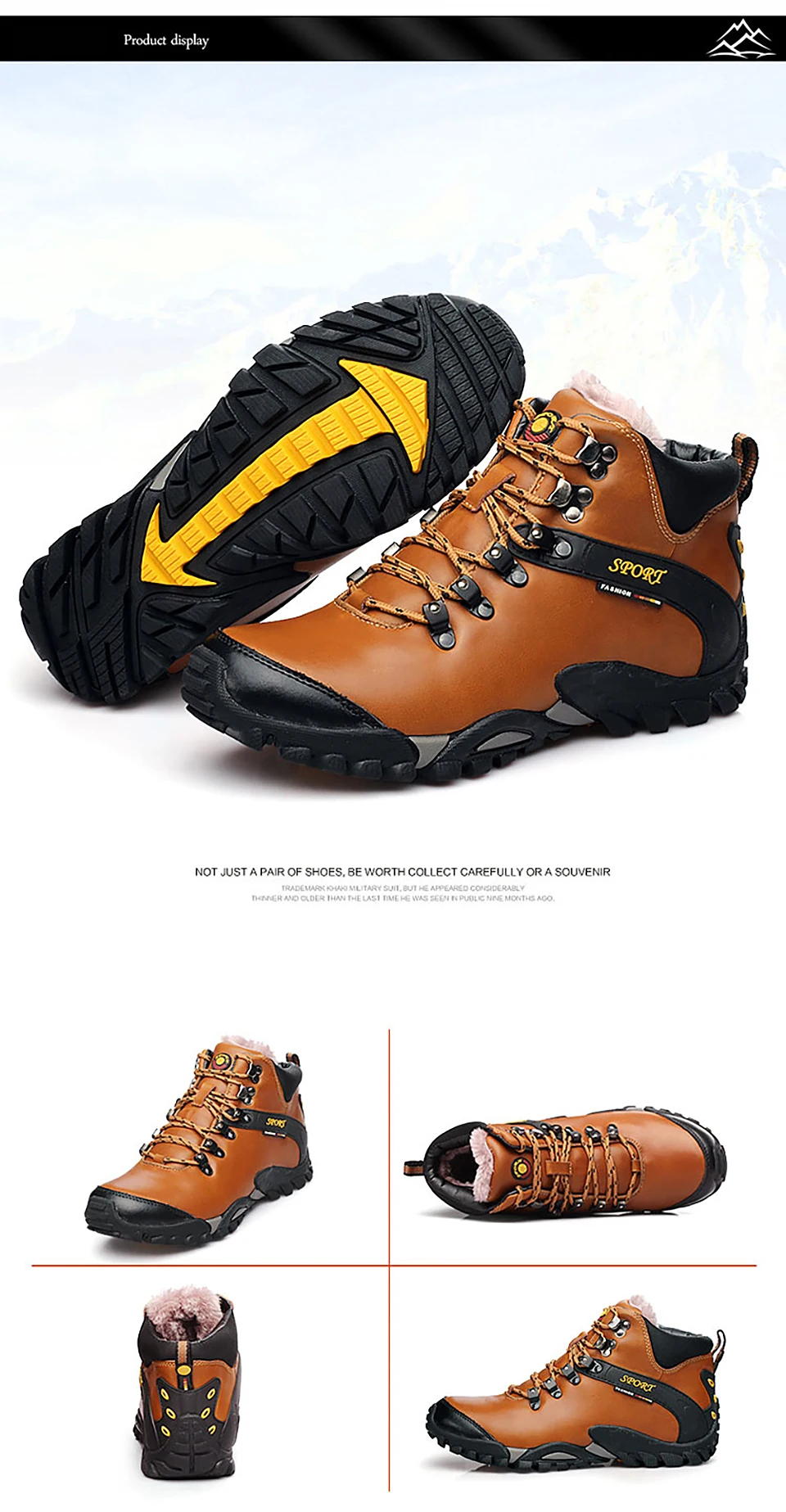 2018 New Men Warm Winter Leather Hiking Boots Waterproof Men Moutain Boots Shoes Climbing Outdoor Male High Top Trekking Shoes