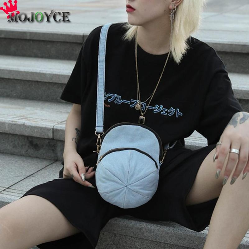 Creative Personality Cap Shape Denim Crossbody Bags Women Zipper Casual Messenger Shoulder Bags