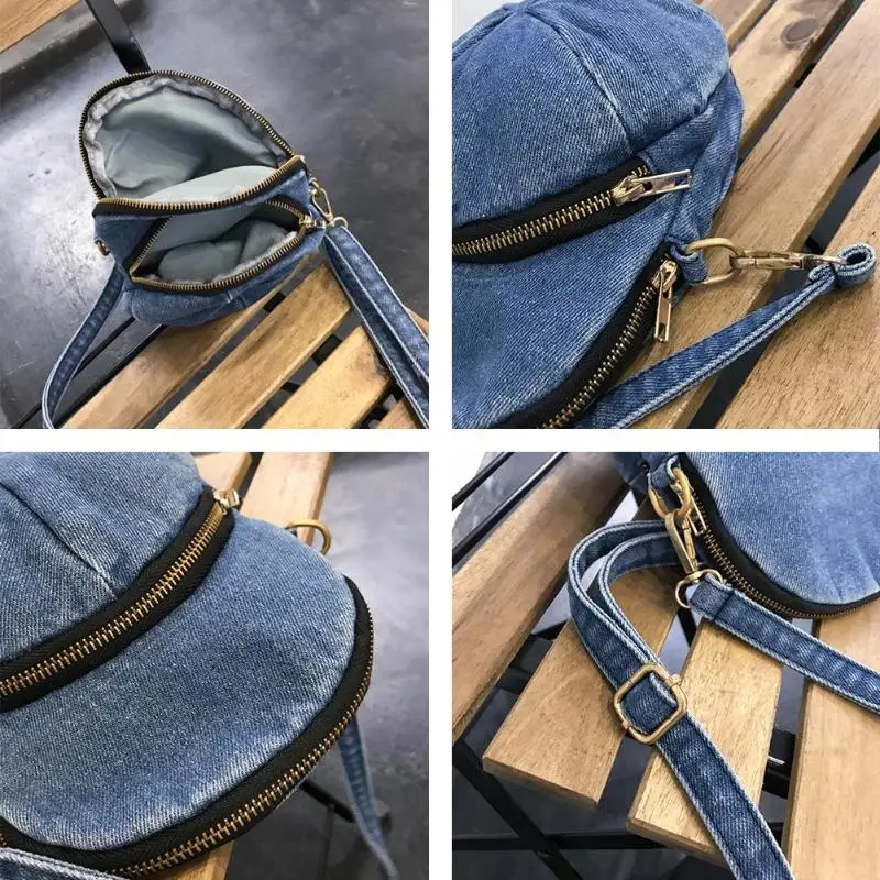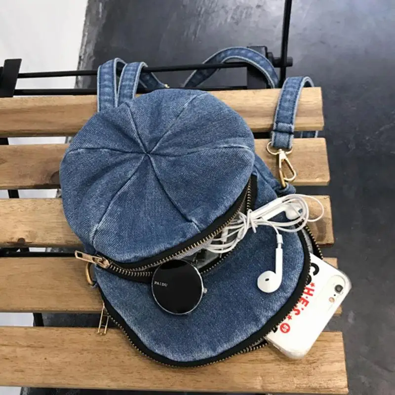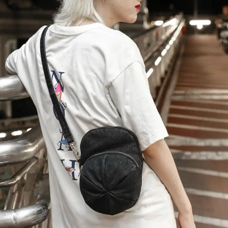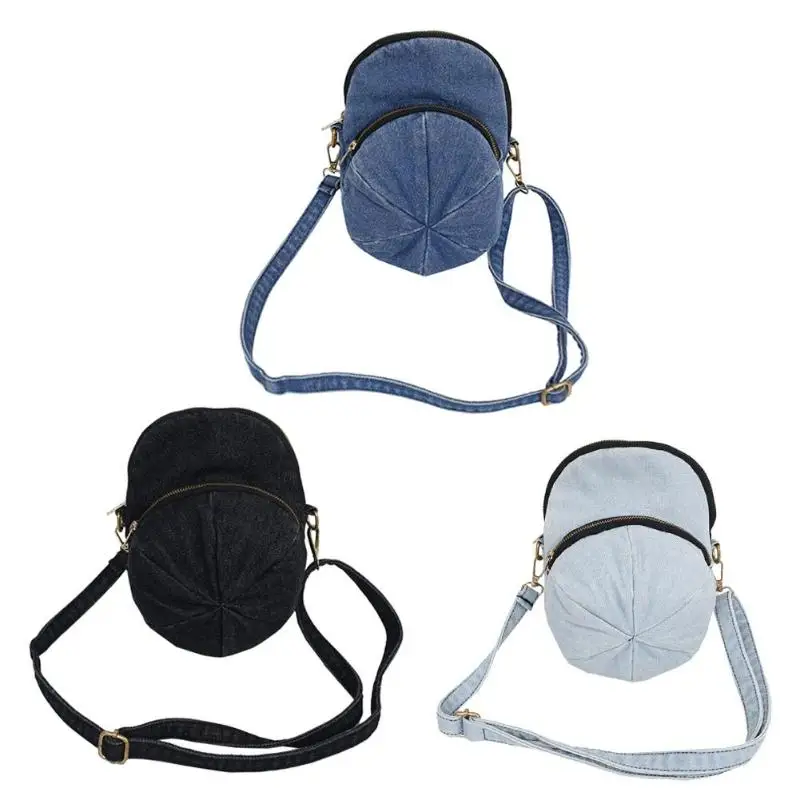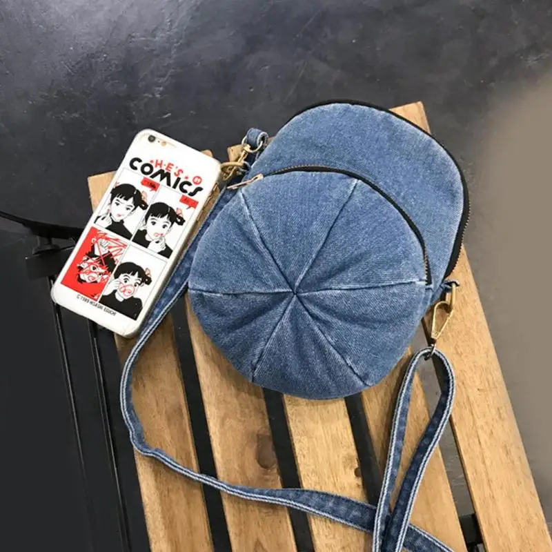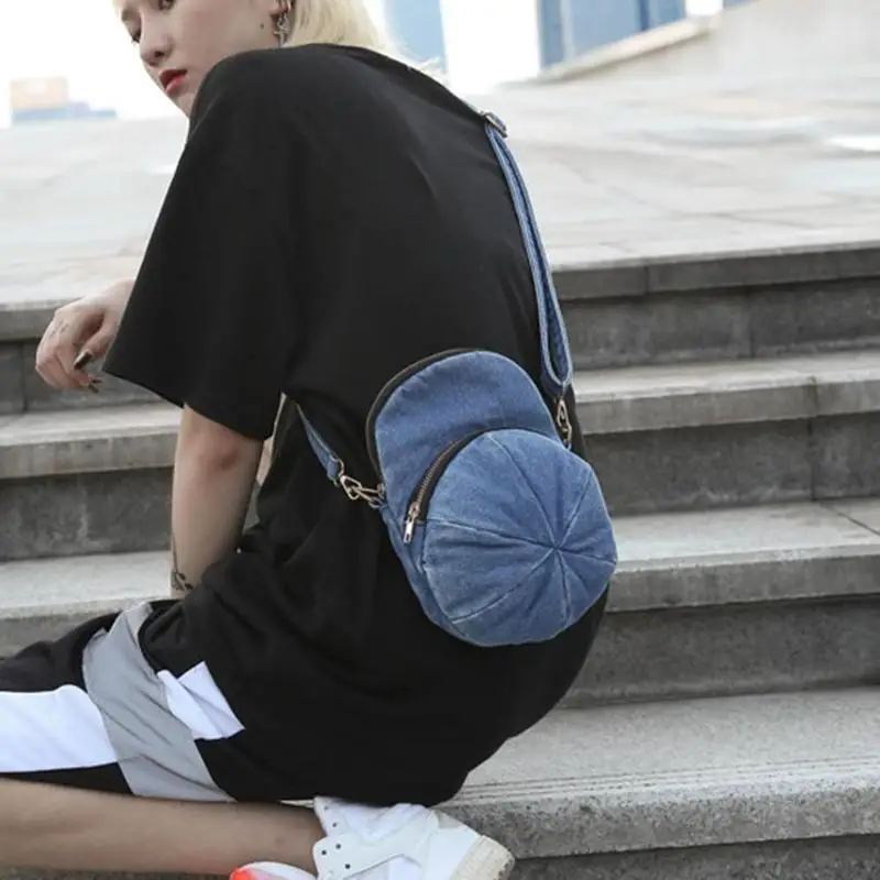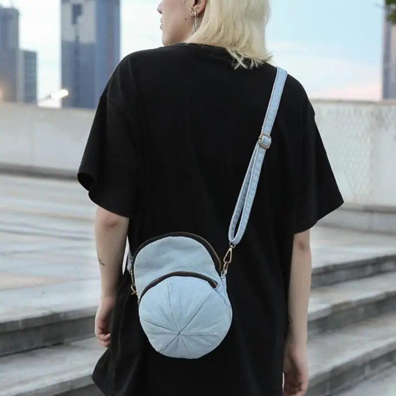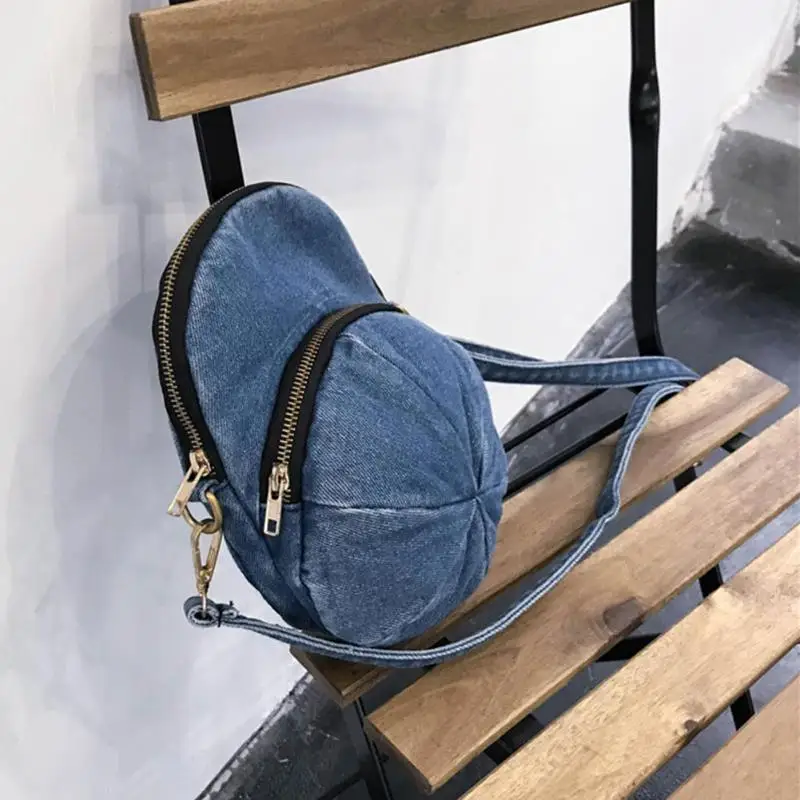 Creative Personality Cap Shape Denim Crossbody Bags Women Zipper Casual Messenger Shoulder Bags