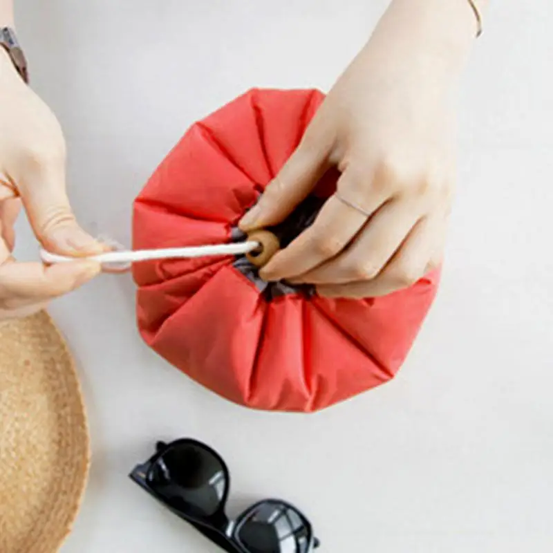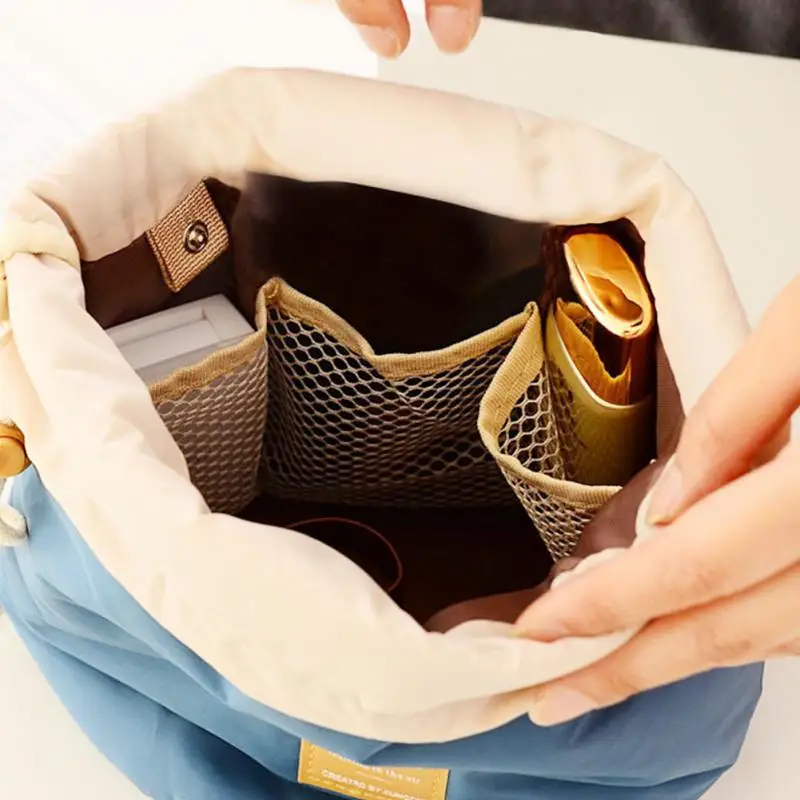 2018 NEW Portable Women Makeup Drawstring Pouch Bucket Barrel Shaped Female Cosmetic Bags