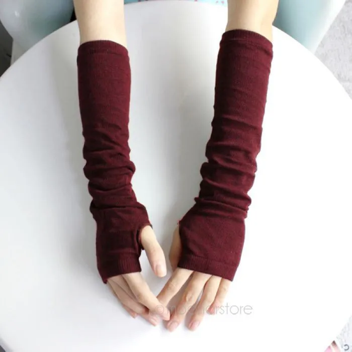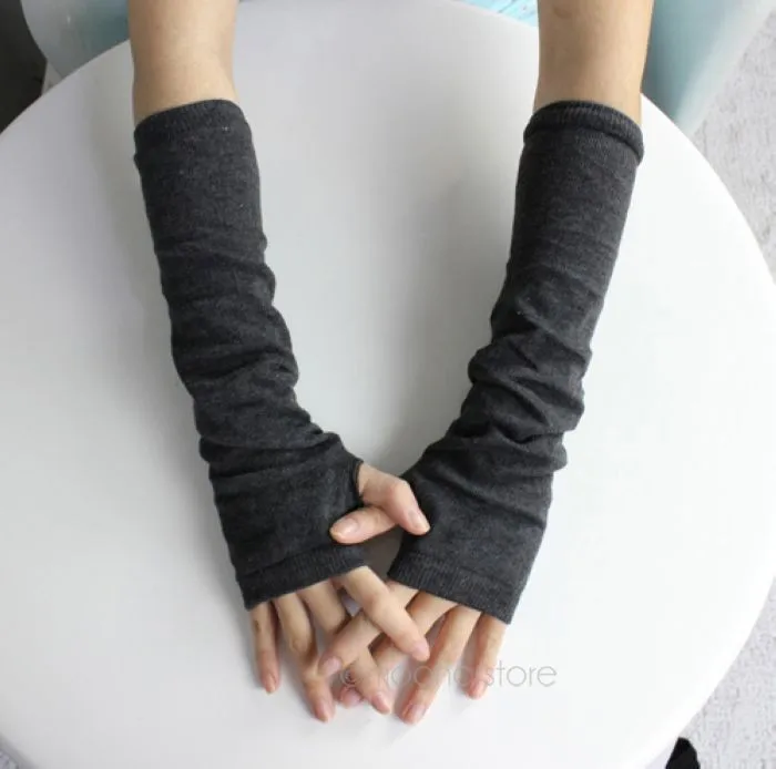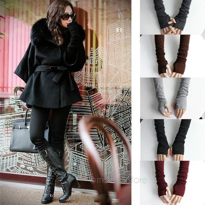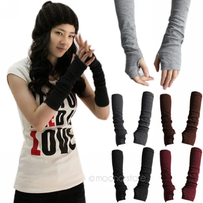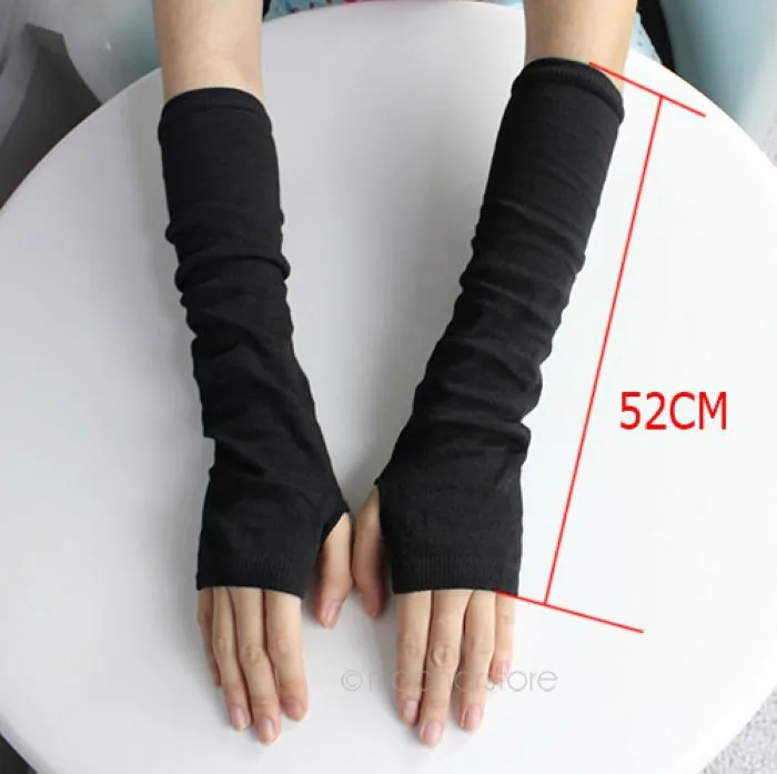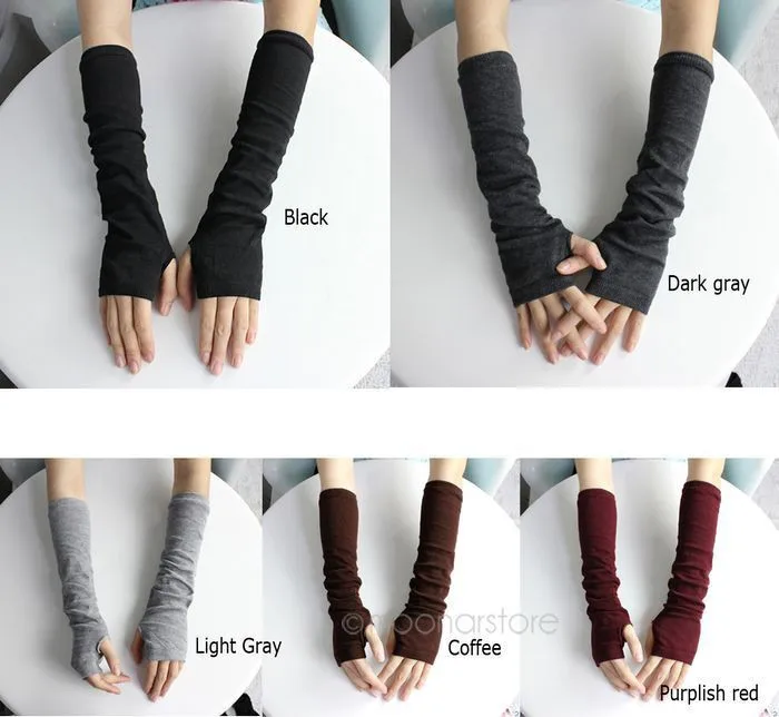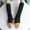 2018 New Pure Color Hand Long Mitten Gloves Women Knitted Wrist Arm Fingerless Winter Gloves Unisex Soft Keep Warm PJ110