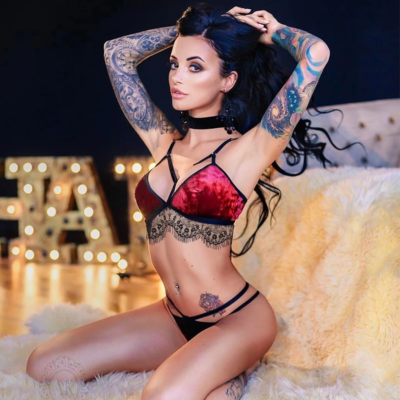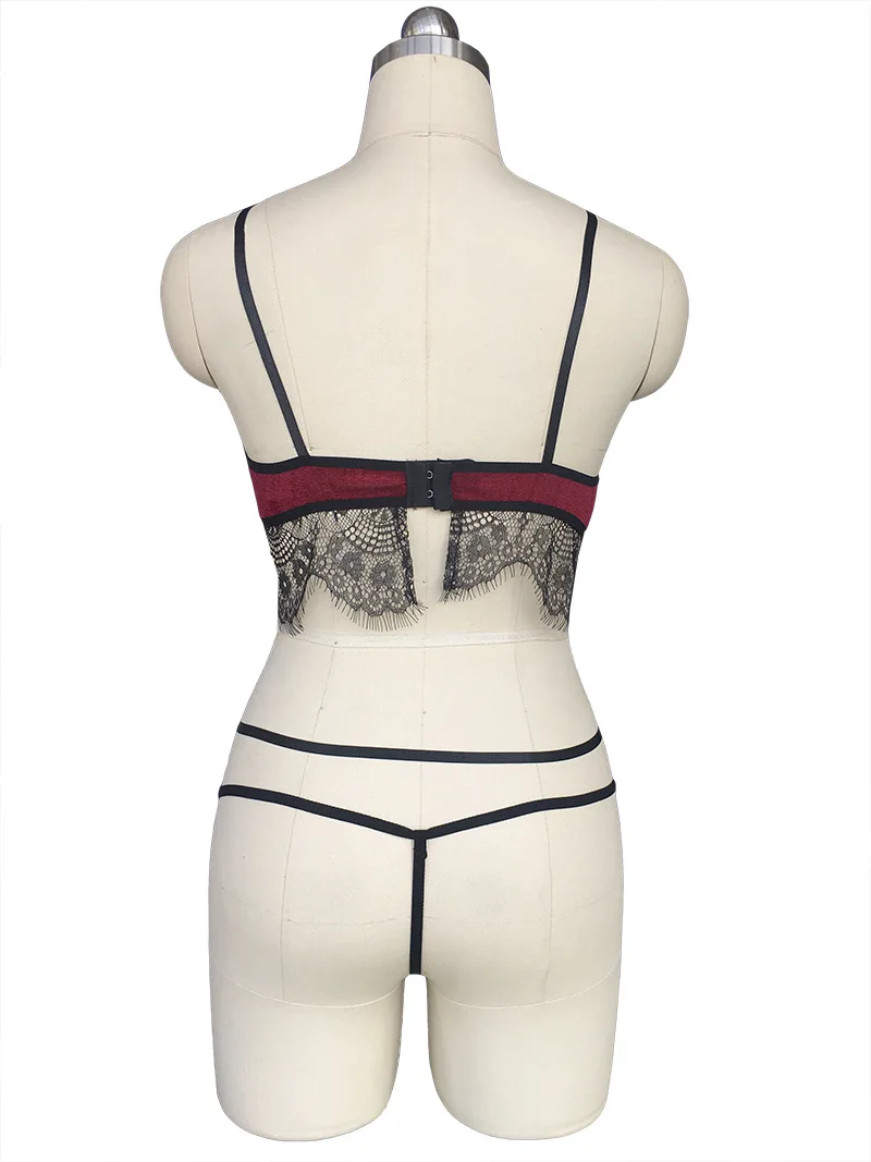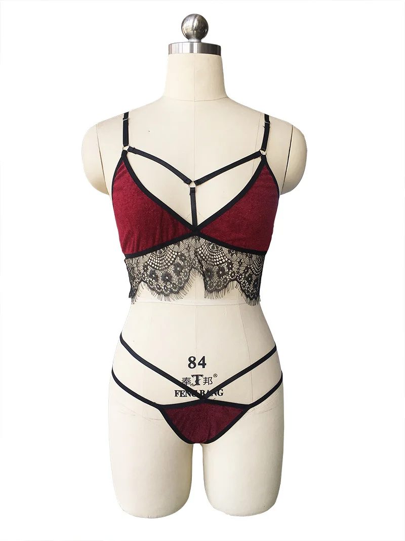 2018 New Sexy Velvet Eyelash lace Bra & Brief Sets Women’s Lingerie Bandage Strappy Bralette Big Size Summer Bra Panty Set