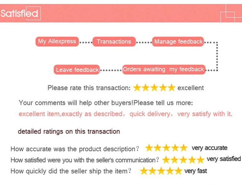 Your satisfaction and positive feedback is very significant to us. If you are satisfied with our items and service, we wish you could leave us positive feedback with 5star rating. If you have any problem with our items and service, please feel free to contact us first via the message. We will do our best to solve the problem and give you a satisfactory solution. Negative feedback gets nothing, while communication creates Win-win deals. If you have any good suggestion also can advice us, we need your big support. Your kind understanding and sincere cooperation will be very much appreciated.