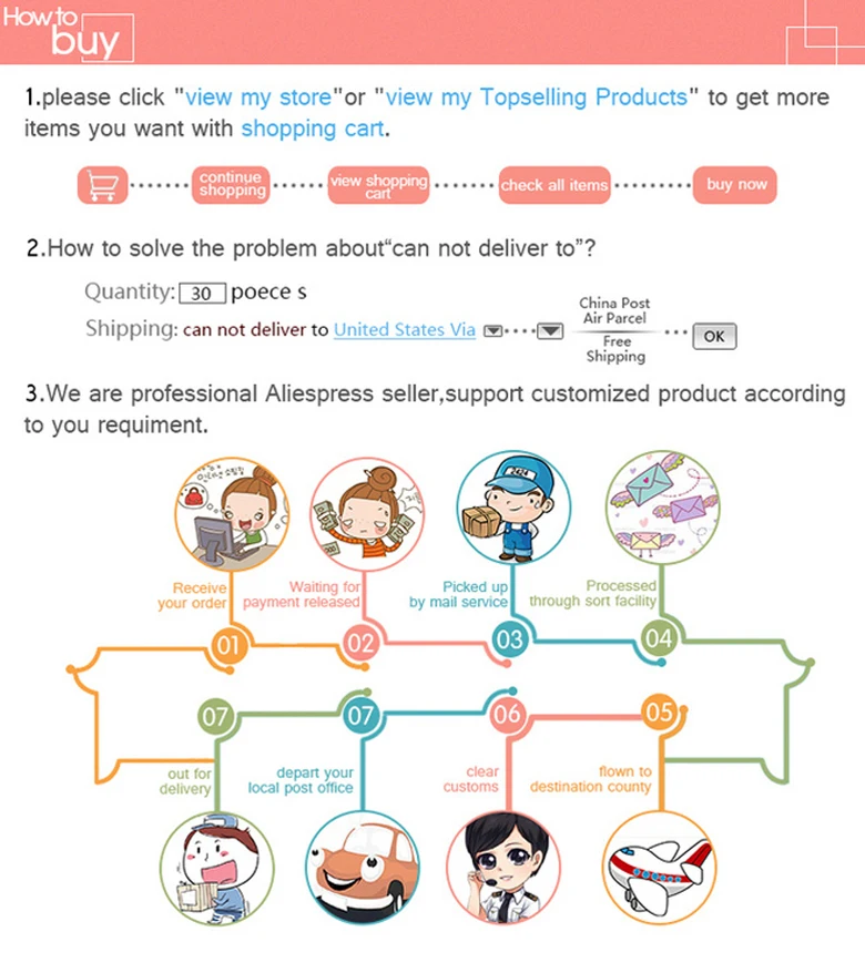 1. Items are shipped by AliExpress Standard Shipping , AliExpress Premium Shipping, ePacket,reach most of countries within 15 to 35 bussiness days. Delivery time depends on destination and other factors,it may take up to 60 business days.