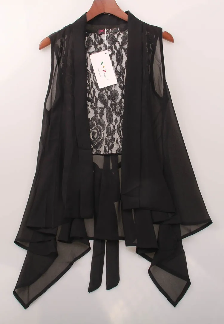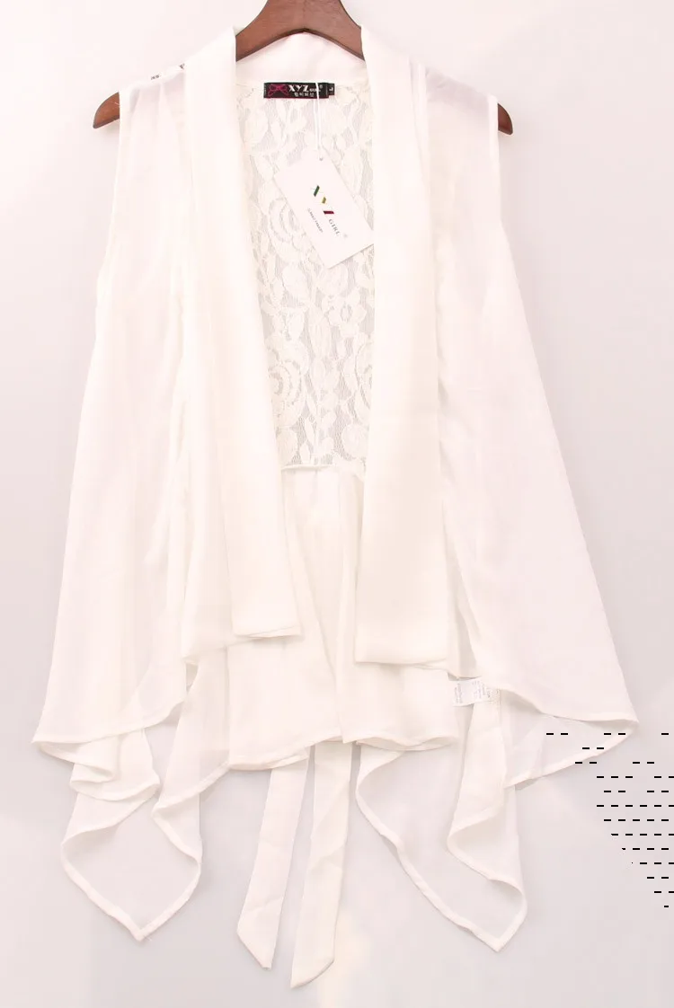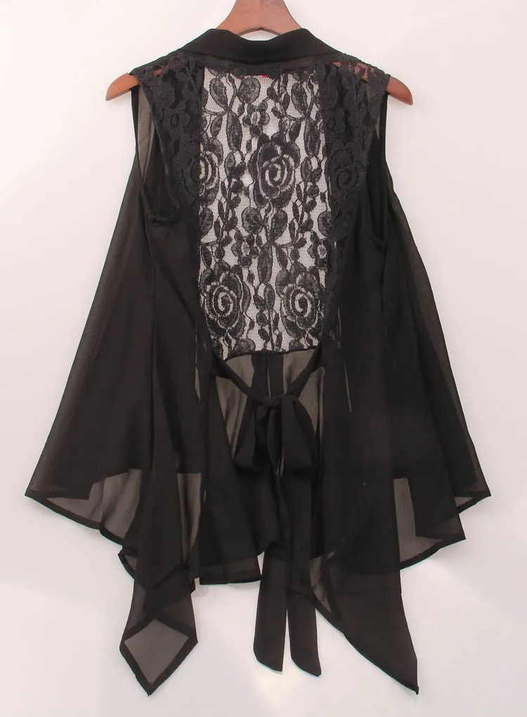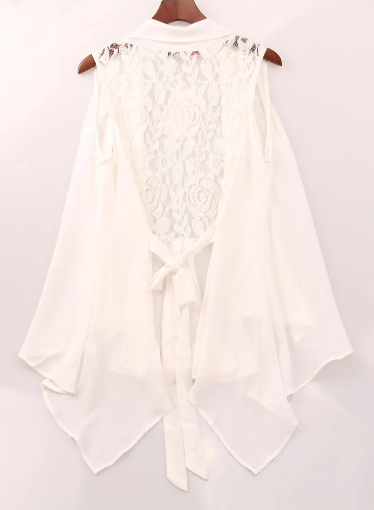 2018 New Shirt Blouse Women Chiffon Lace Shirts Blouses OL Lady V-Neck Sleeveless Sexy Backless Club Cardigan Waistcoat Top Tee