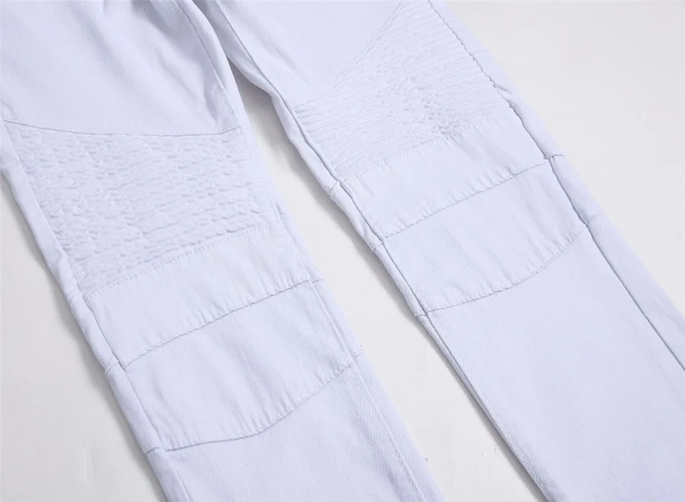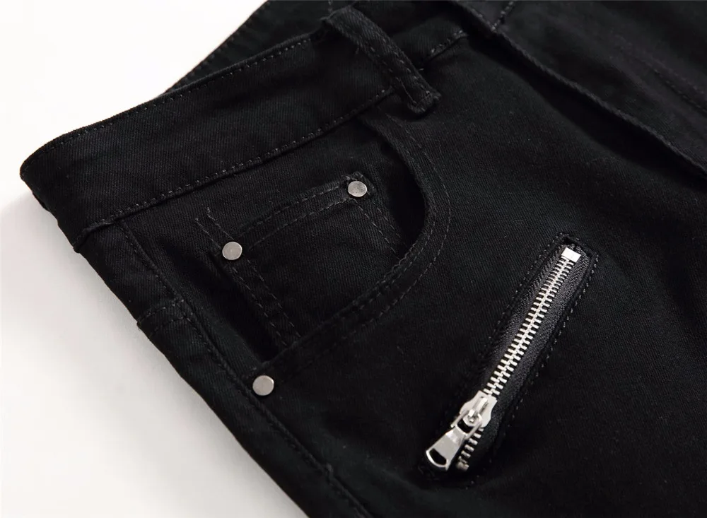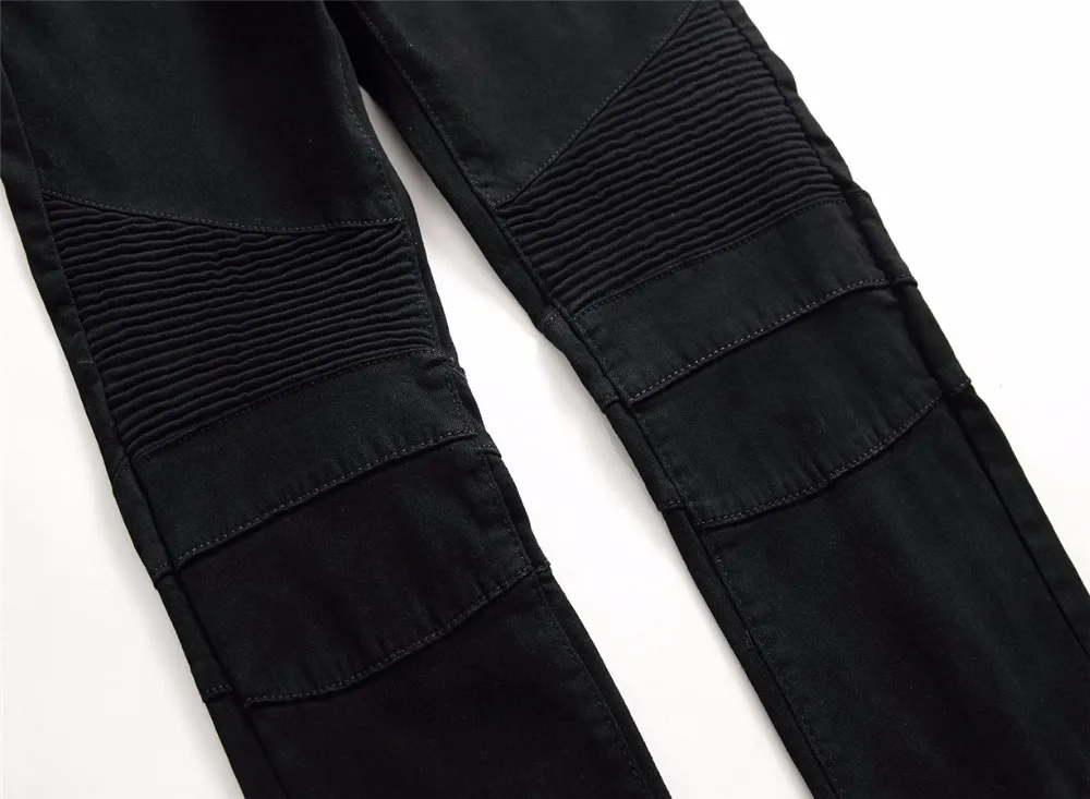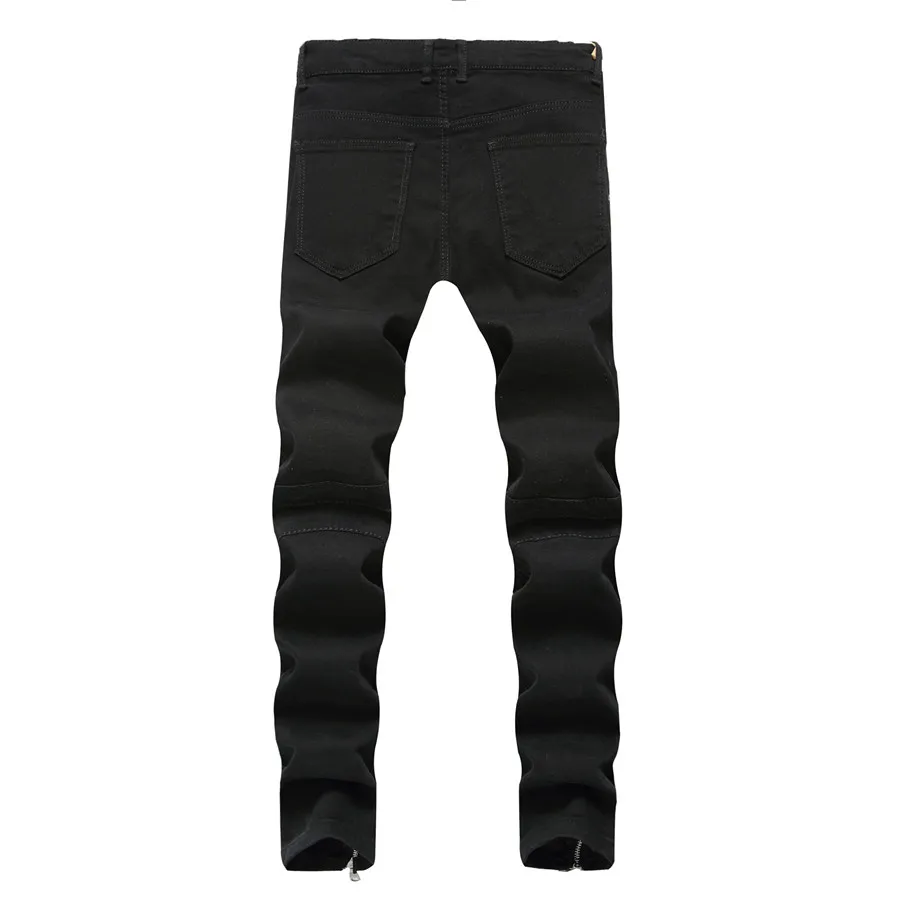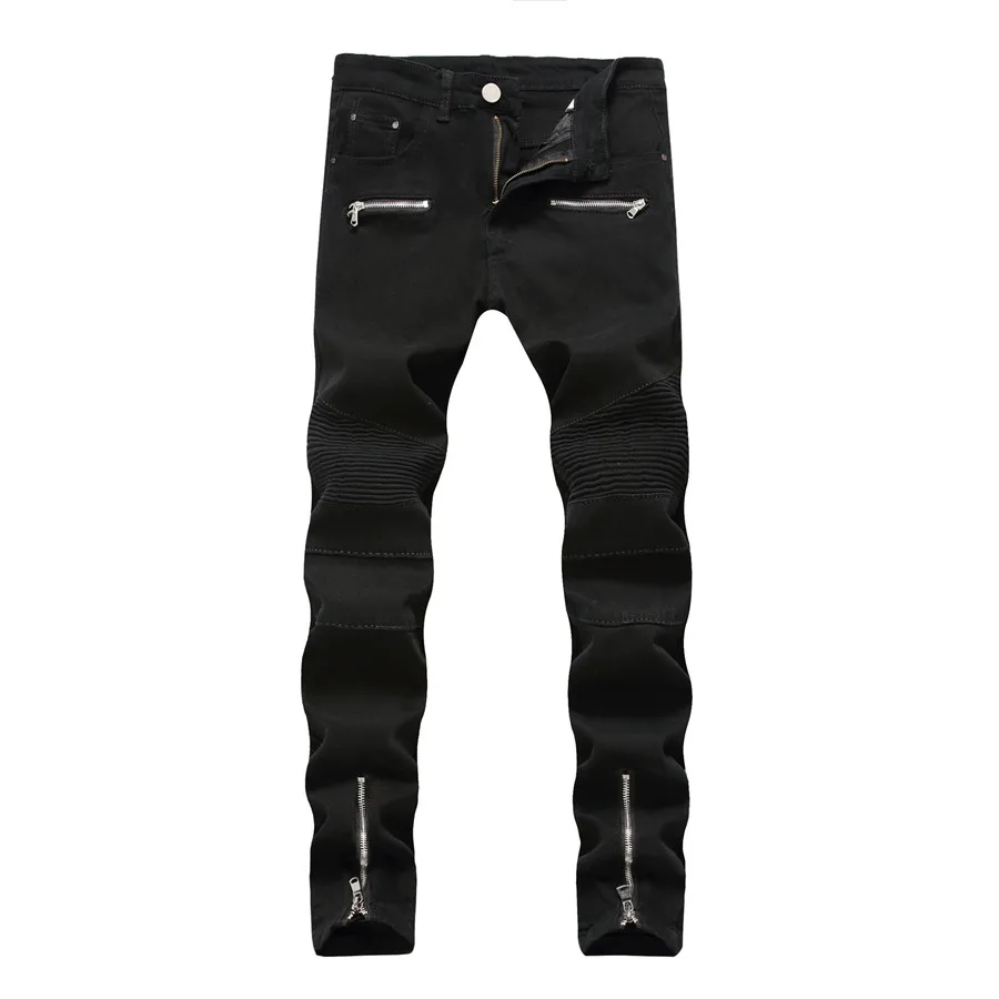 2018 New Skinny Biker Jeans Men Motorcycle Stretch Cargo Denim Jeans with Zippers Pleated Slim Jean Men’s Plus Size 40 42 Pants