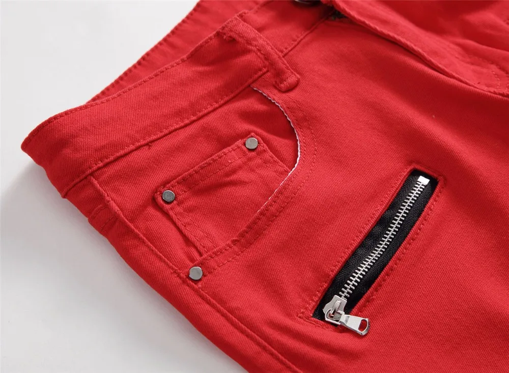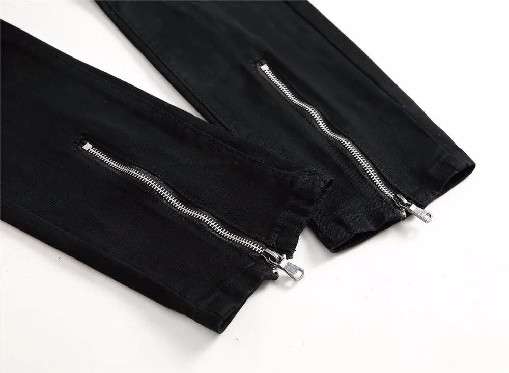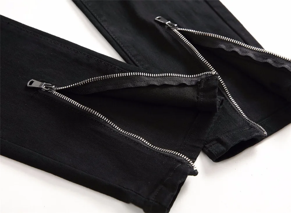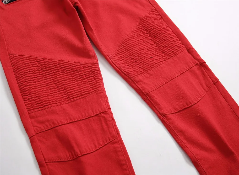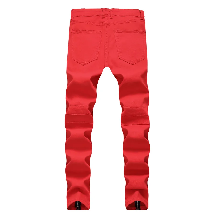 2018 New Skinny Biker Jeans Men Motorcycle Stretch Cargo Denim Jeans with Zippers Pleated Slim Jean Men’s Plus Size 40 42 Pants