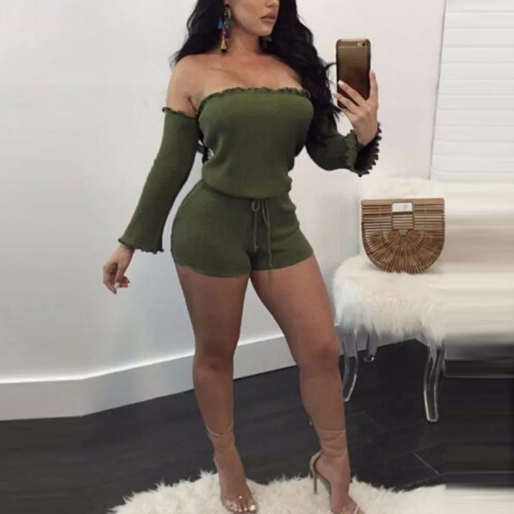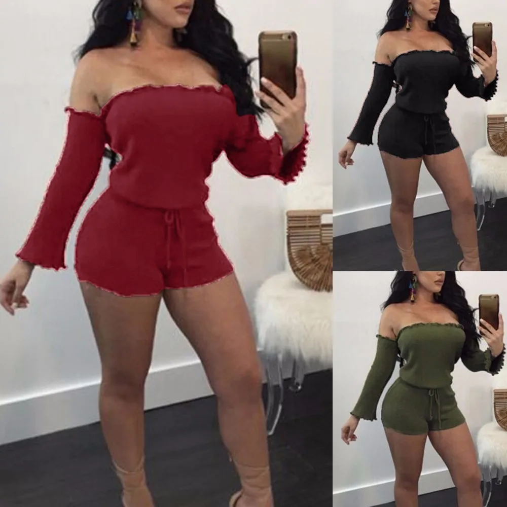 2018 New Slash Neck jumpsuit body feminino New Women Ladies Clubwear Shorts Playsuit Bodycon Party Jumpsuit Romper Trousers