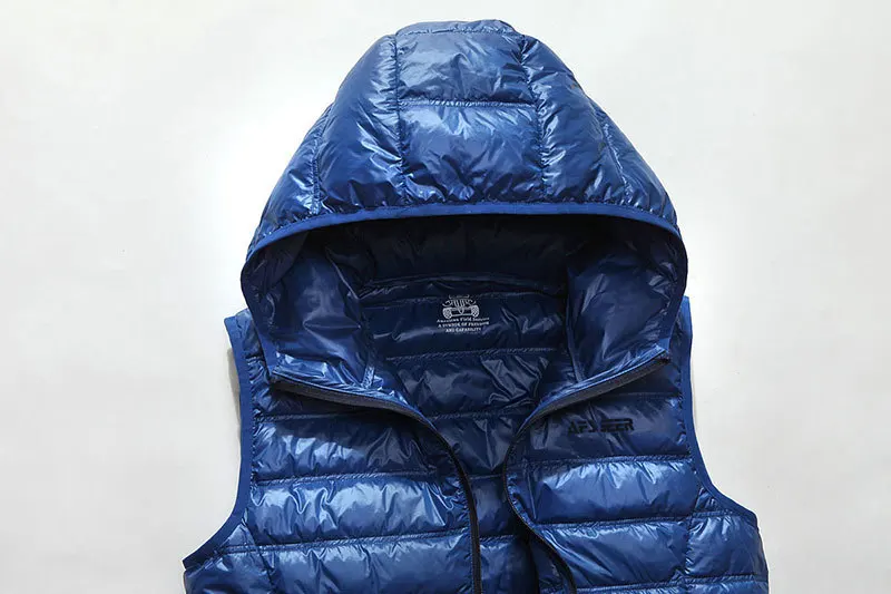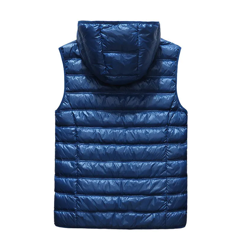 2018 New Sleeveless 90% White Duck Down Jackets Vest Slim Waistcoats Warm Hooded Collar Casual Cargo Military Tanks Business