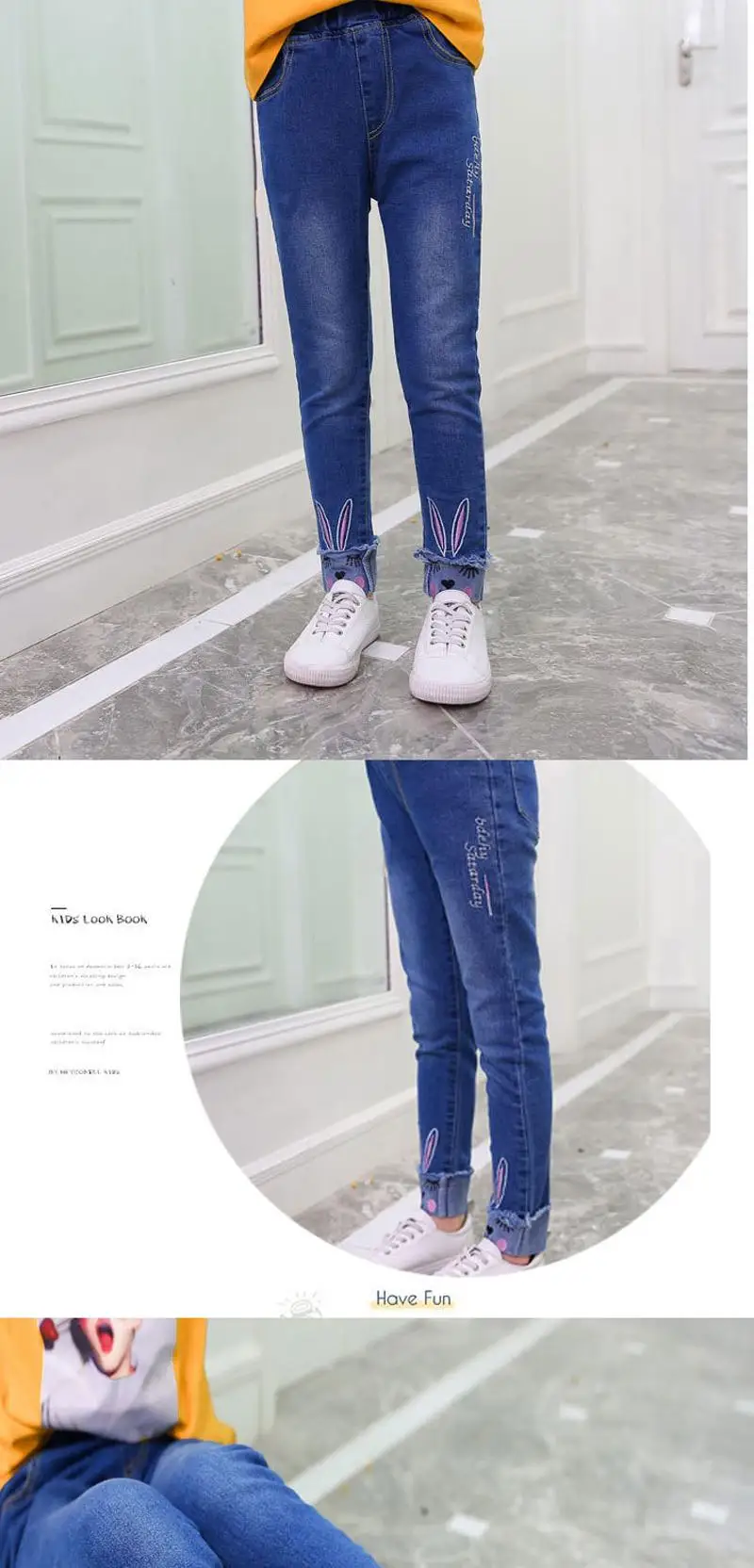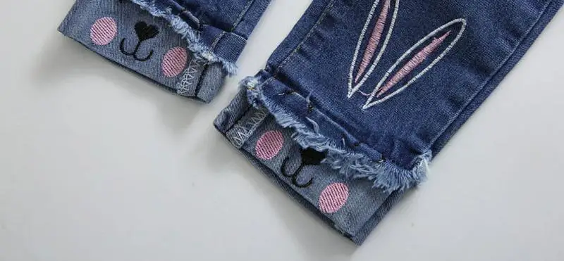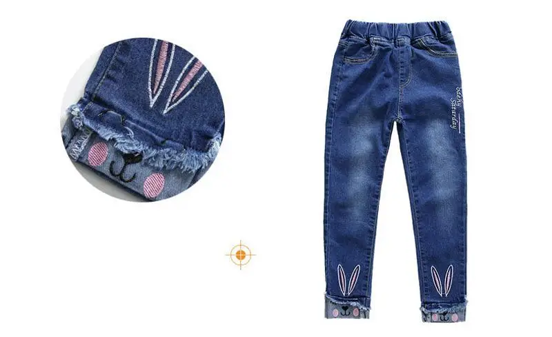 2018 New Slim Girls Jeans Spring Autumn Skinny Children Pants for Girls Cartoon Rabbit Elastic Waist Kids Trousers