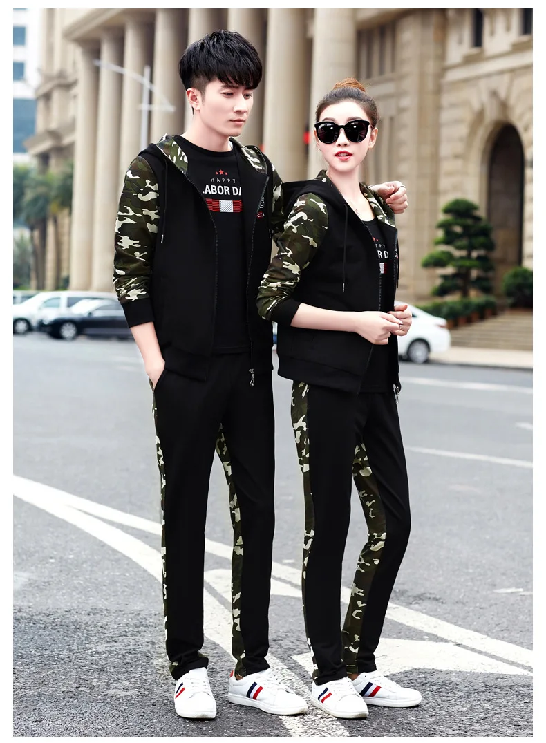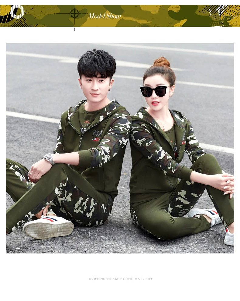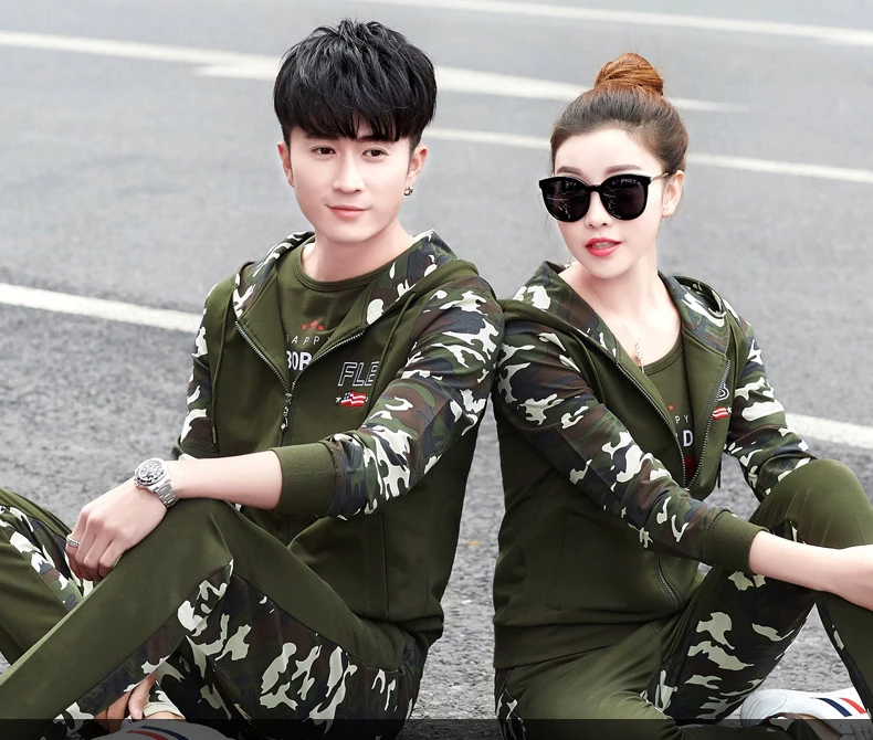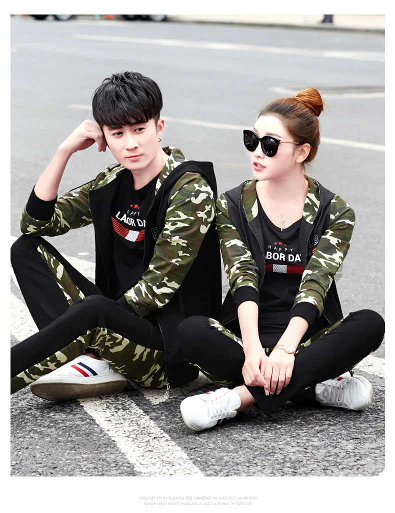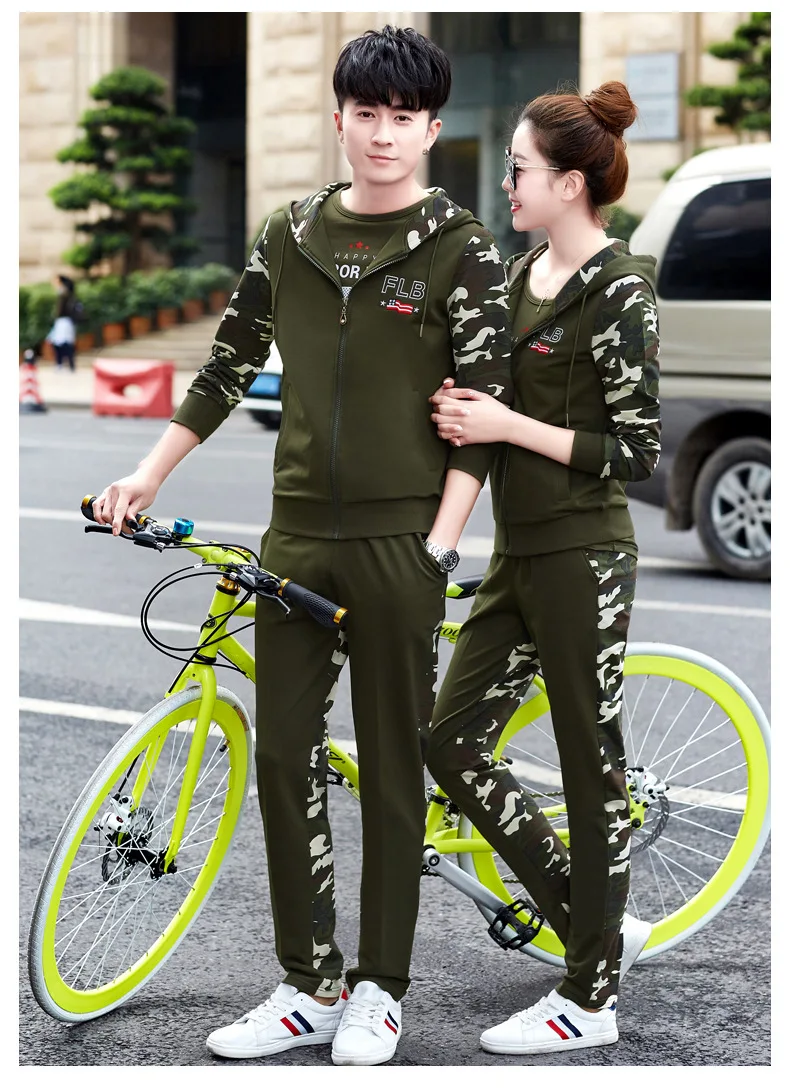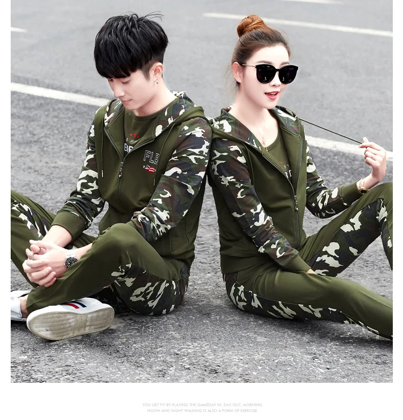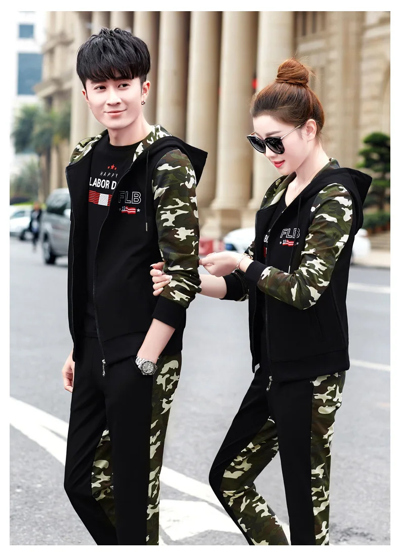 2018 New spring and autumn woman and man 3pcs sport suit outdoor lovers camouflage clothes running clothing tracksuit ZL160