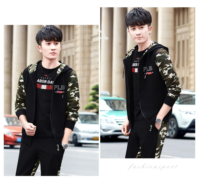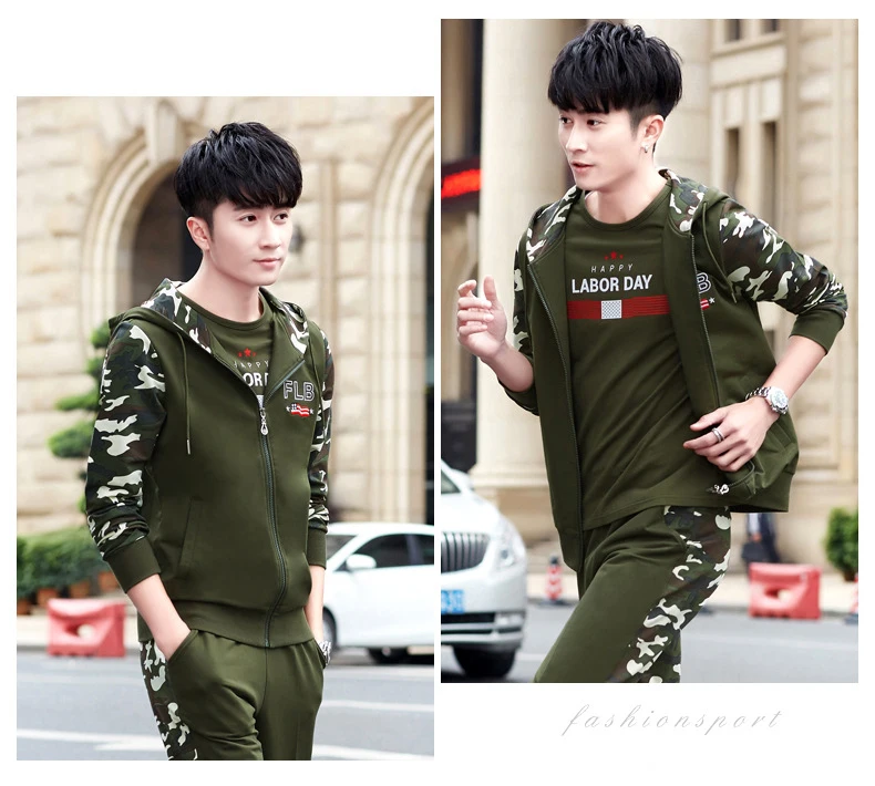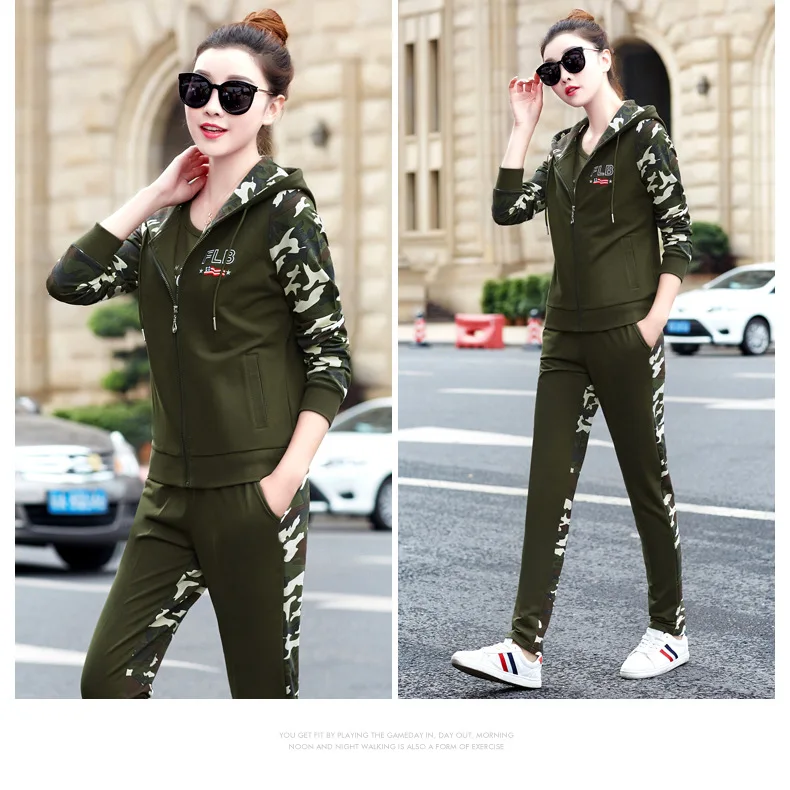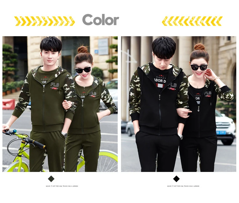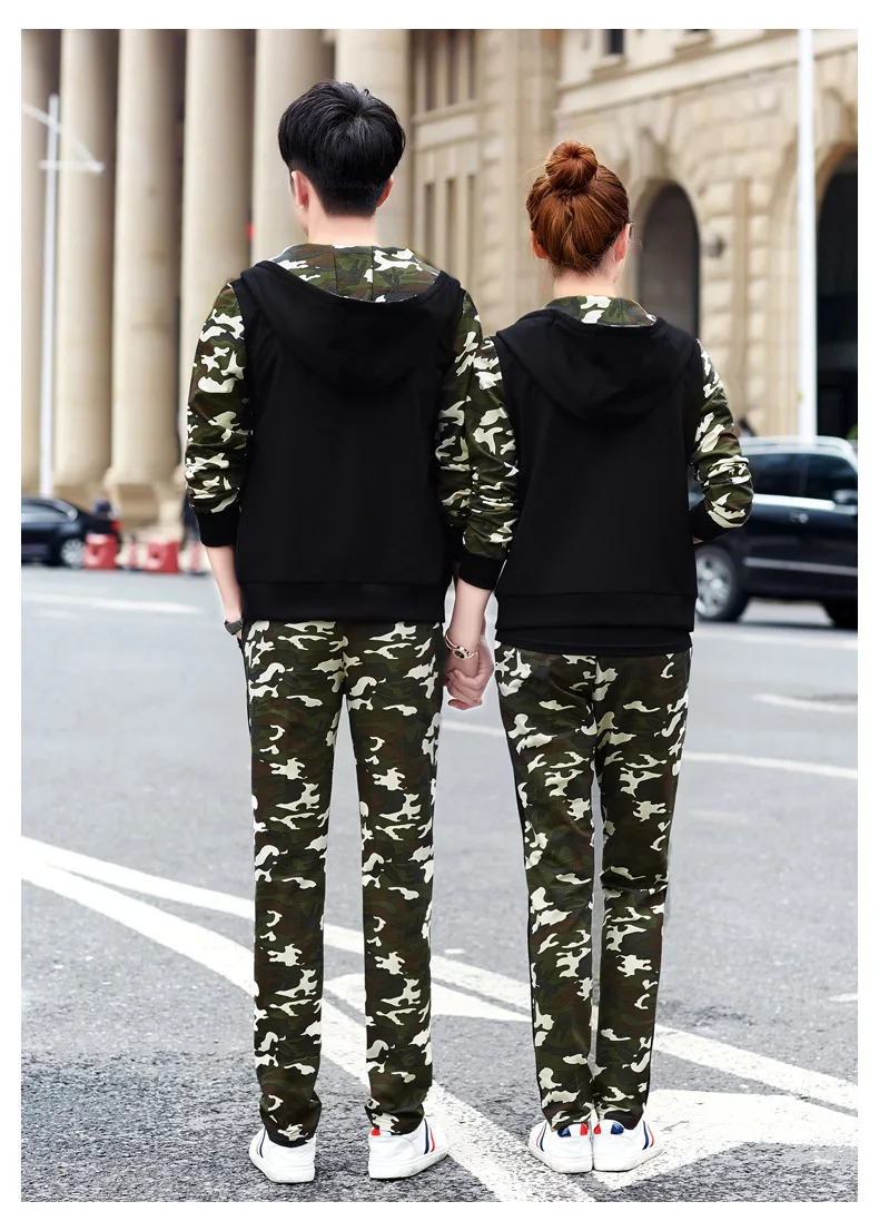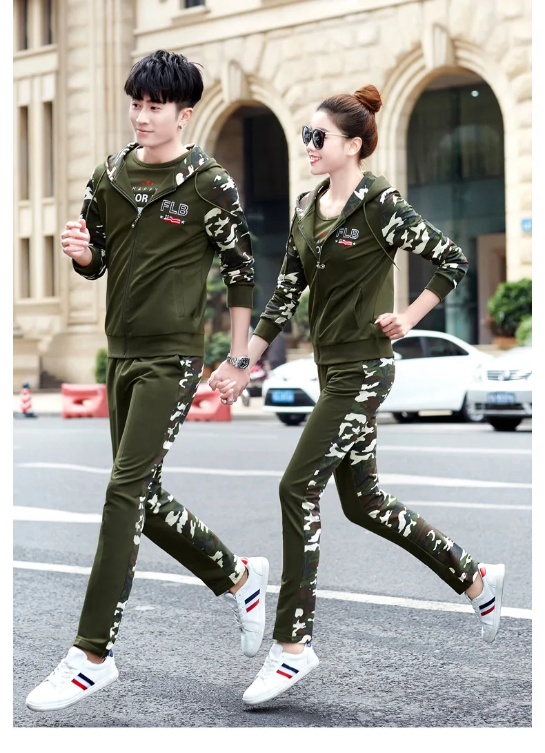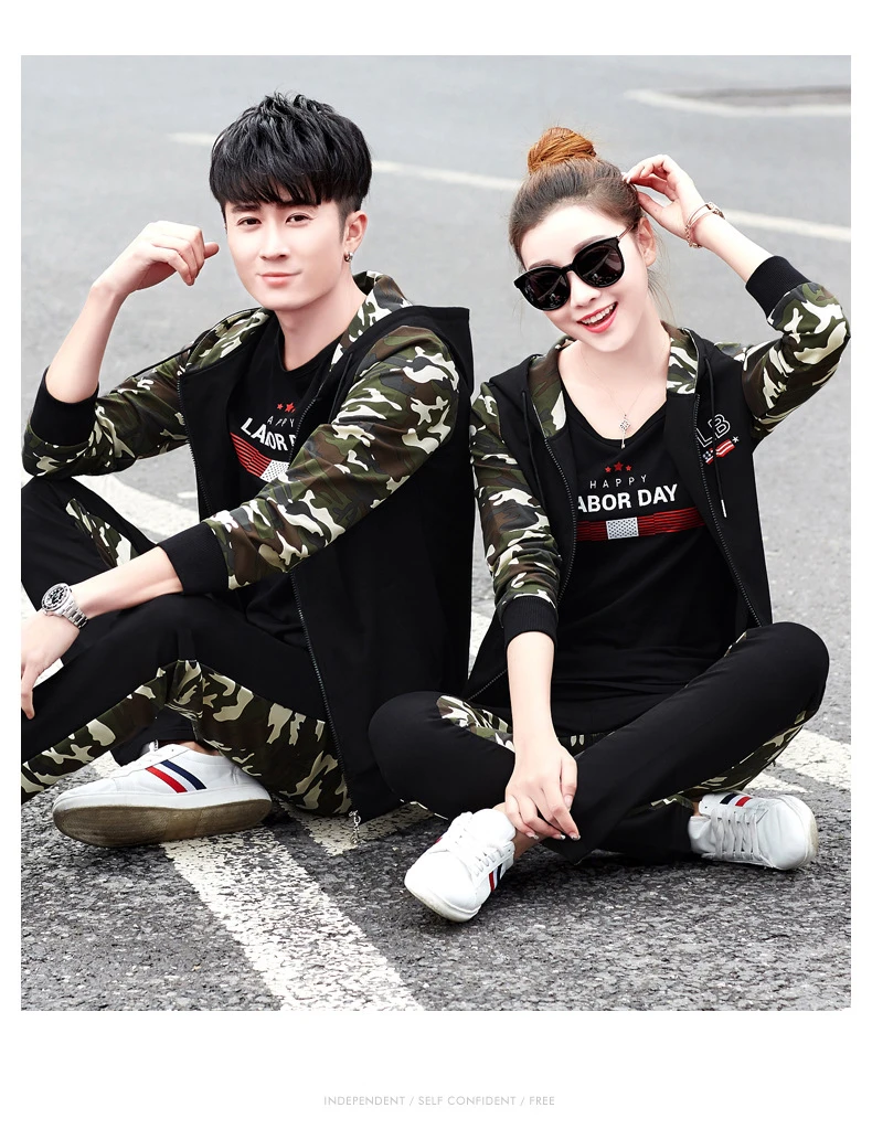 2018 New spring and autumn woman and man 3pcs sport suit outdoor lovers camouflage clothes running clothing tracksuit ZL160