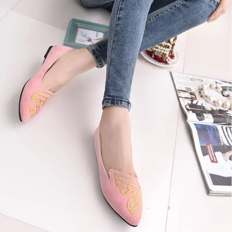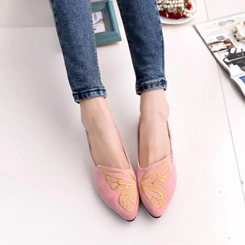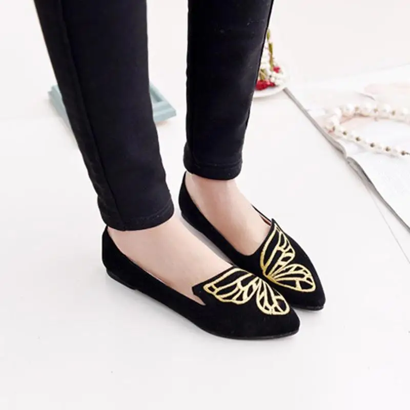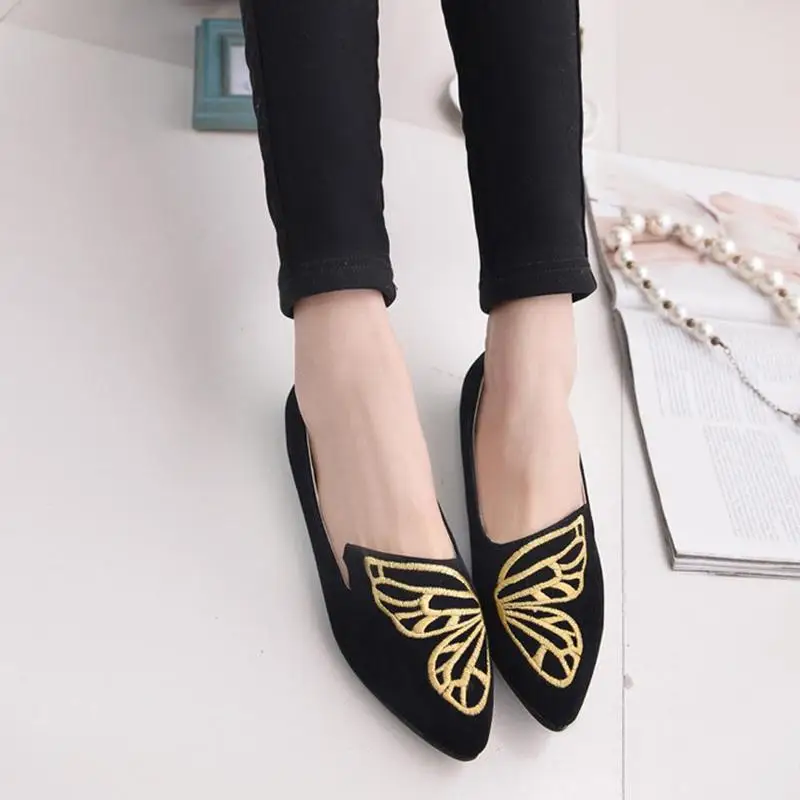 2018 New Spring Woman Shoes Flats Butterfly Embroidery Shoe Fashion Pointed Female Shoes Women Comfortable Walking Shoes LDM1852