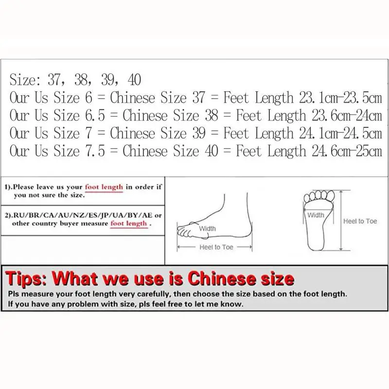 Our Us Size 7 = Chinese Size 39 = Feet Length 24.1cm-24.5cm