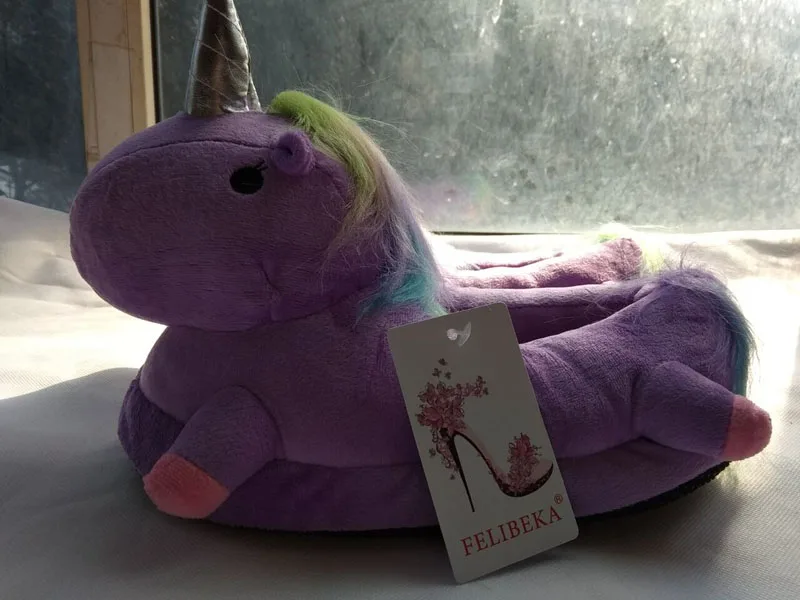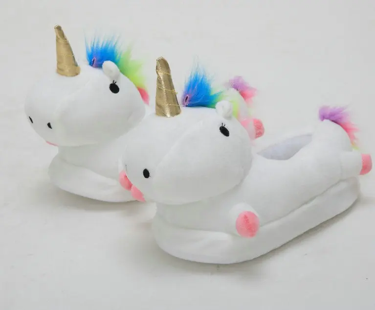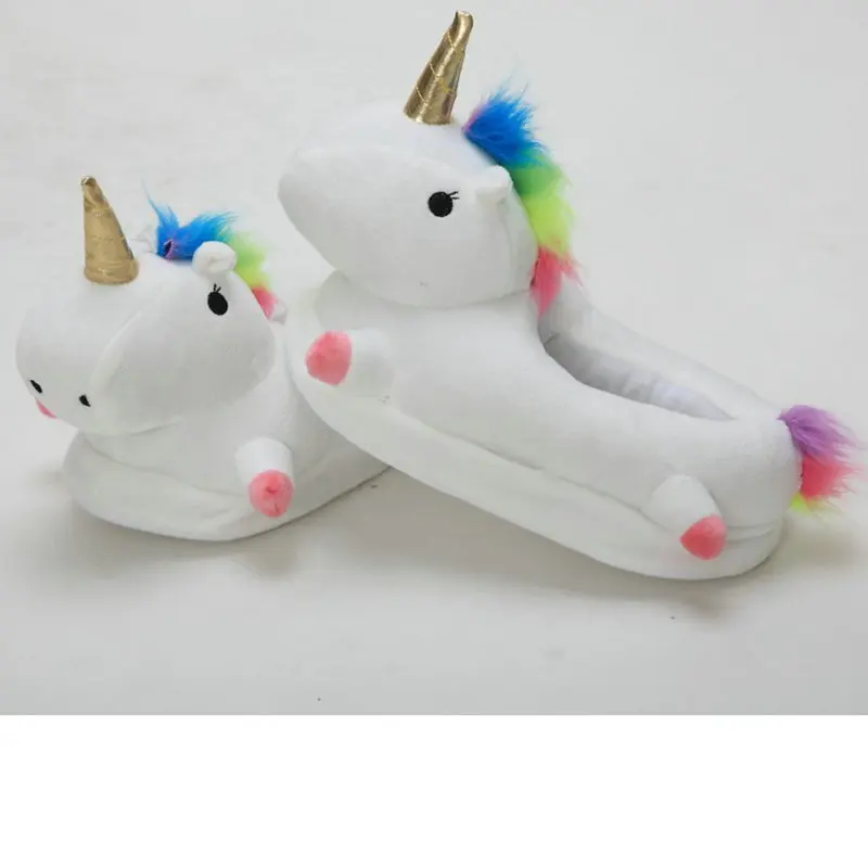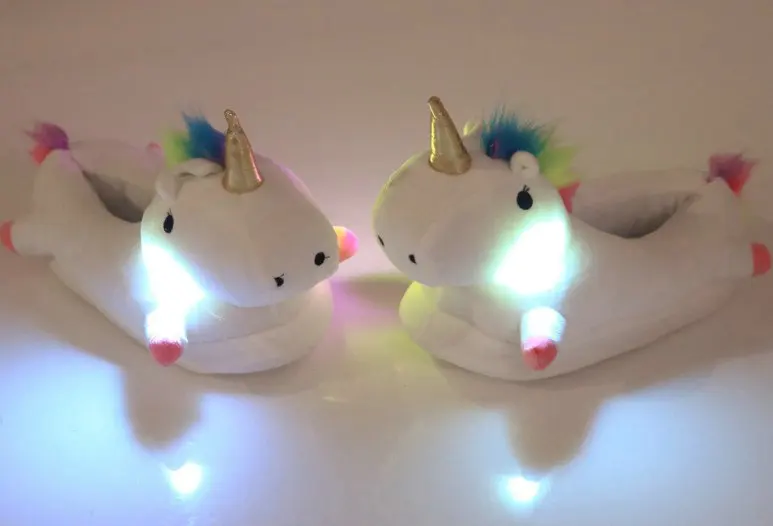2018 new style Winter lovely Home Slippers Cartoon Plush Chausson Licorne White Shoes Women unicorn glowing slippers