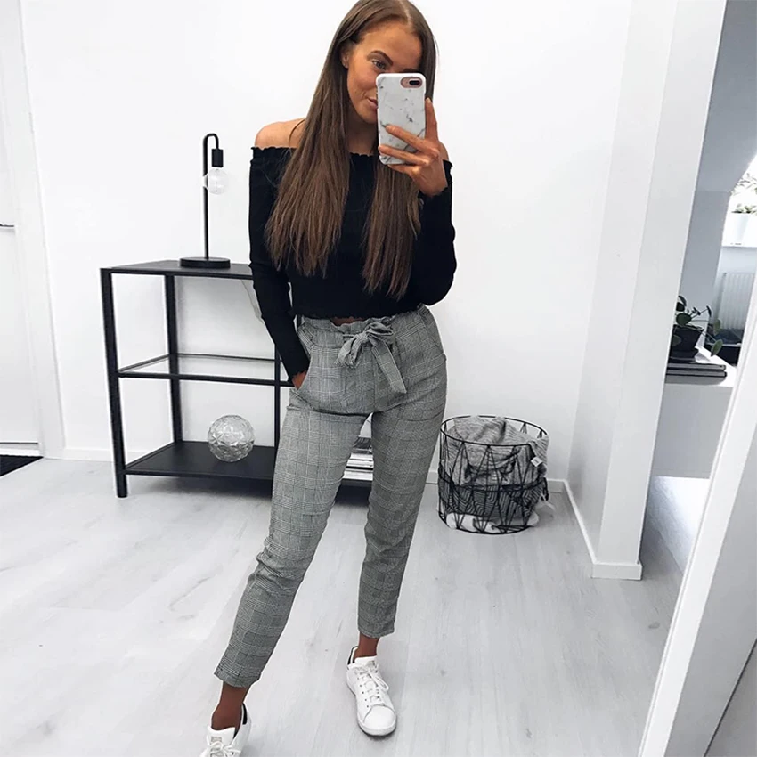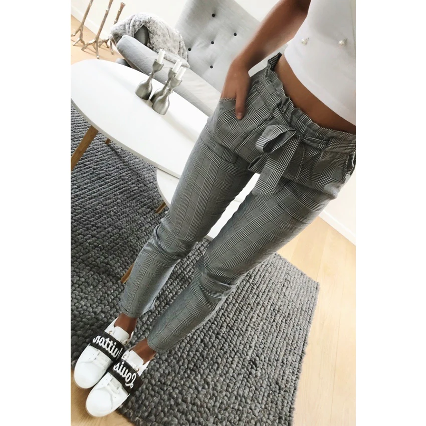 2018 New style women fashion plaid pants casual slim trousers summer mid waist bottoms