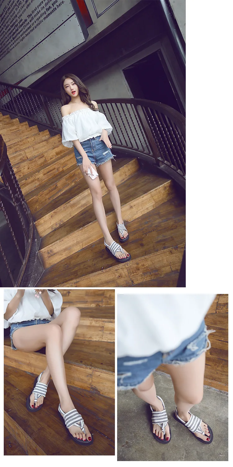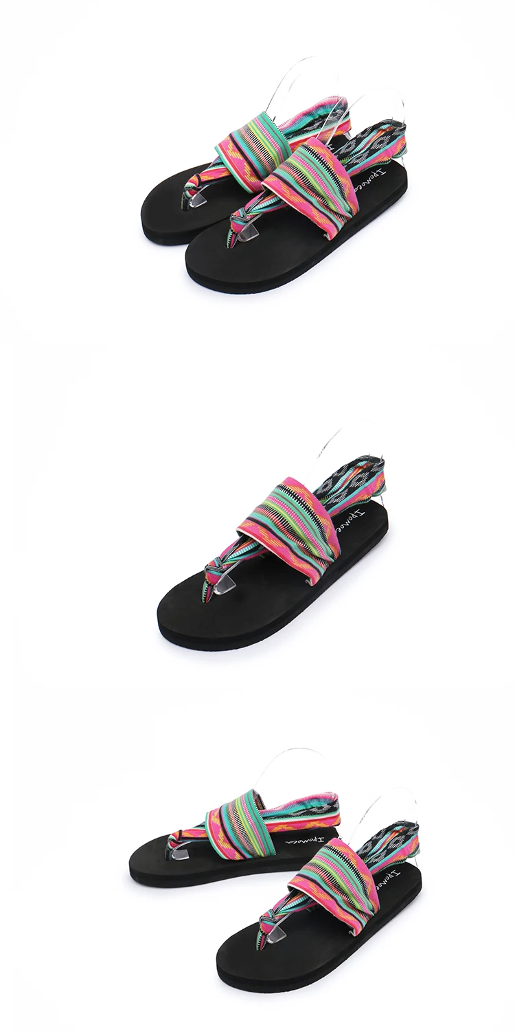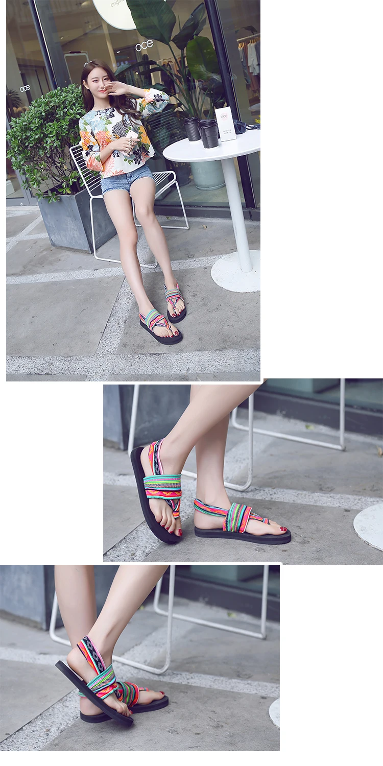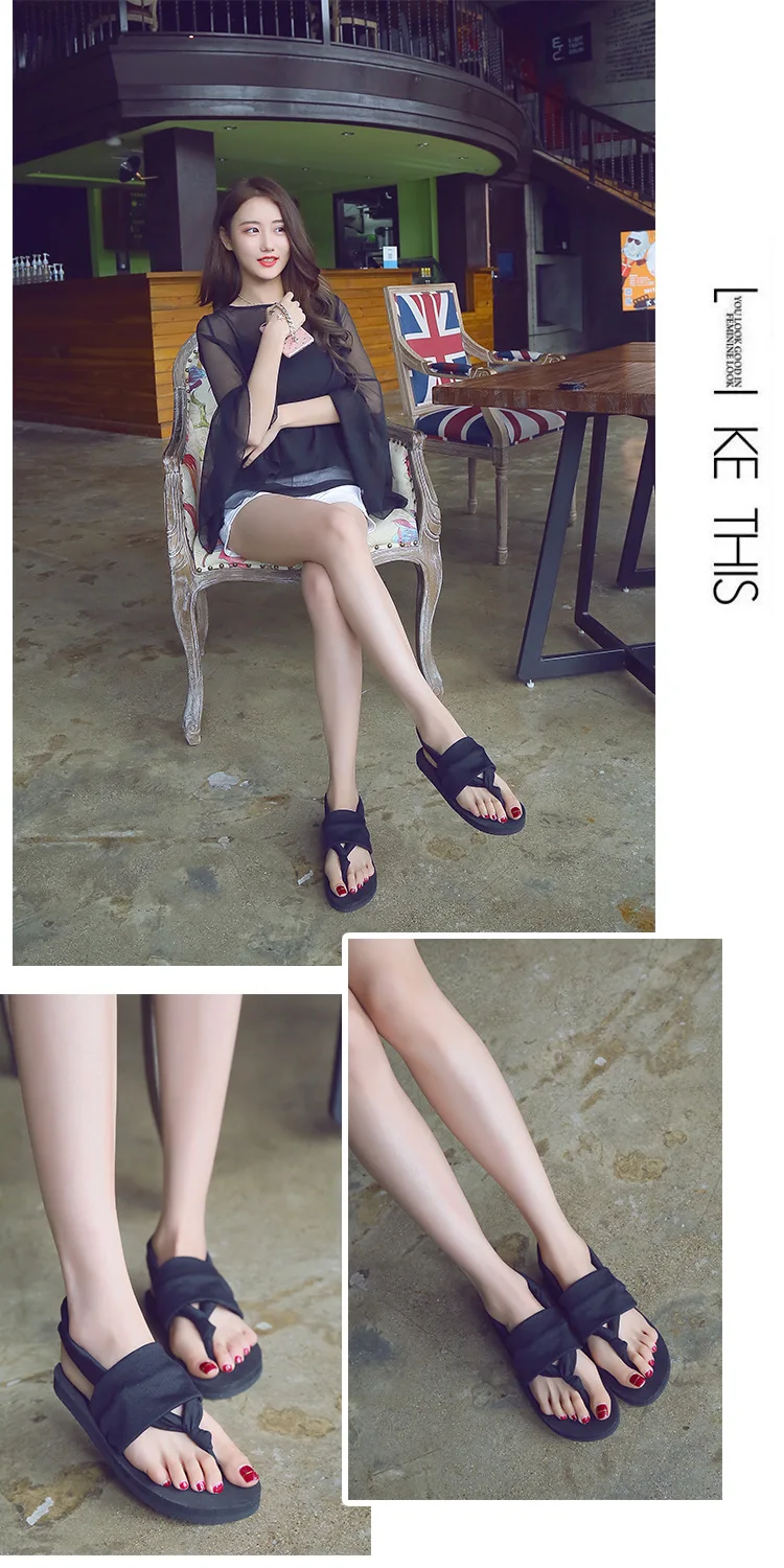 2018 New Summer Black Beach Shoes Woman Bohemia Sandals Non-Slip Flat Women Flip Flops Sandals Elastic band Sandals