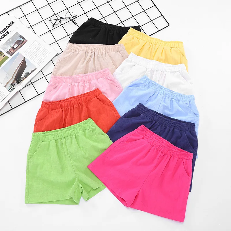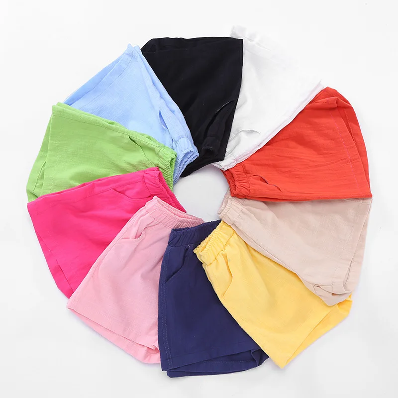 2018 New Summer Boys Girls Shorts Slub Cotton Kids Children Bloomers Loose Short Pants Trousers Beach Wear 2-10 Yrs