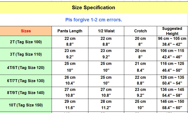 Sizes: 100, 110, 120, 130, 140, 150 Suit for 2-10 Years Kids (Only for reference)