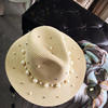 2018 New Summer British pearl beading flat brimmed straw hat Shading sun hat Lady beach hat