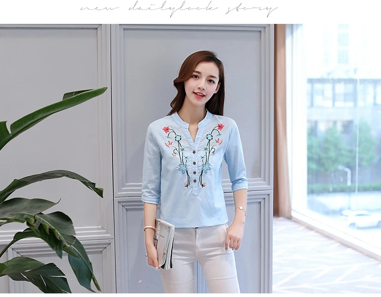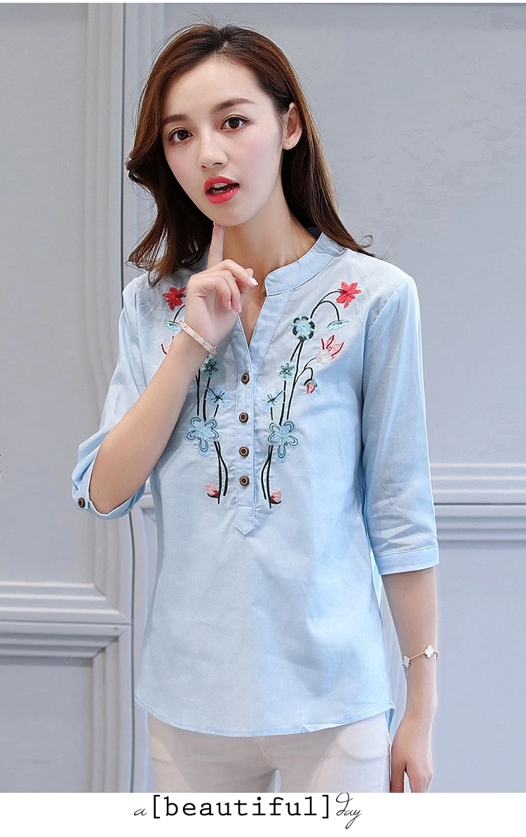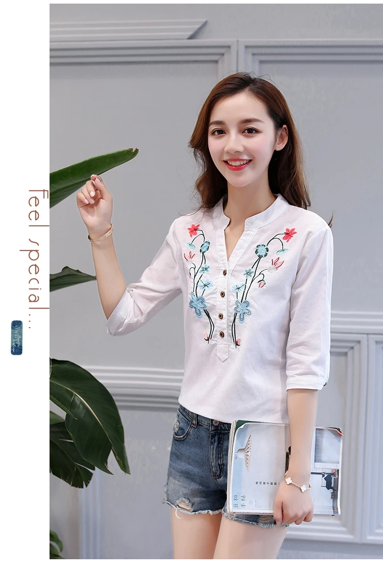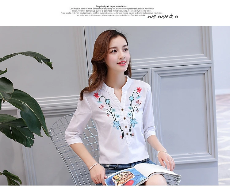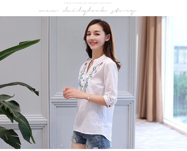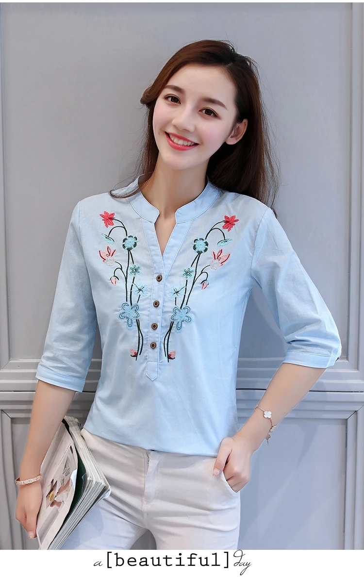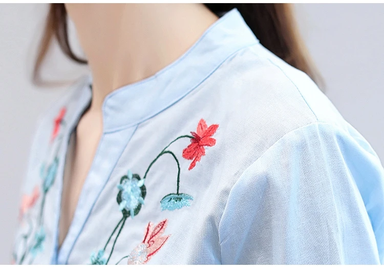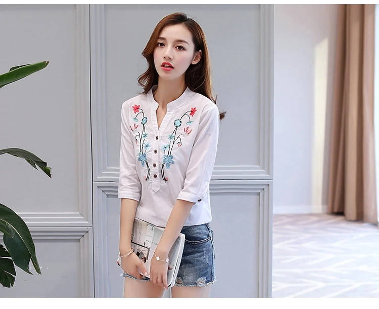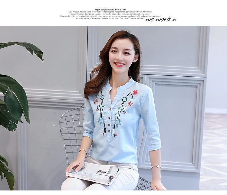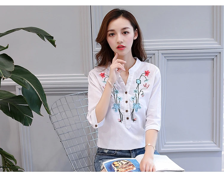 2018 new summer elegant fashion embroidered office lady shirt V-neck half sleeves casual loose women blouse top blusas 812F 30